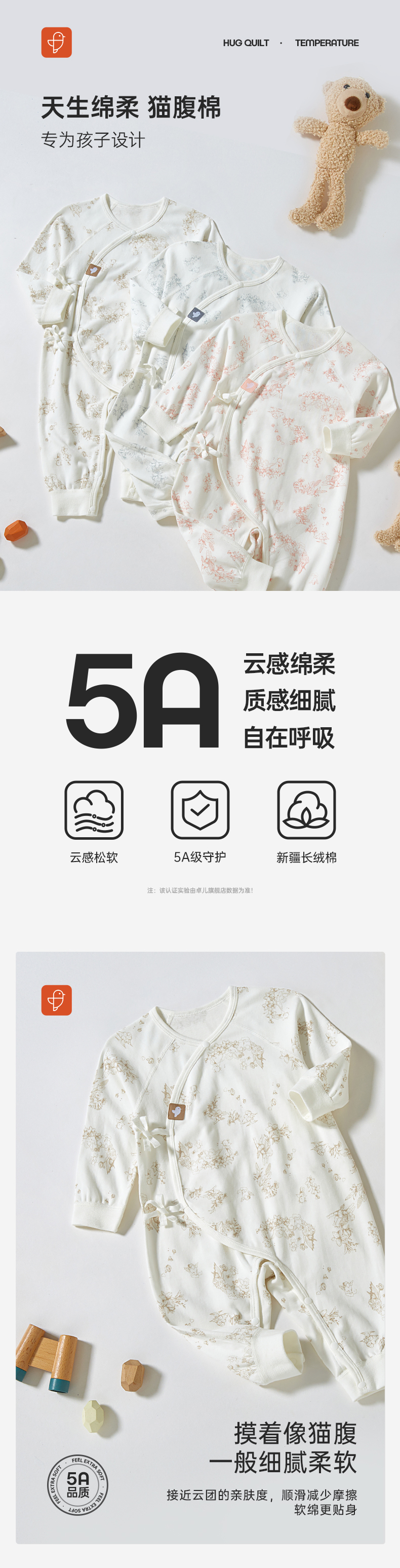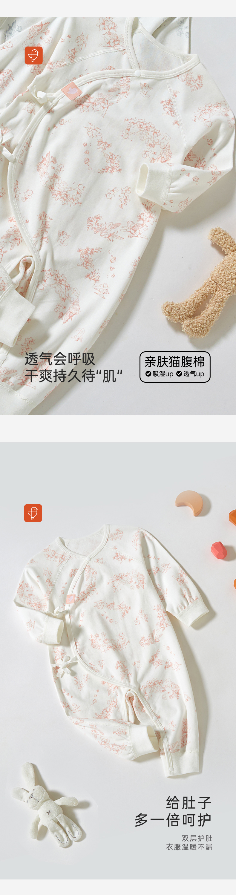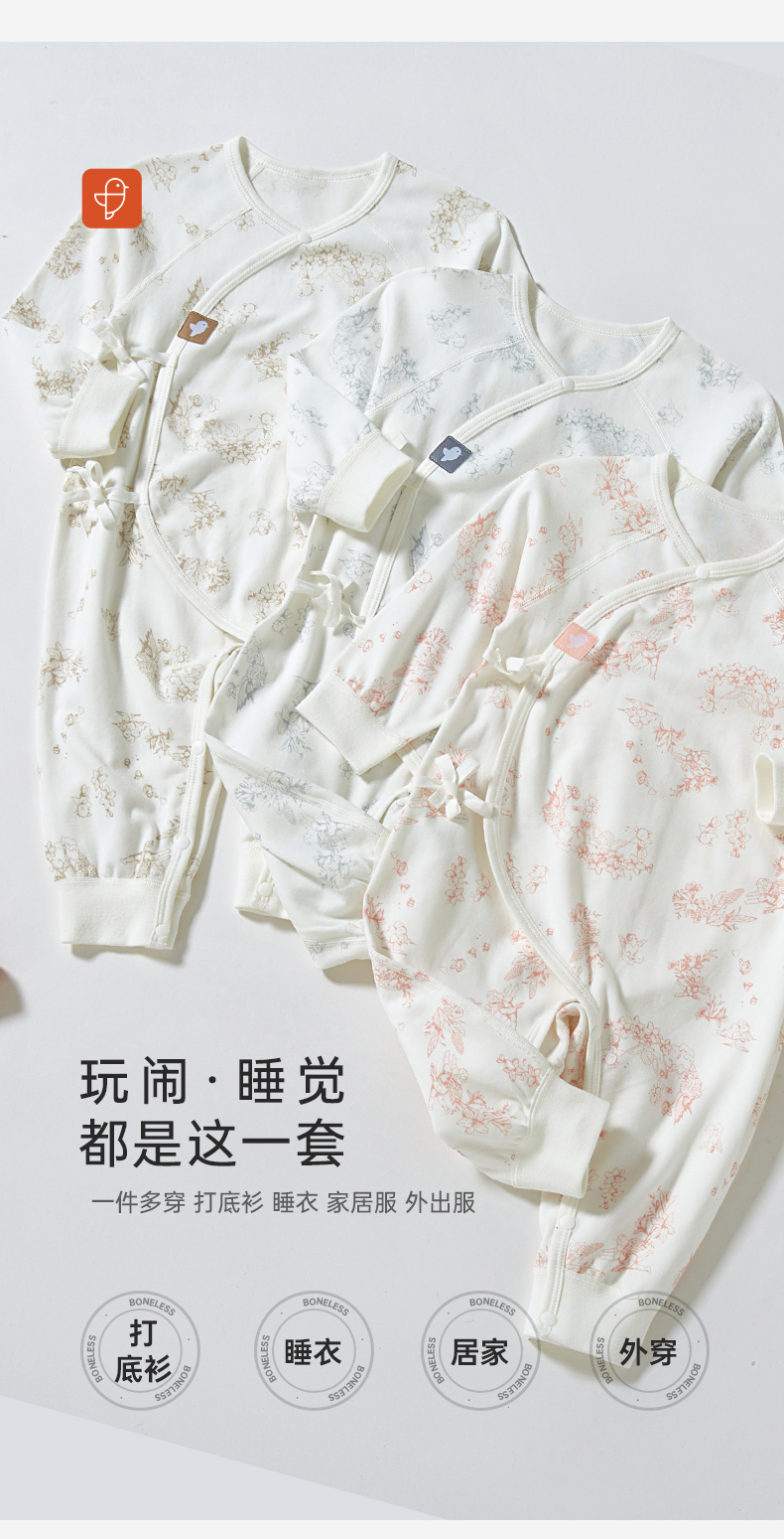 【秋季新款】7A抗菌纯棉新生儿连体衣