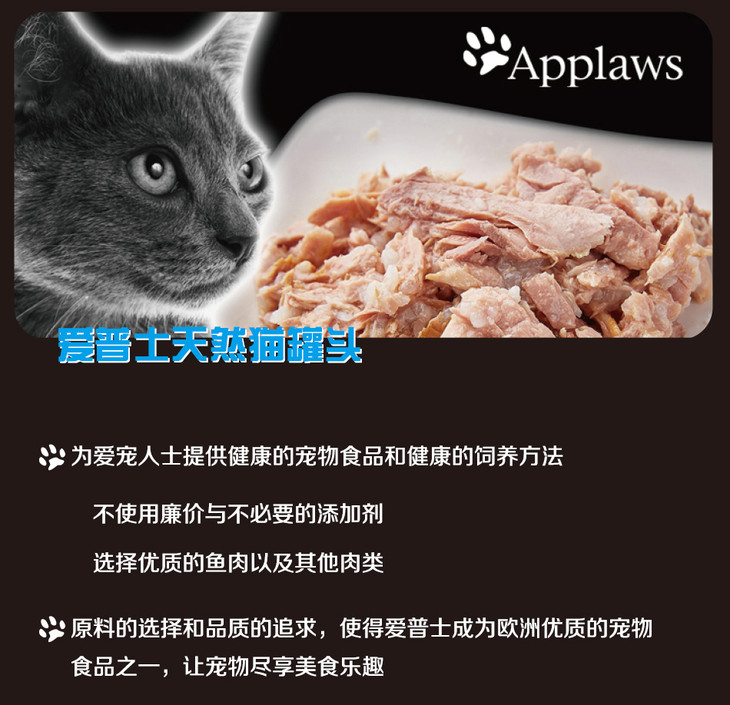 Applaws爱普士 吞拿鱼明虾成猫罐头70g