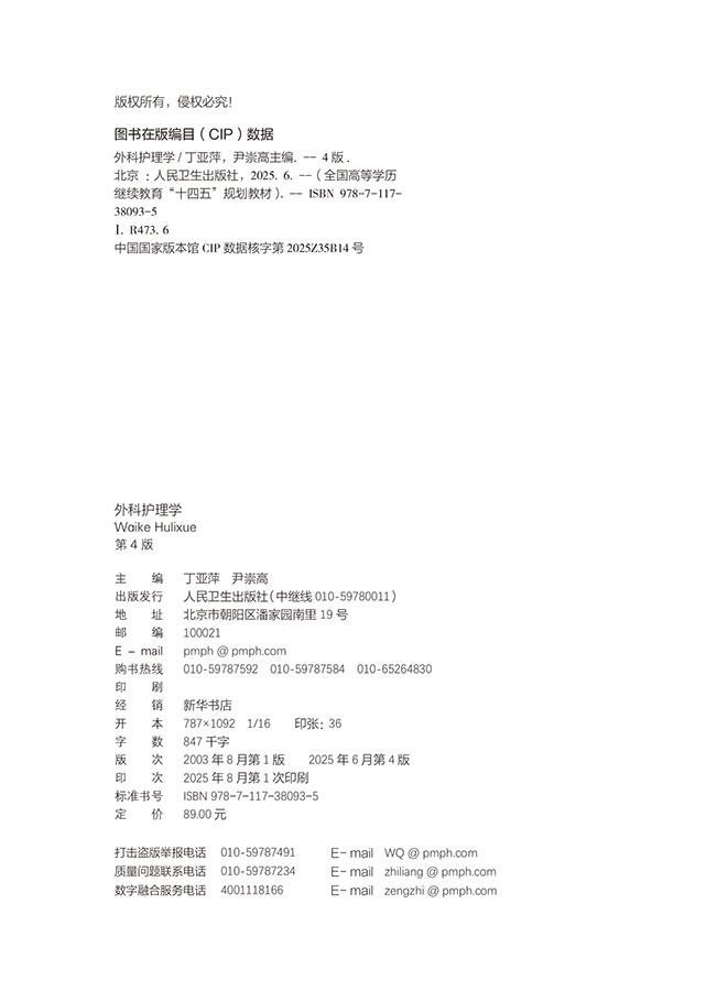 外科护理学 第4四版 十四五规划新形态教材全国高等学校教材 丁亚萍 尹崇高 供护理学类专业高等学历继续教育等使用人民卫生出版社