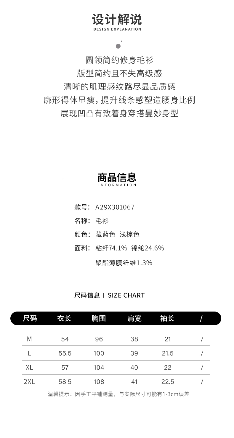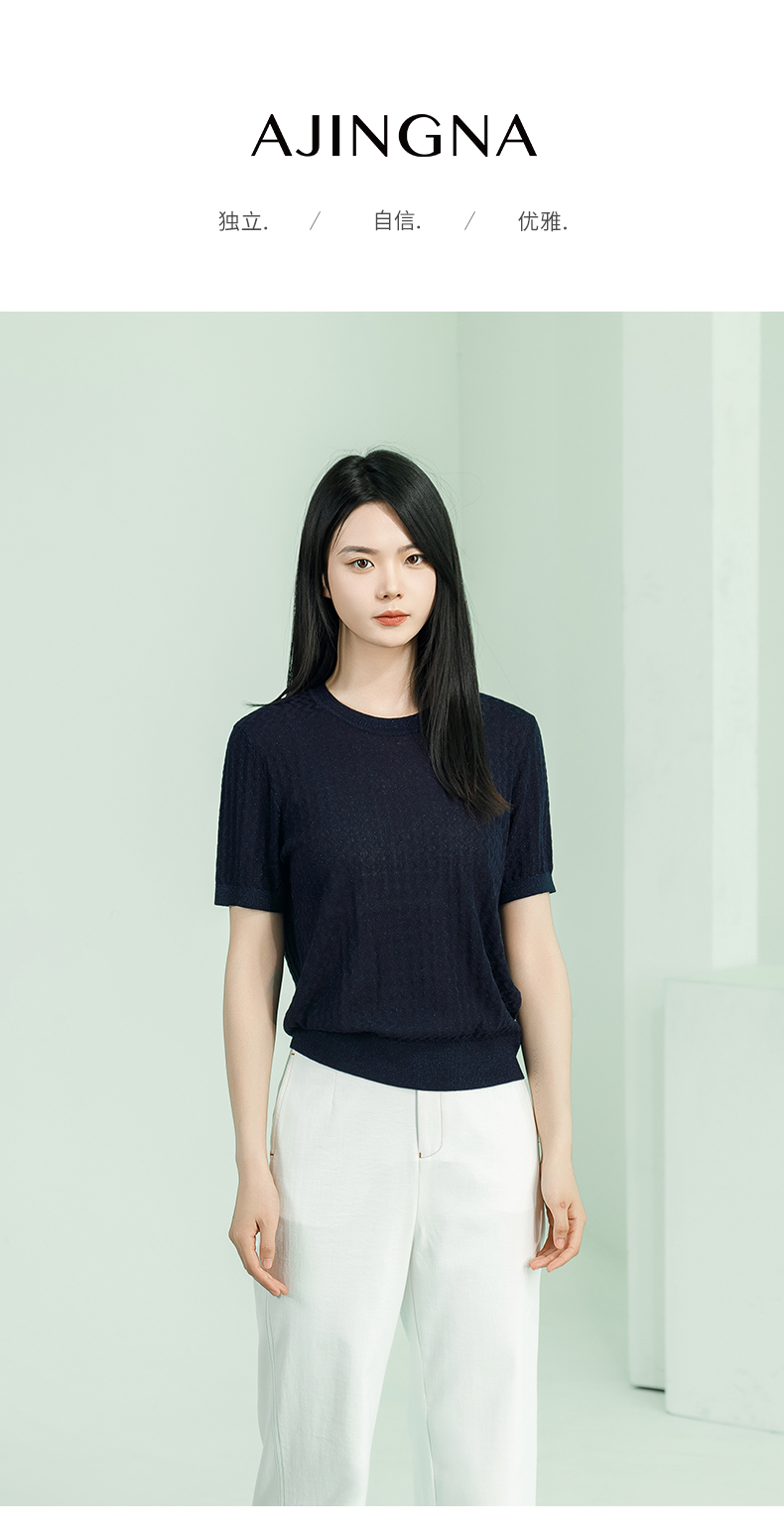 【商场同款】阿菁娜2024夏季新款圆领简约修身毛衫A29X301067