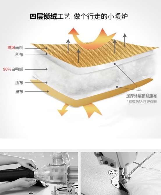 ⭐运用先进的四层锁绒工艺 采用轻薄紧密的防钻绒布做面料 并缝制夹层结构 线条流畅顺直、松紧一致、针迹清晰 看得见的品质