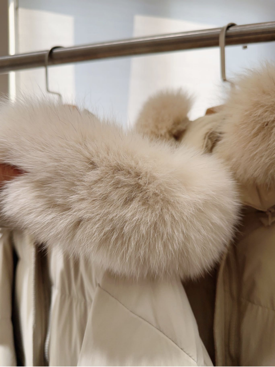⭐轻奢质感,暖而有型 选用柔软蓬松的天然狐狸毛领 造价极高,平常商场都要卖到两三百一条 ✅毛质·细长柔软 ✅毛感·厚实紧密 ✅毛色·光泽饱满 整个帽领也是可拆卸的 可根据穿搭造型随心选择 这个设计可以说是很用心了☺️