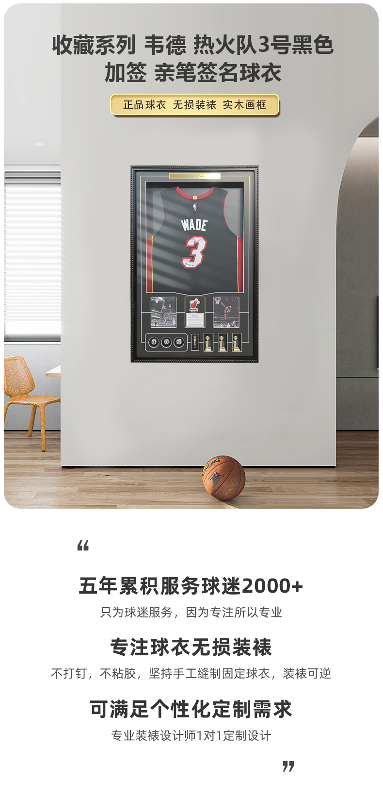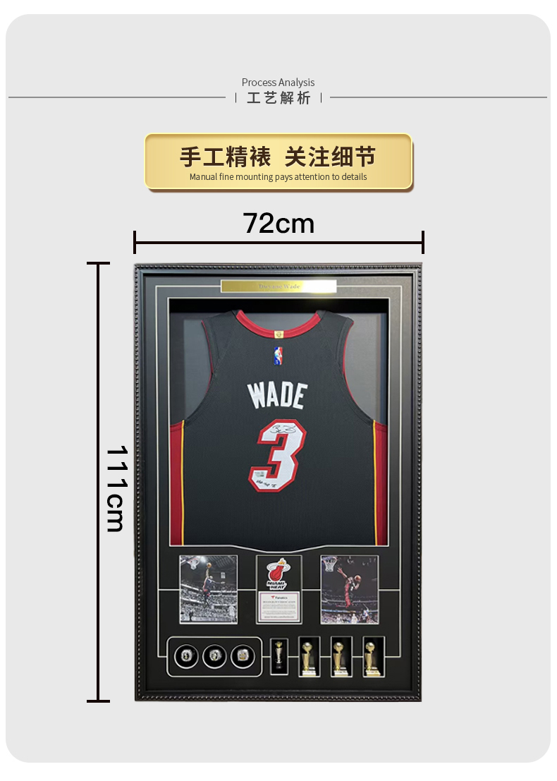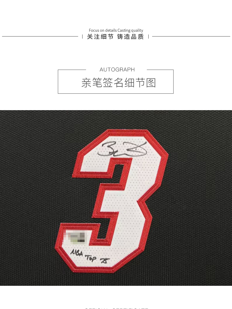 收藏系列 韦德 热火队3号黑色加签 亲笔签名球衣