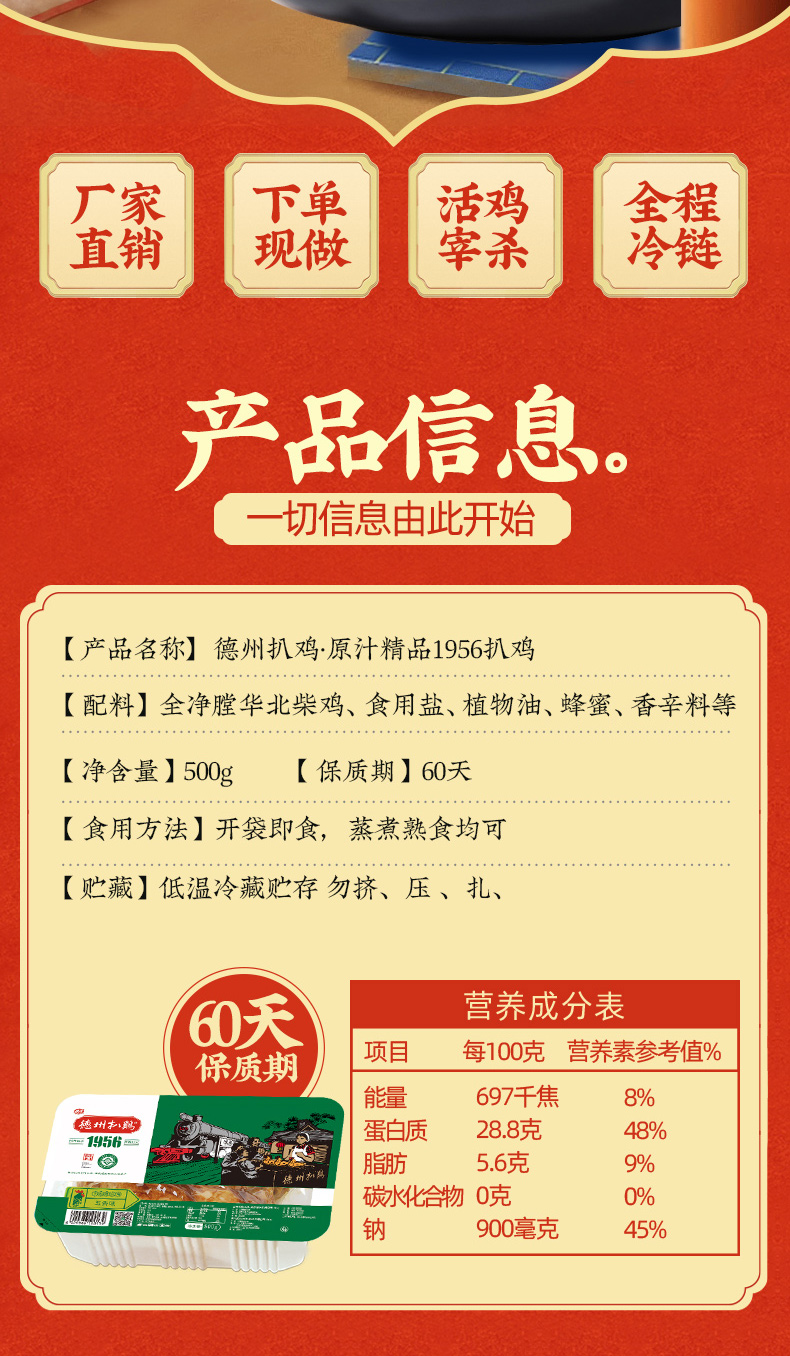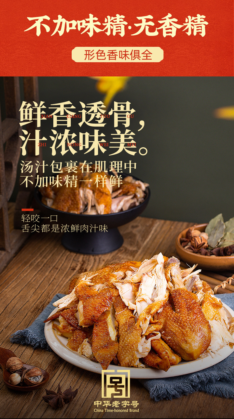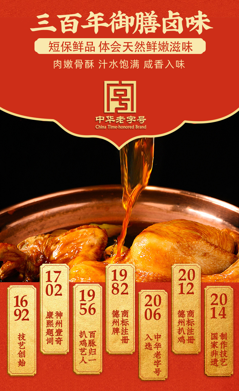 德州扒鸡原汁精品1956华北柴鸡500g 中华老字号非遗美食 60天保质期 山东特产