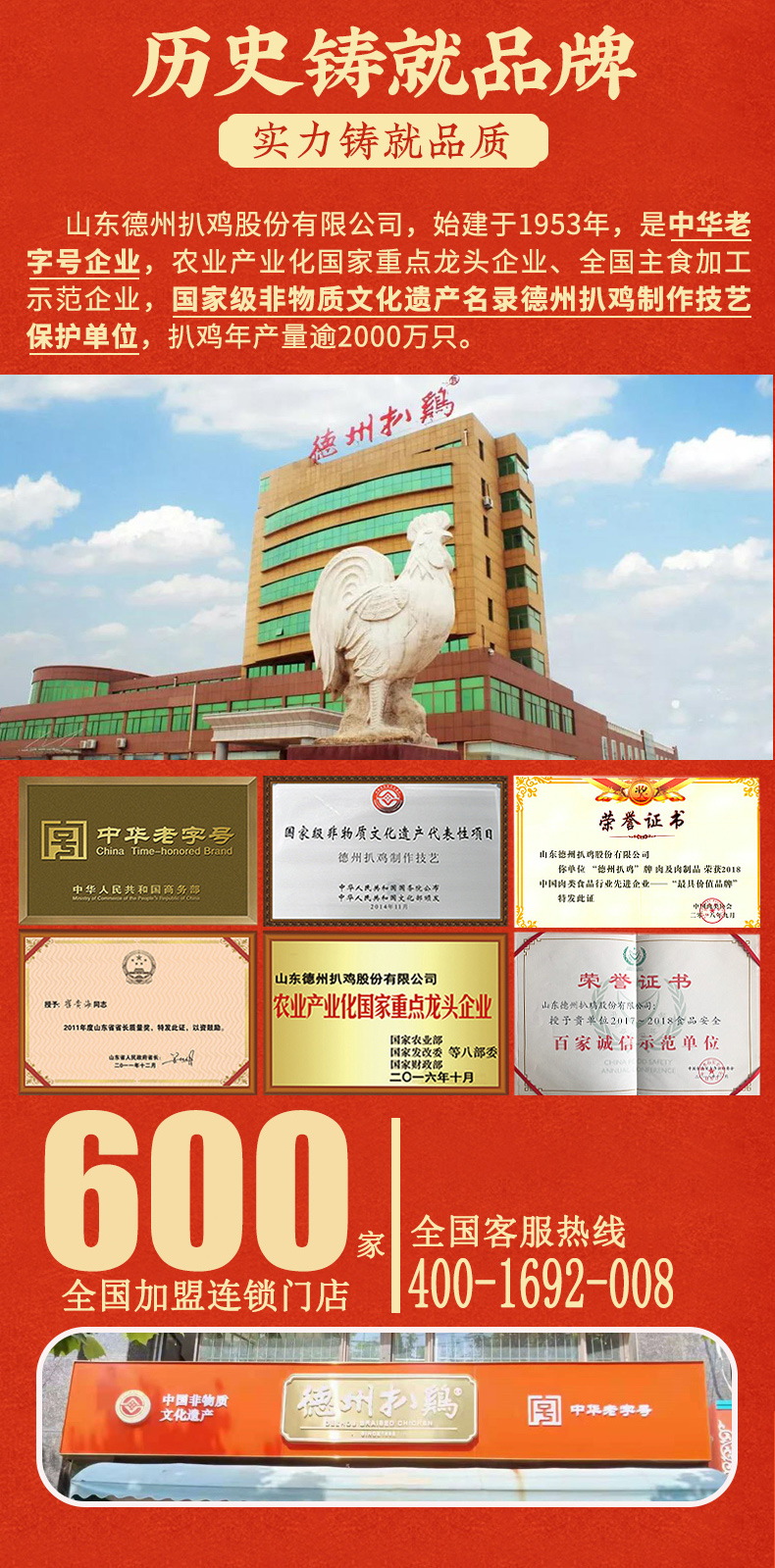 - 山东德州扒鸡股份有限公司始建于1953年,前身为中国食品公司德州市分公司,是一家以生产经营德州扒鸡为主的禽类熟制品生产企业,系农业产业化国家重点龙头企业、全国主食加工示范企业、中国肉类食品行业强势企业