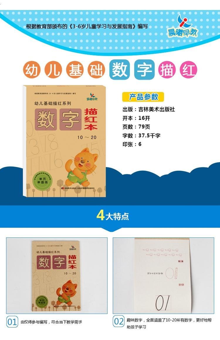 晨曦早教 幼儿基础描红系列—数字描红本10-20 儿童早教书籍描写图书 3-6岁宝宝学前早教汉字识字书