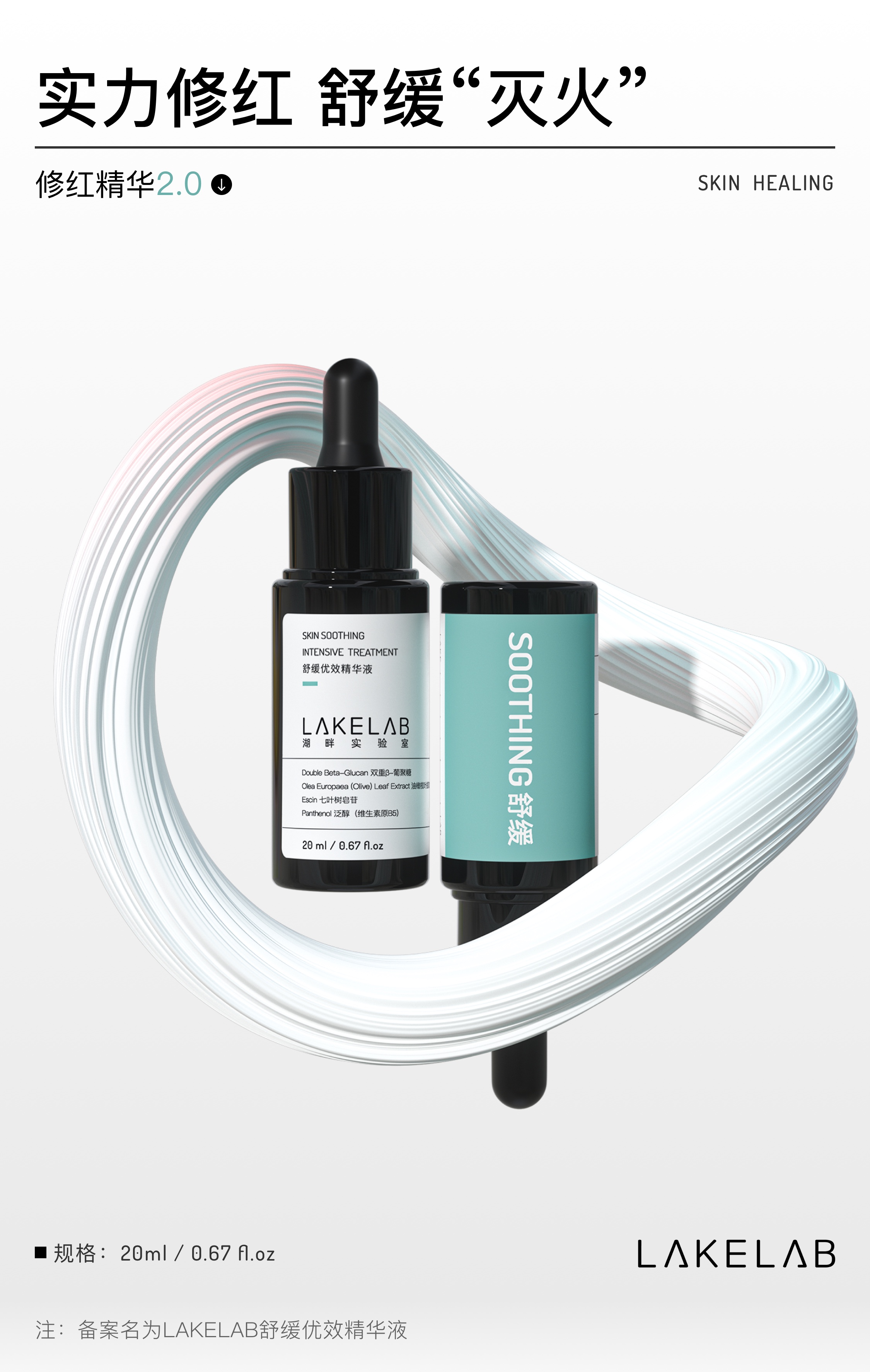 LAKELAB湖畔实验室 修红精华 舒缓敏感泛红修红痘印 油橄榄葡聚糖