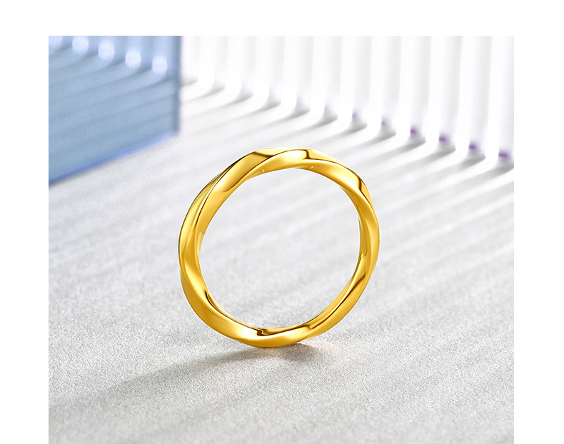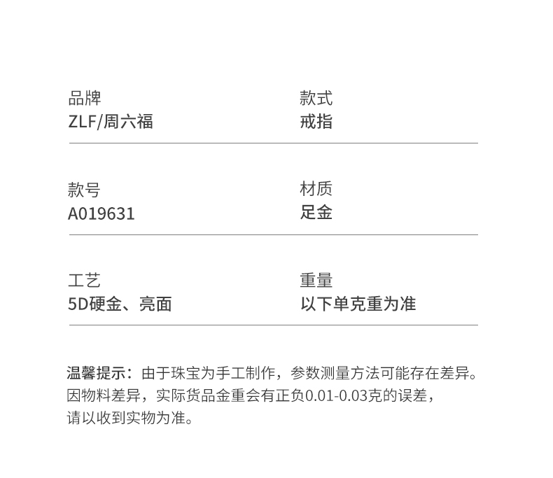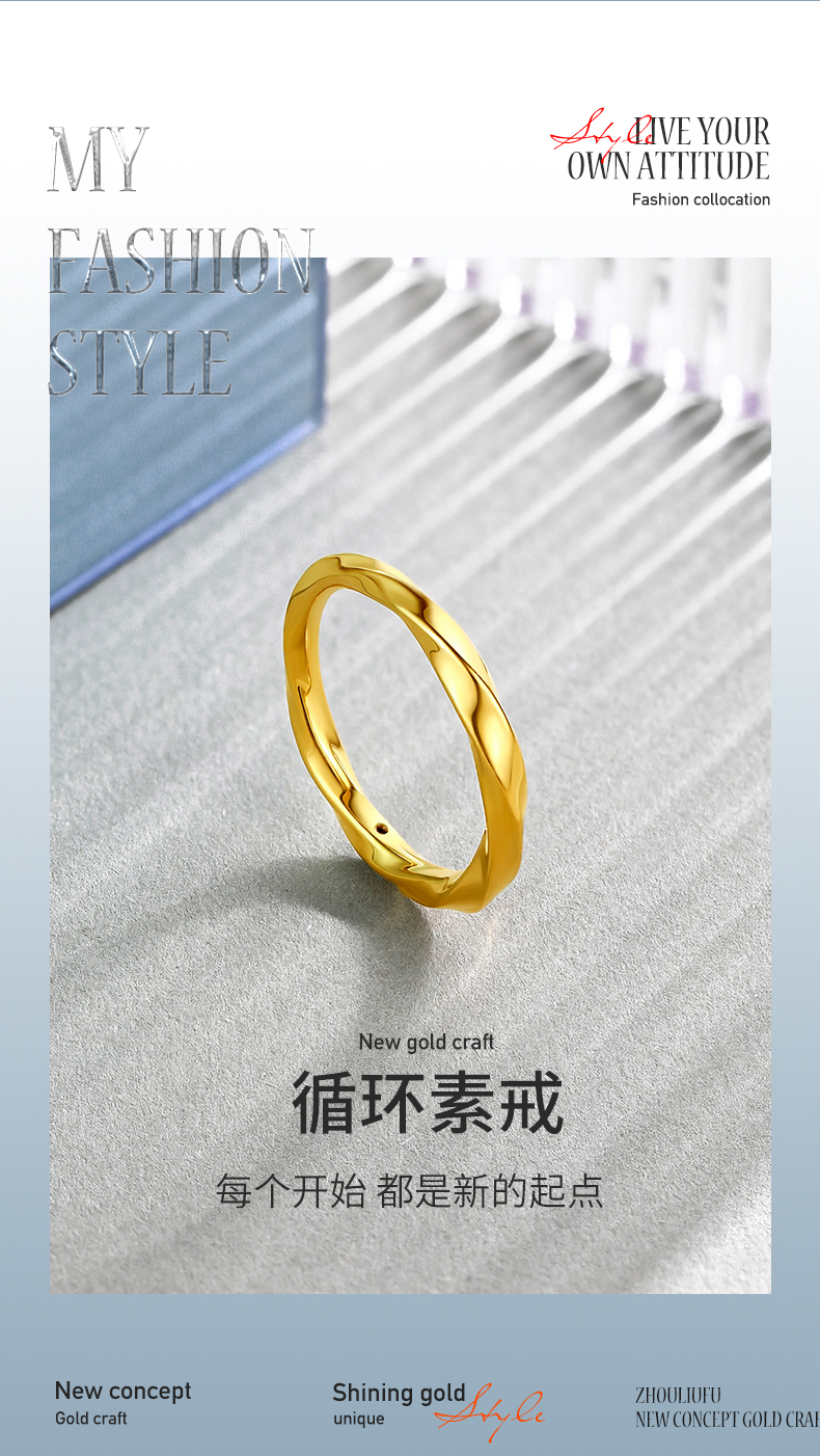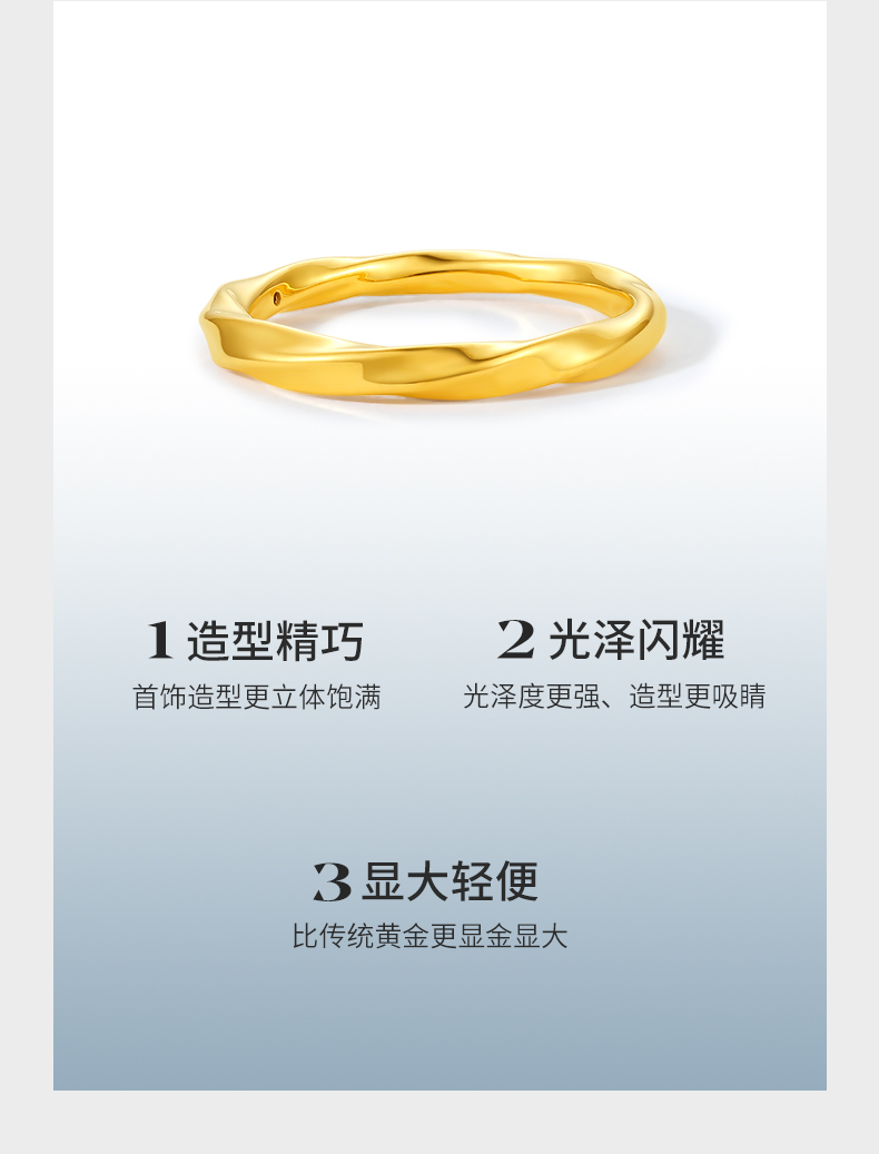 周六福黄金5D戒指女足金计价硬金莫比乌斯环素戒对戒送女友礼物