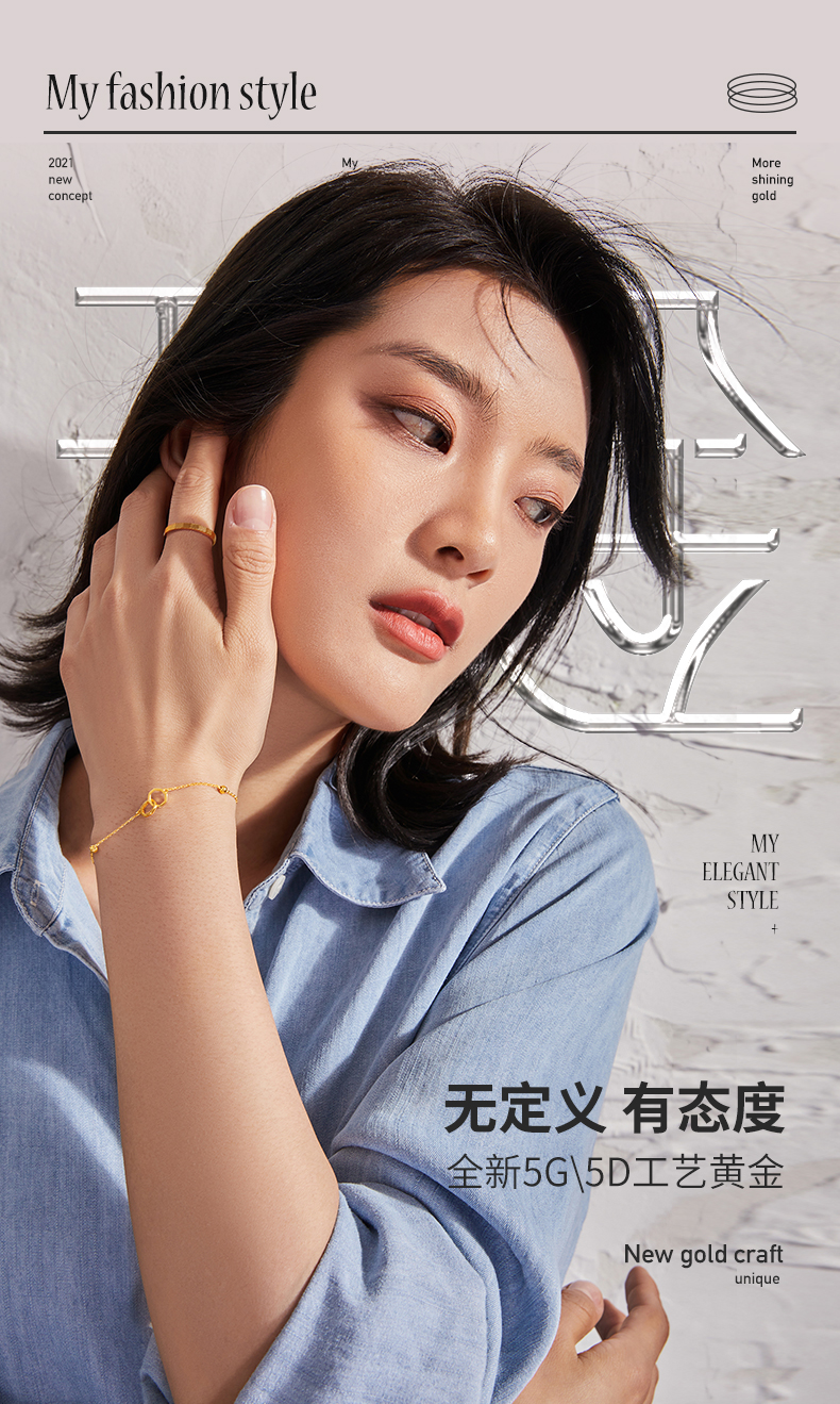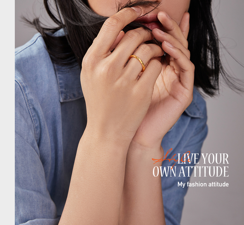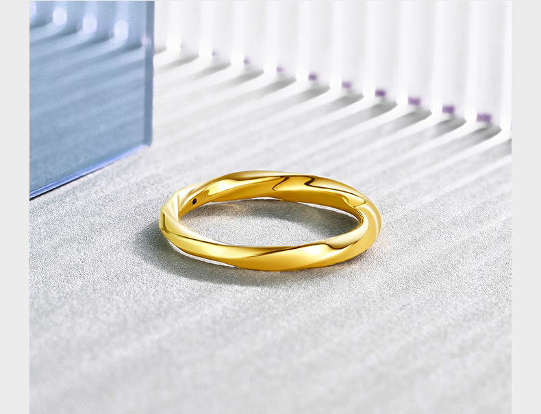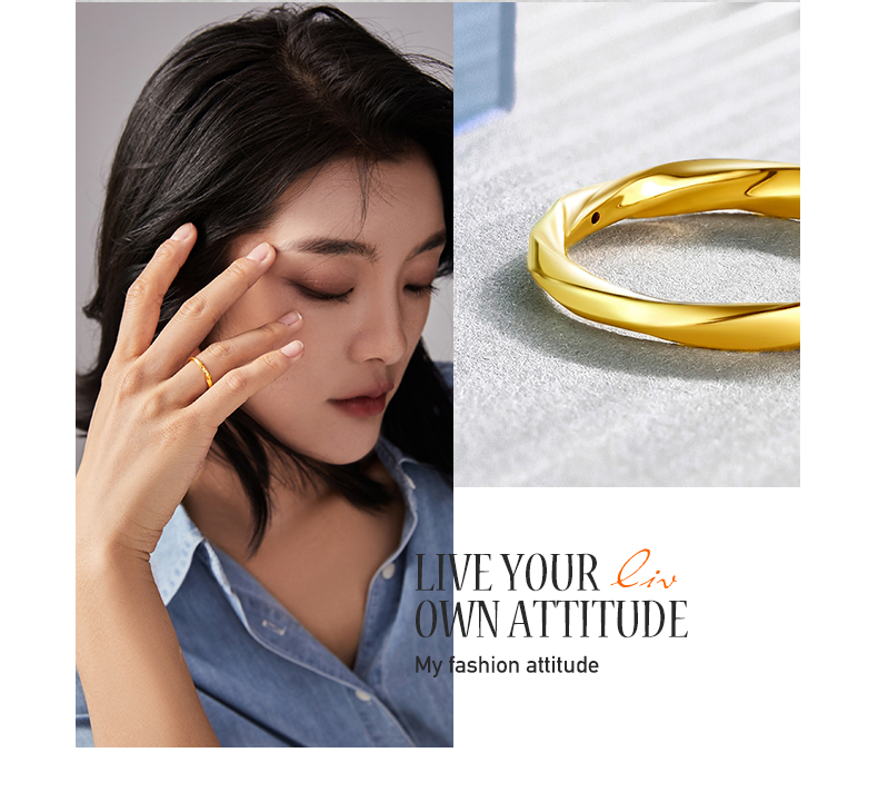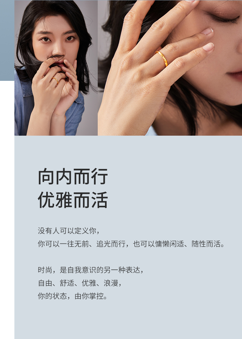 周六福黄金5D戒指女足金计价硬金莫比乌斯环素戒对戒送女友礼物