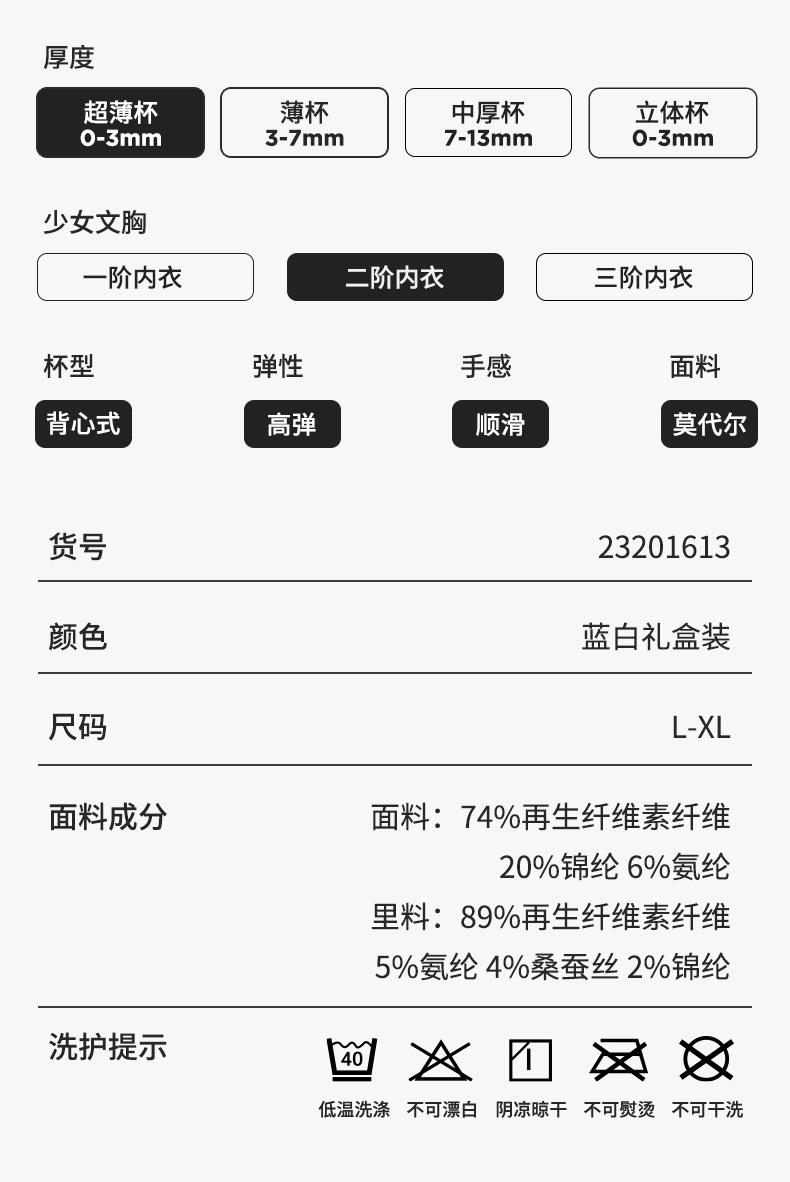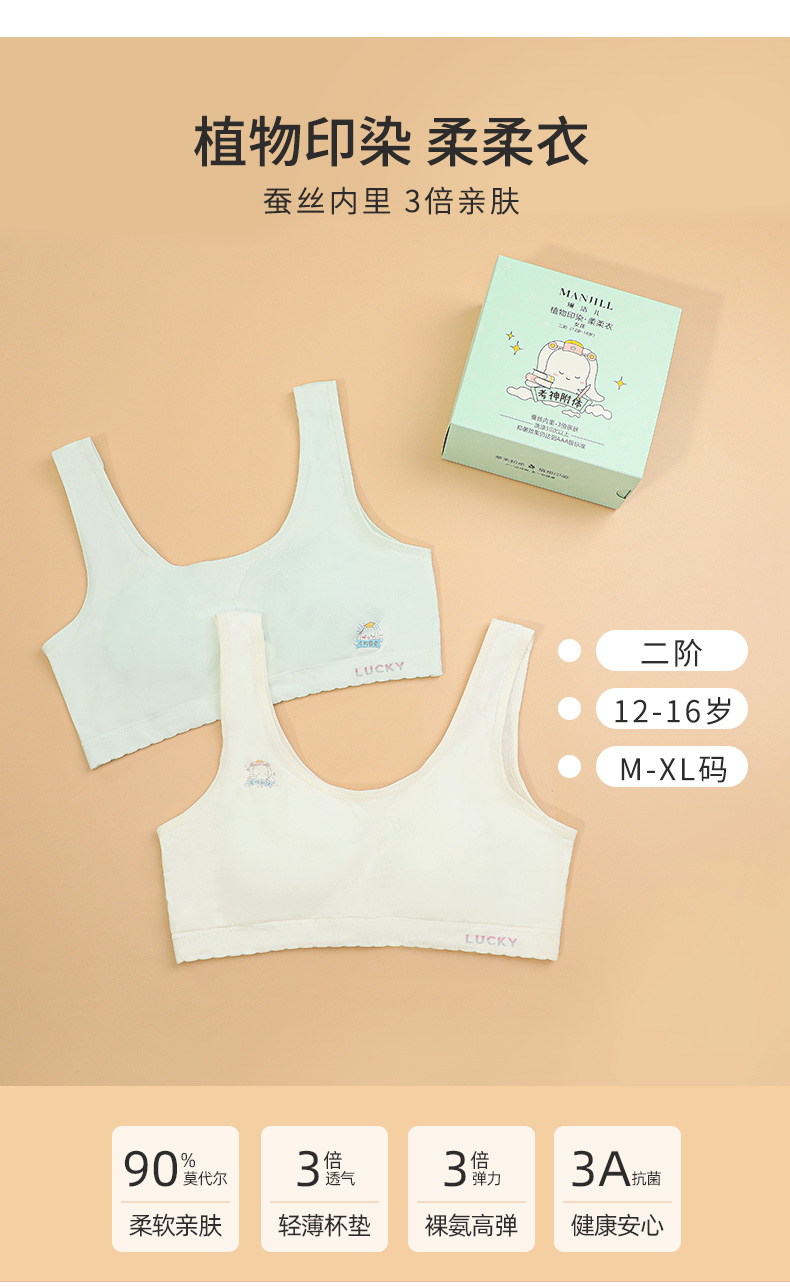 【2件装】熳洁儿 二阶段12-16岁少女围背心式文胸学生内衣无钢圈逢考必过图案23201613