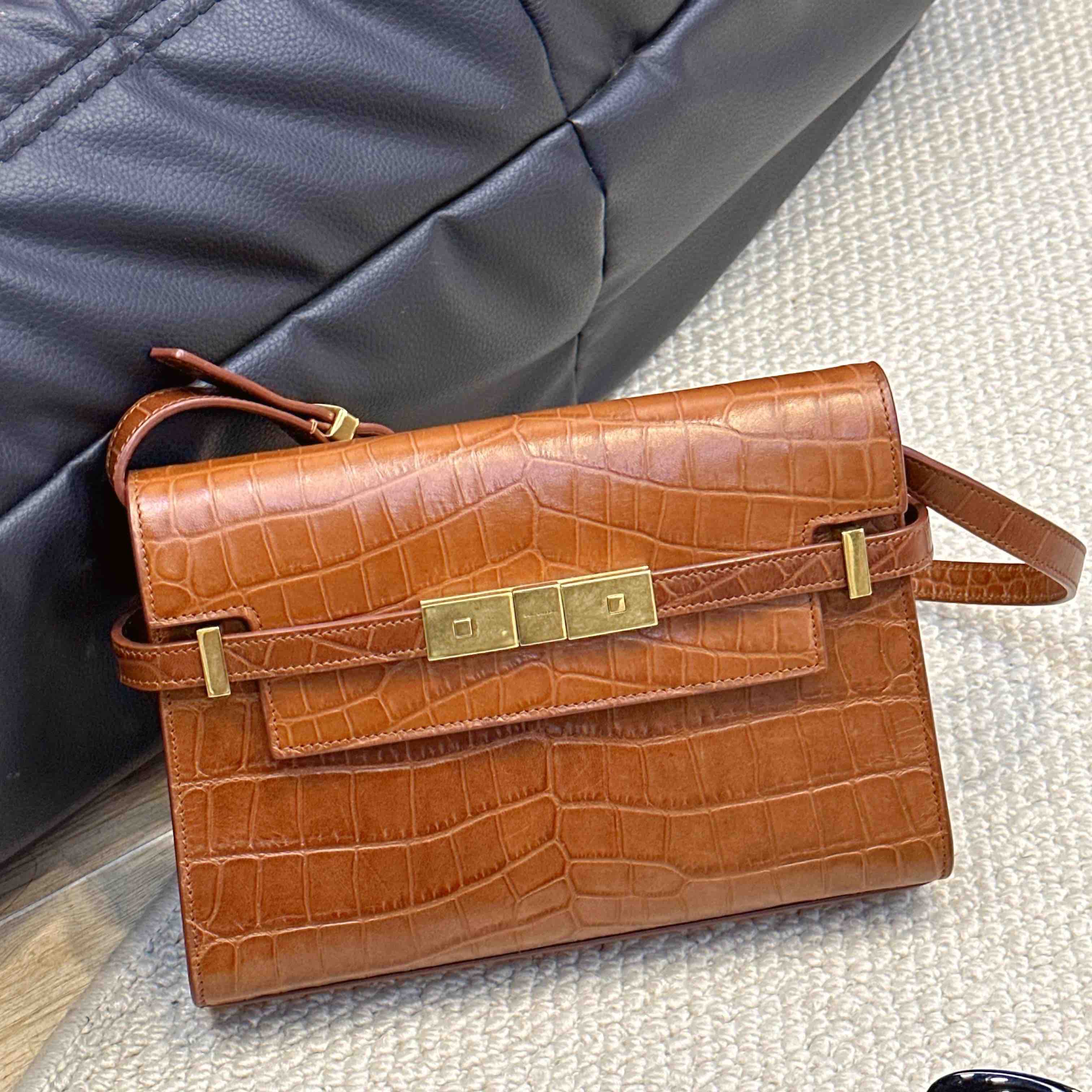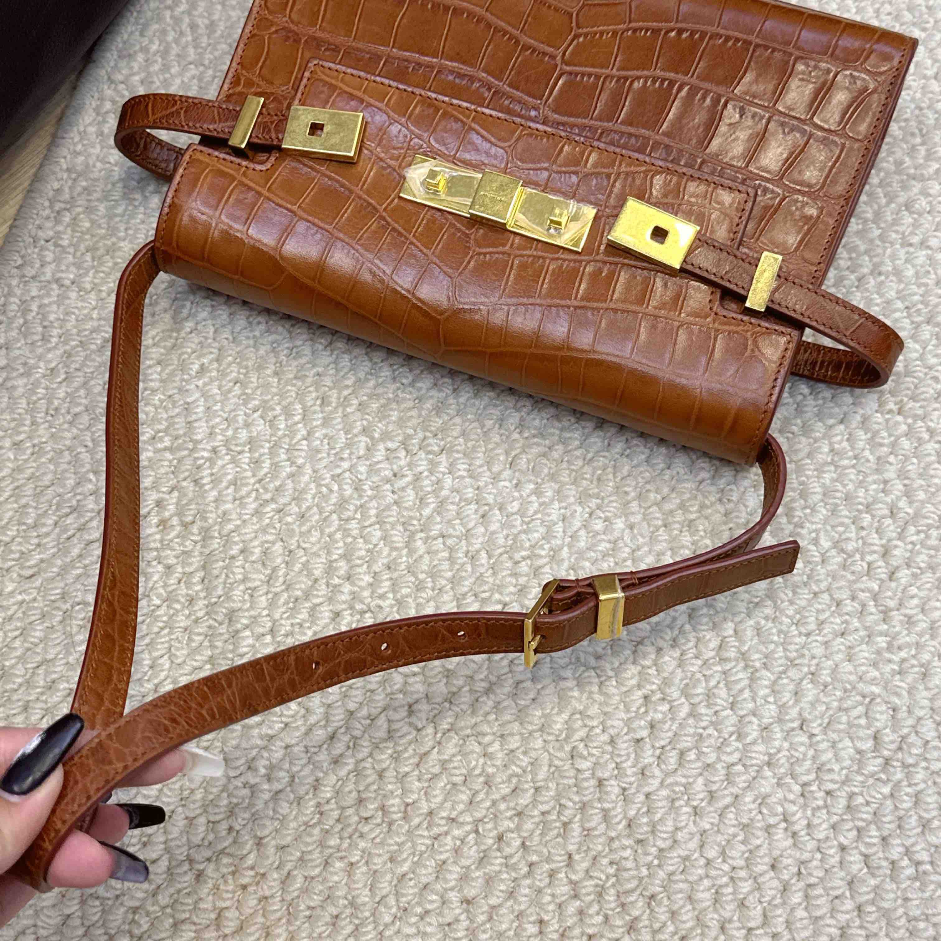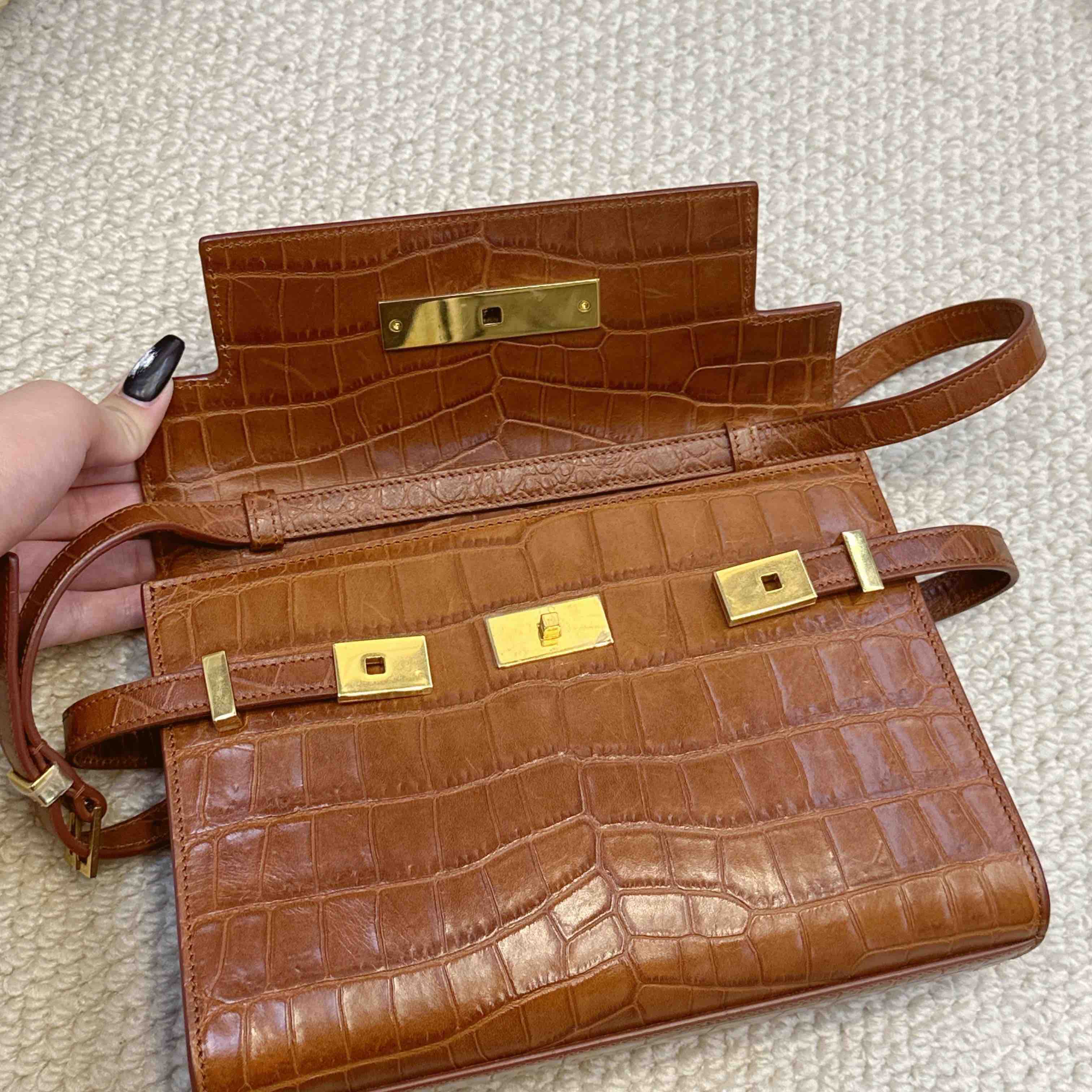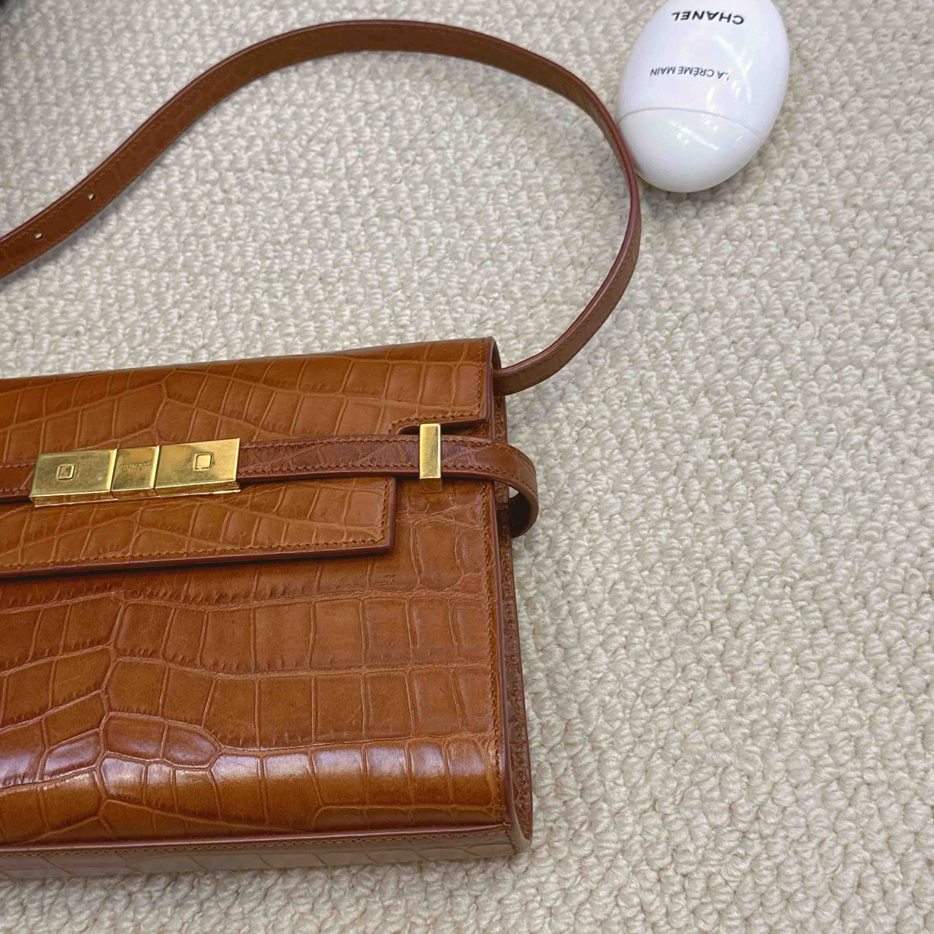 【商品详情】正品二手 YSL 曼哈顿 鳄鱼压纹 牛皮 焦糖色 小号 单肩包🍁97新 24x15 配件:吊牌 防尘袋卡片 。五金轻微氧化 整包成色不错 秋冬必搭单品