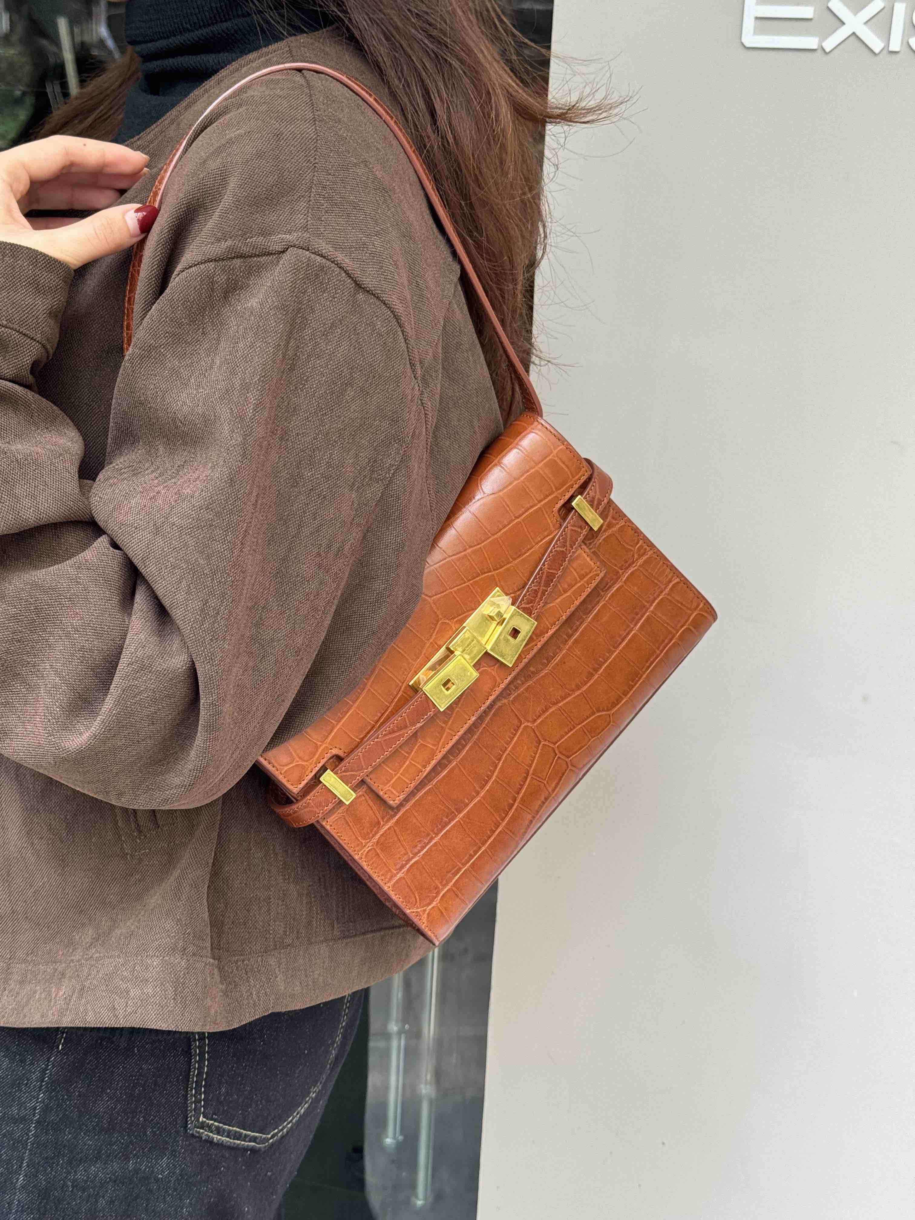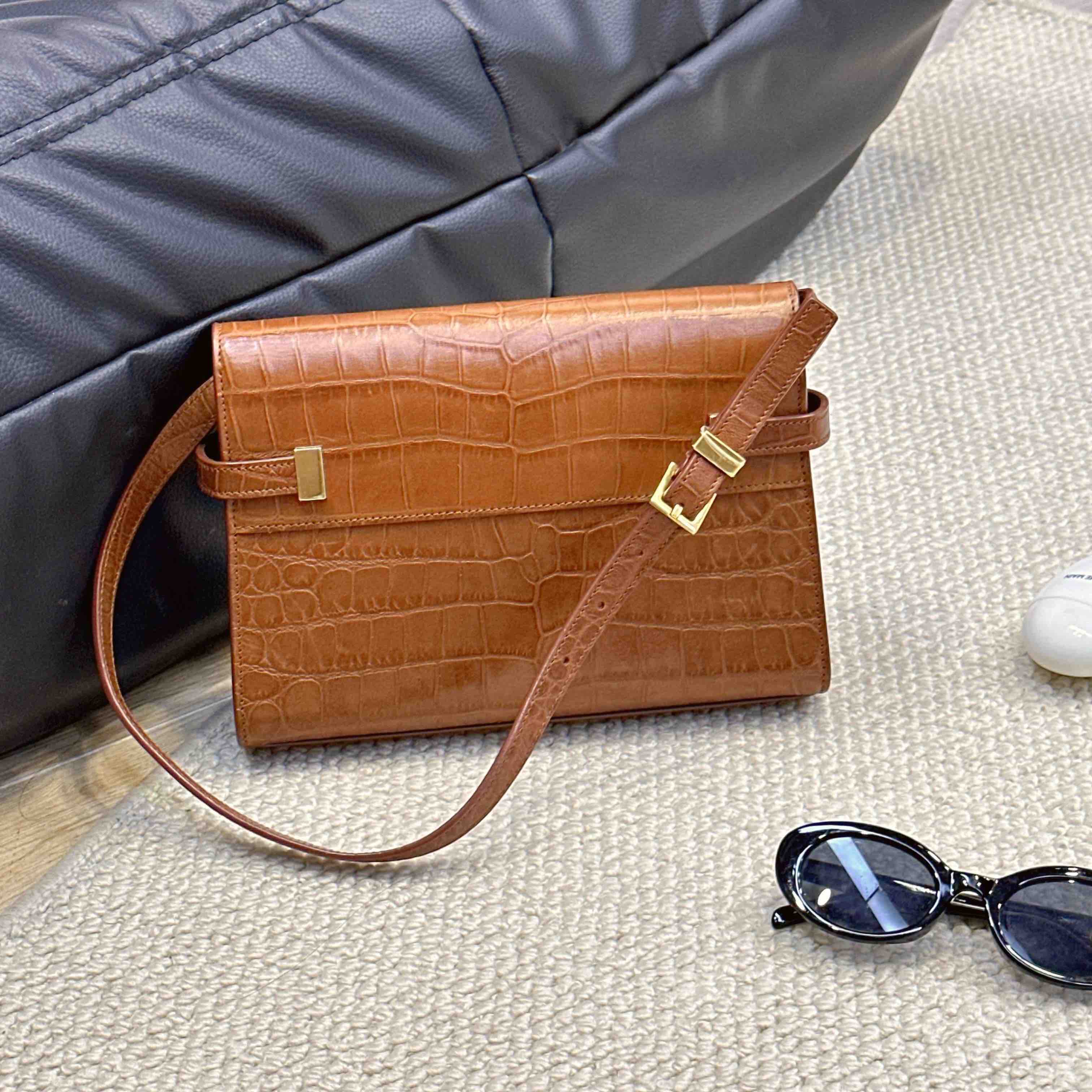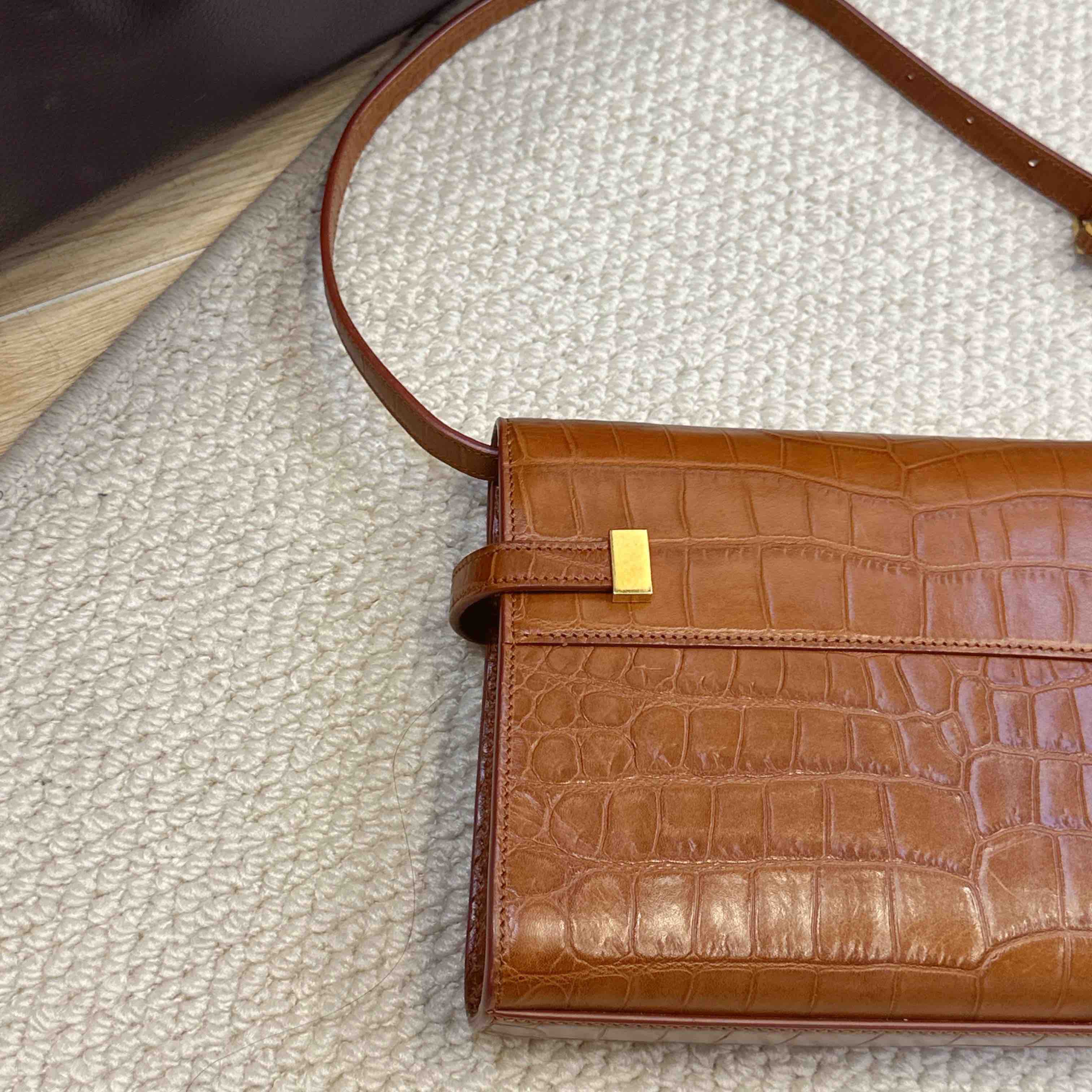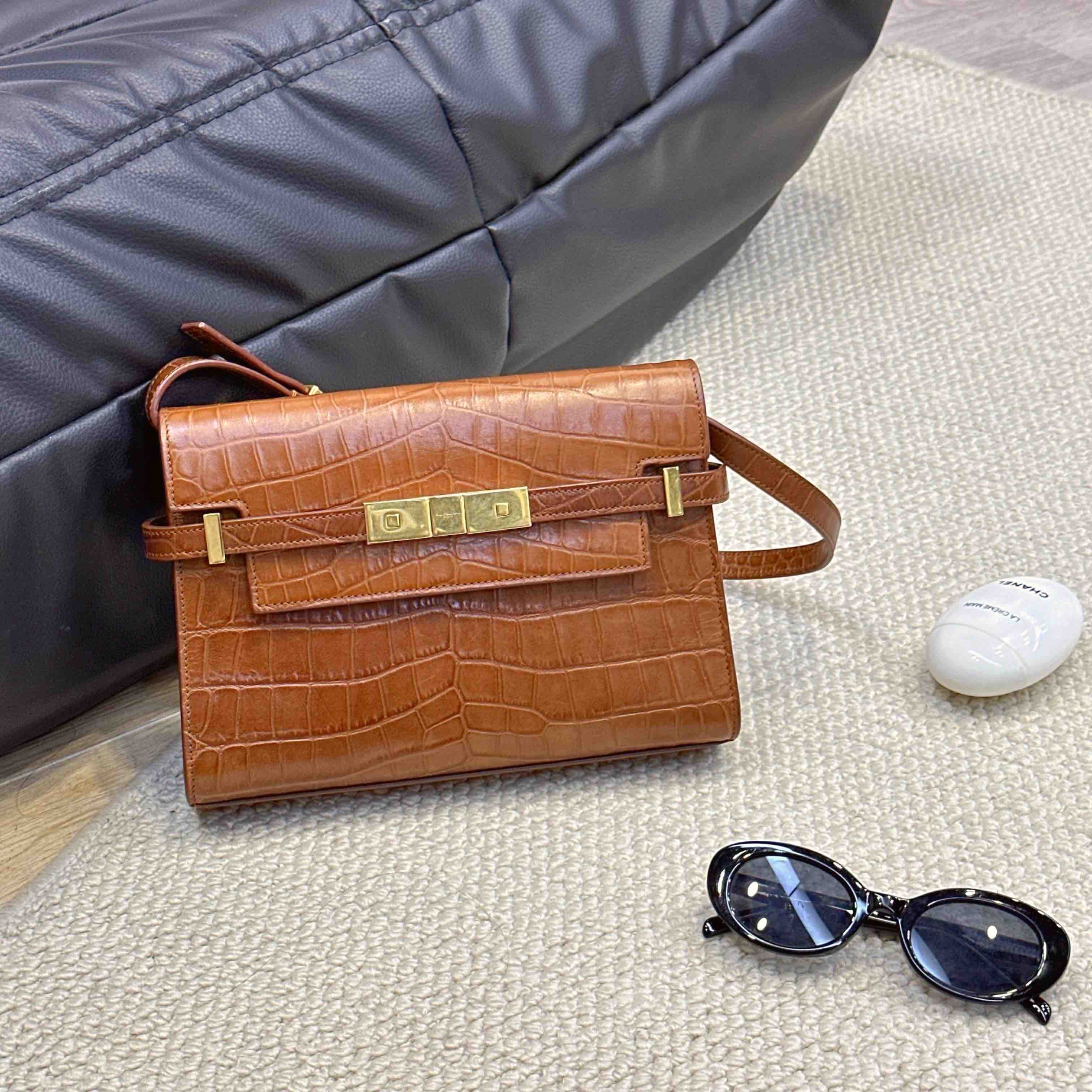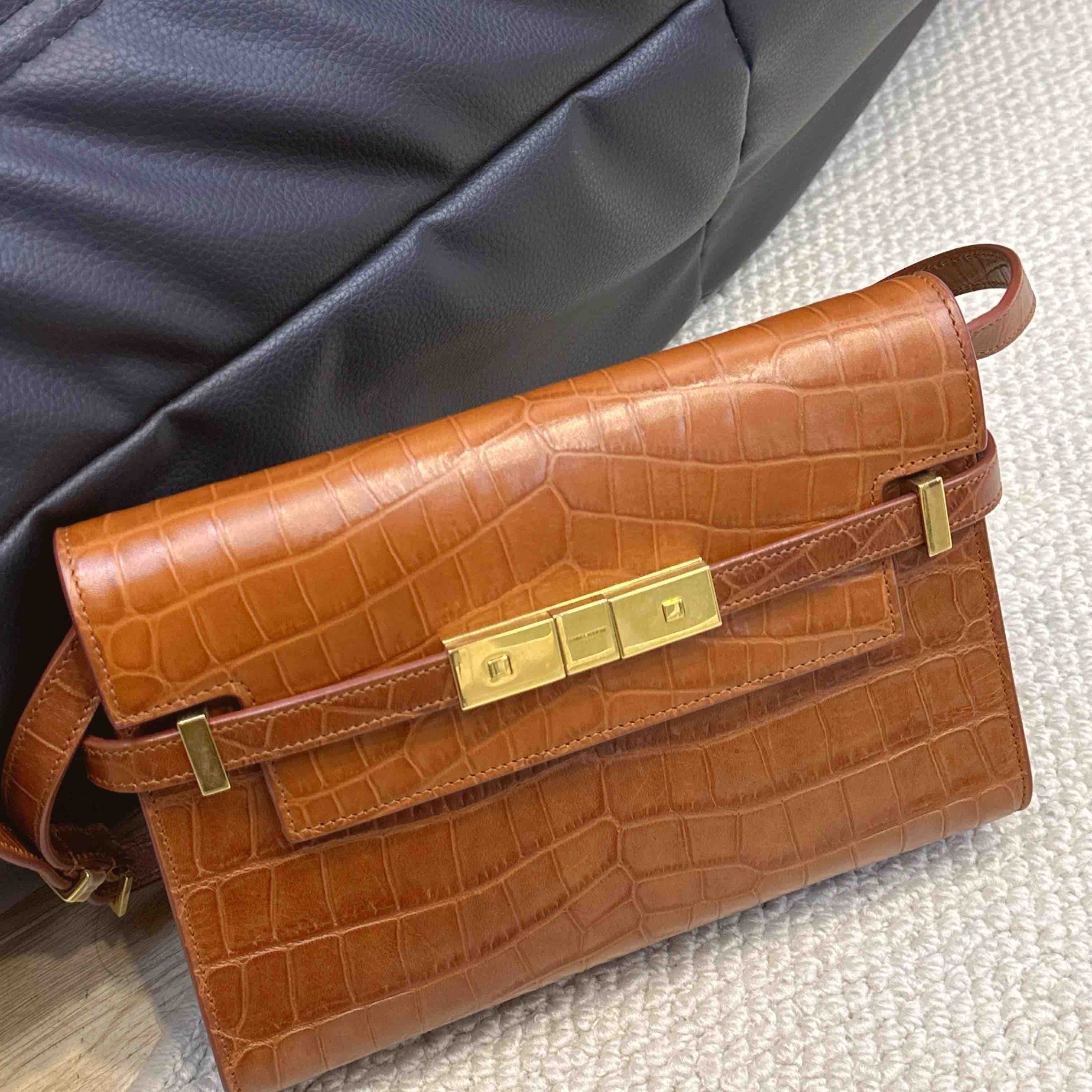 【商品详情】正品二手 YSL 曼哈顿 鳄鱼压纹 牛皮 焦糖色 小号 单肩包🍁97新 24x15 配件:吊牌 防尘袋卡片 。五金轻微氧化 整包成色不错 秋冬必搭单品