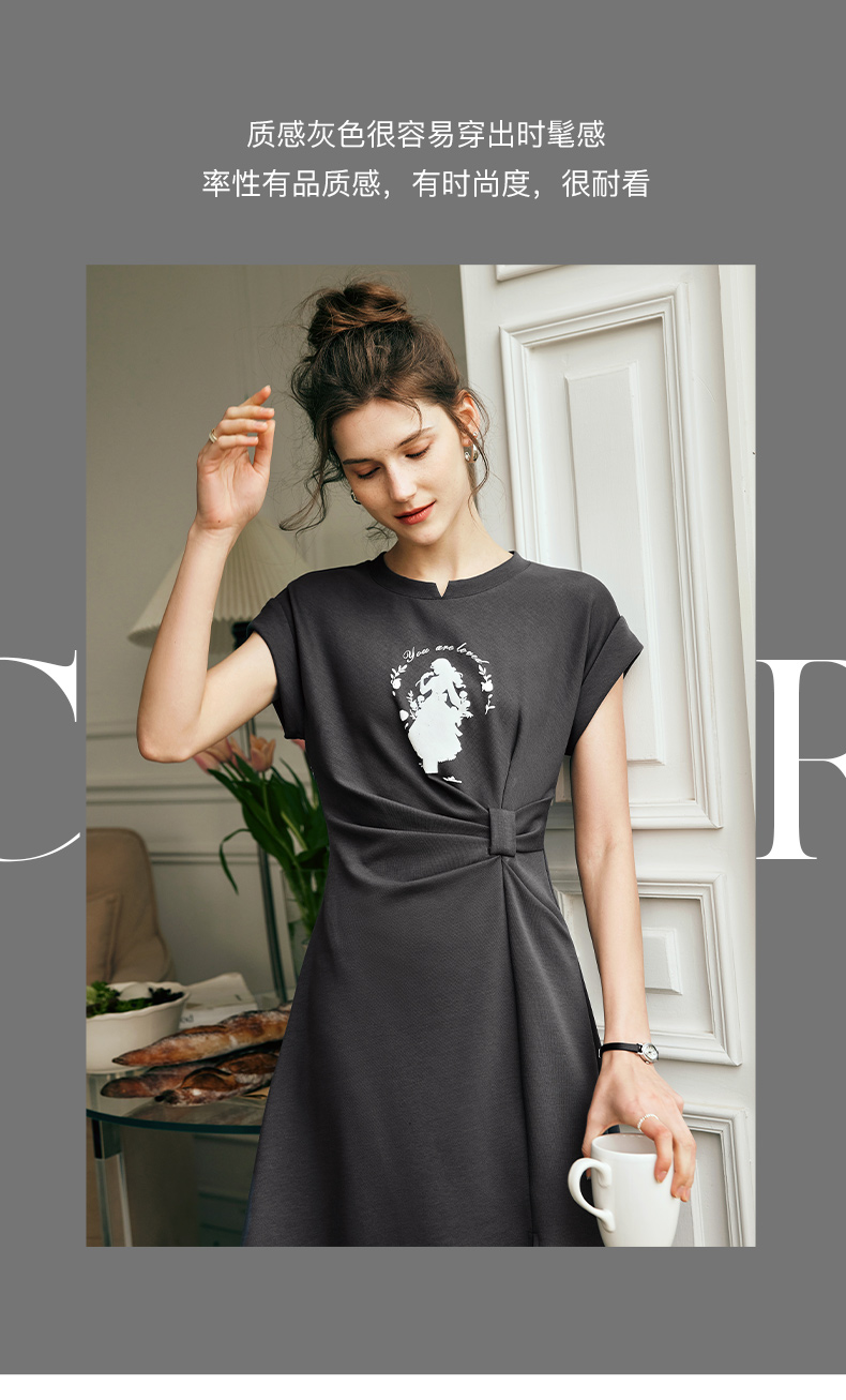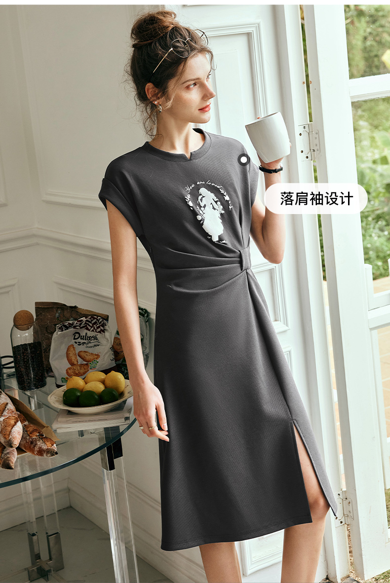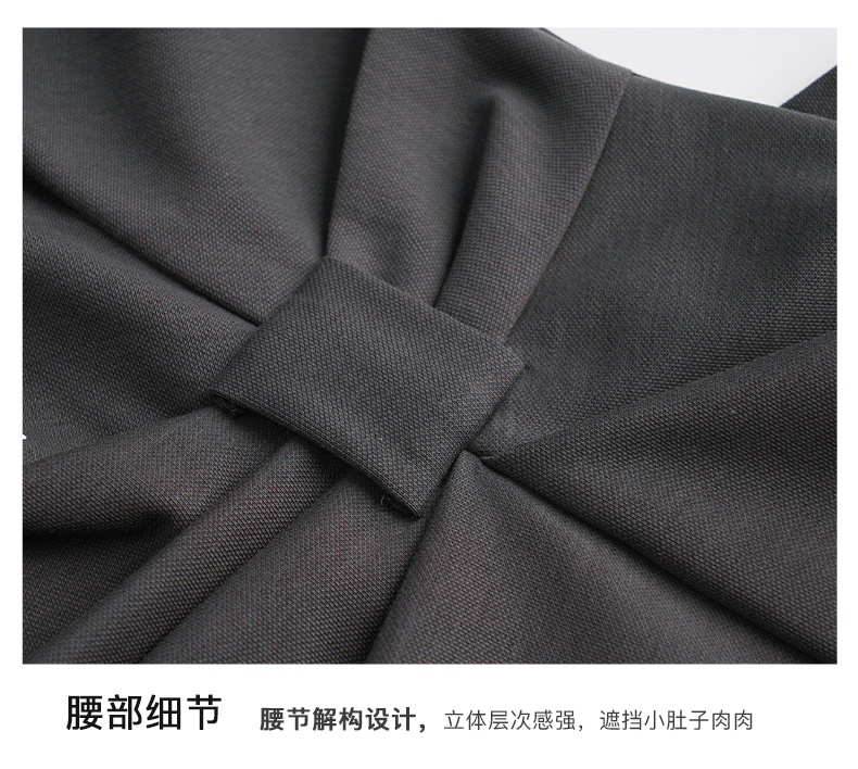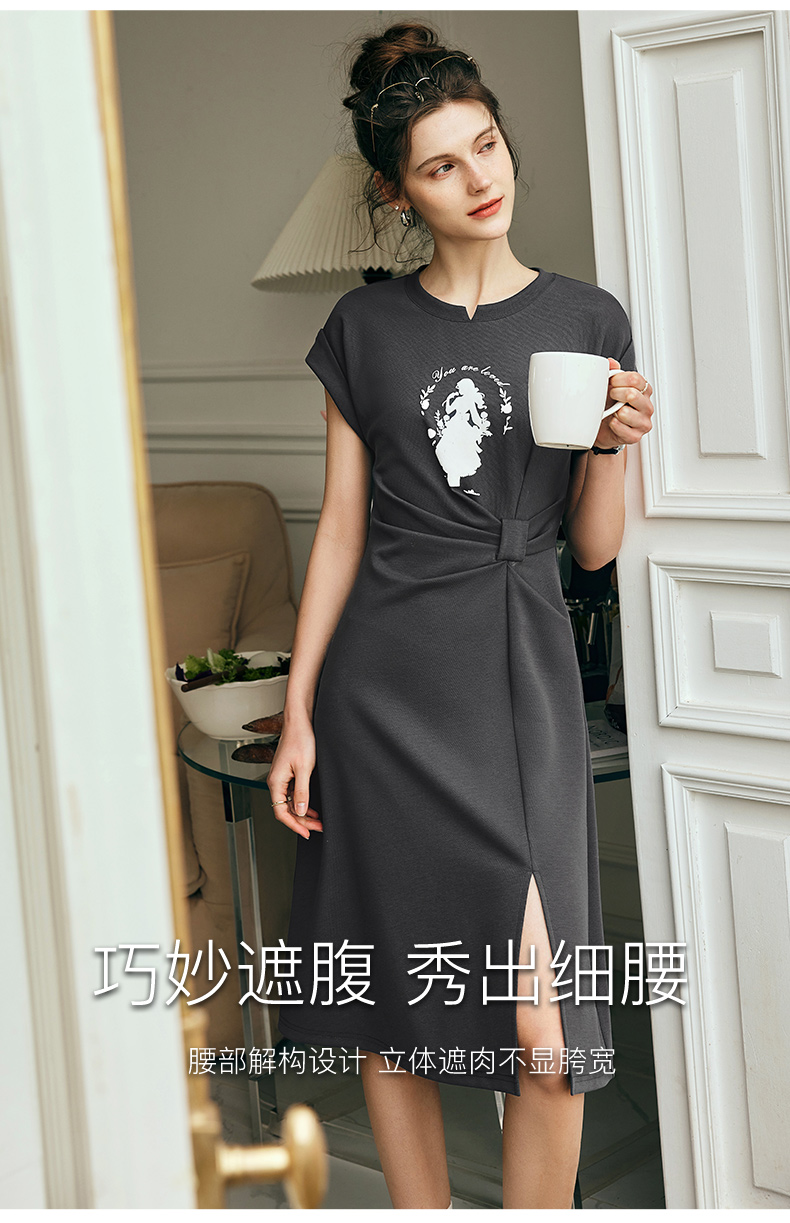 OLrain欧芮儿法式灰色针织连衣裙女夏季2023新款收腰肌理感开叉裙