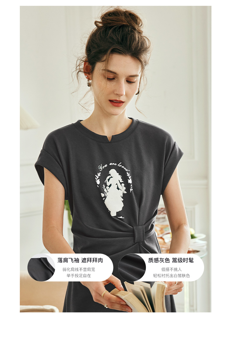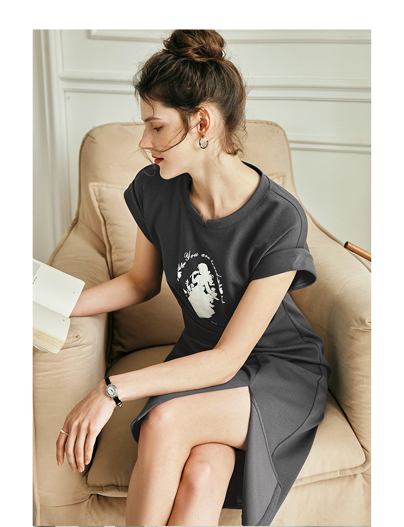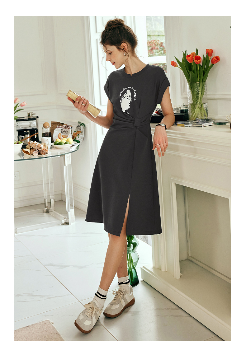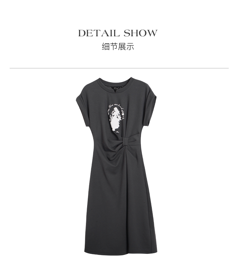 OLrain欧芮儿法式灰色针织连衣裙女夏季2023新款收腰肌理感开叉裙