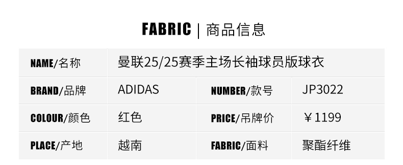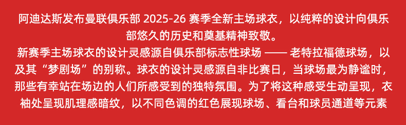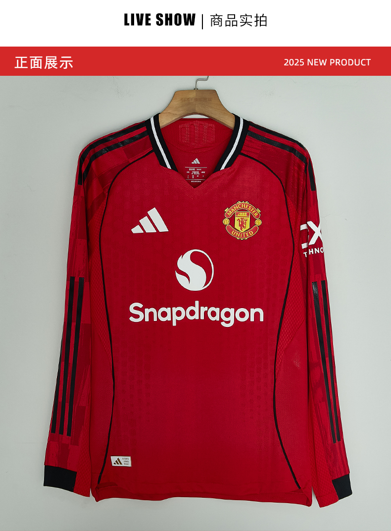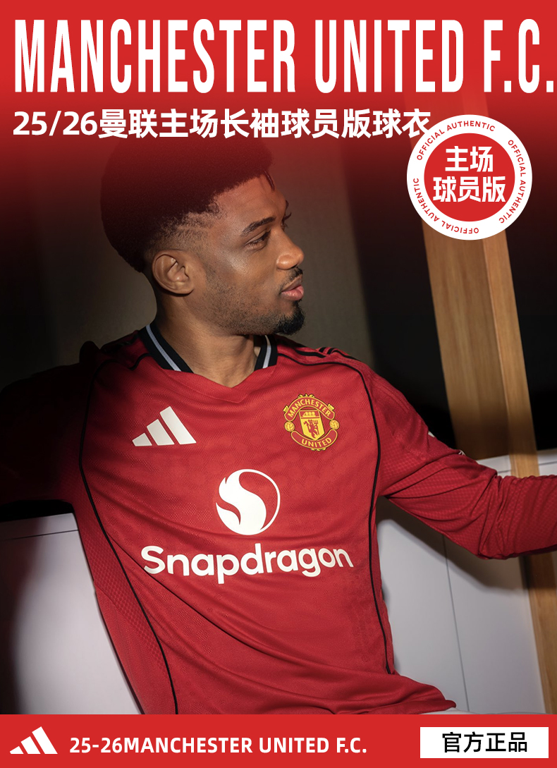 SFS阿迪达斯Adidas曼联25/26主场长袖球员版球衣足球服男JP3022