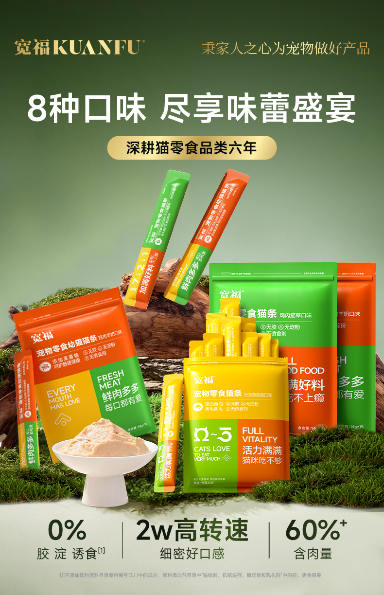 【微信会员特惠】[桶装 100支39.9元]宽福 猫条特惠 混合口味 鲜肉猫条 0胶0诱食剂