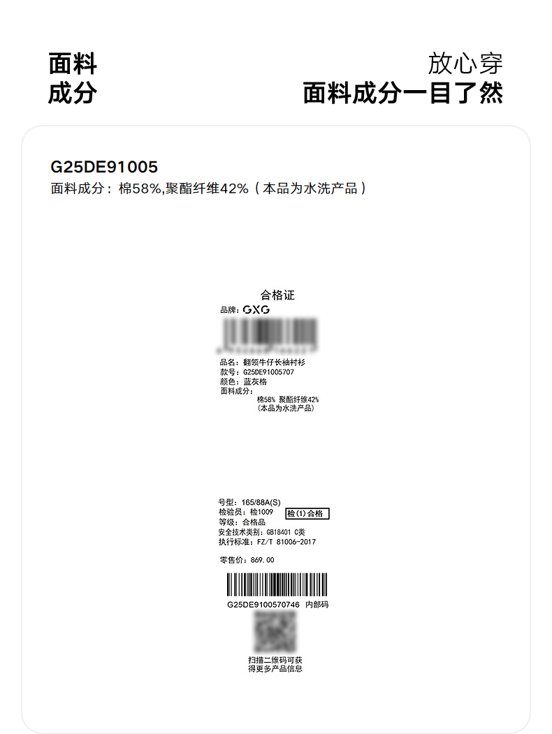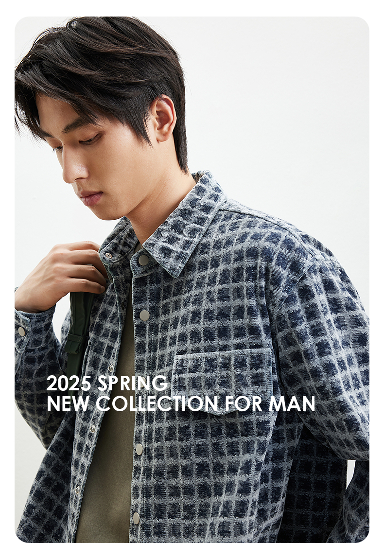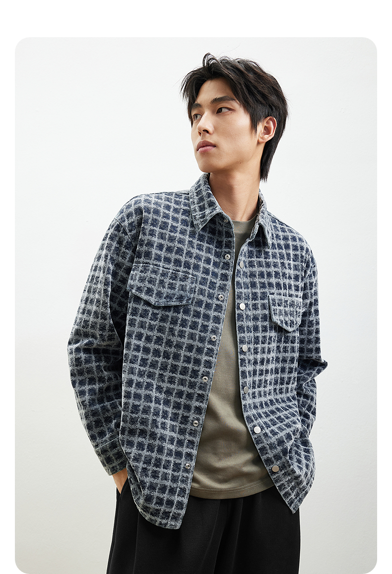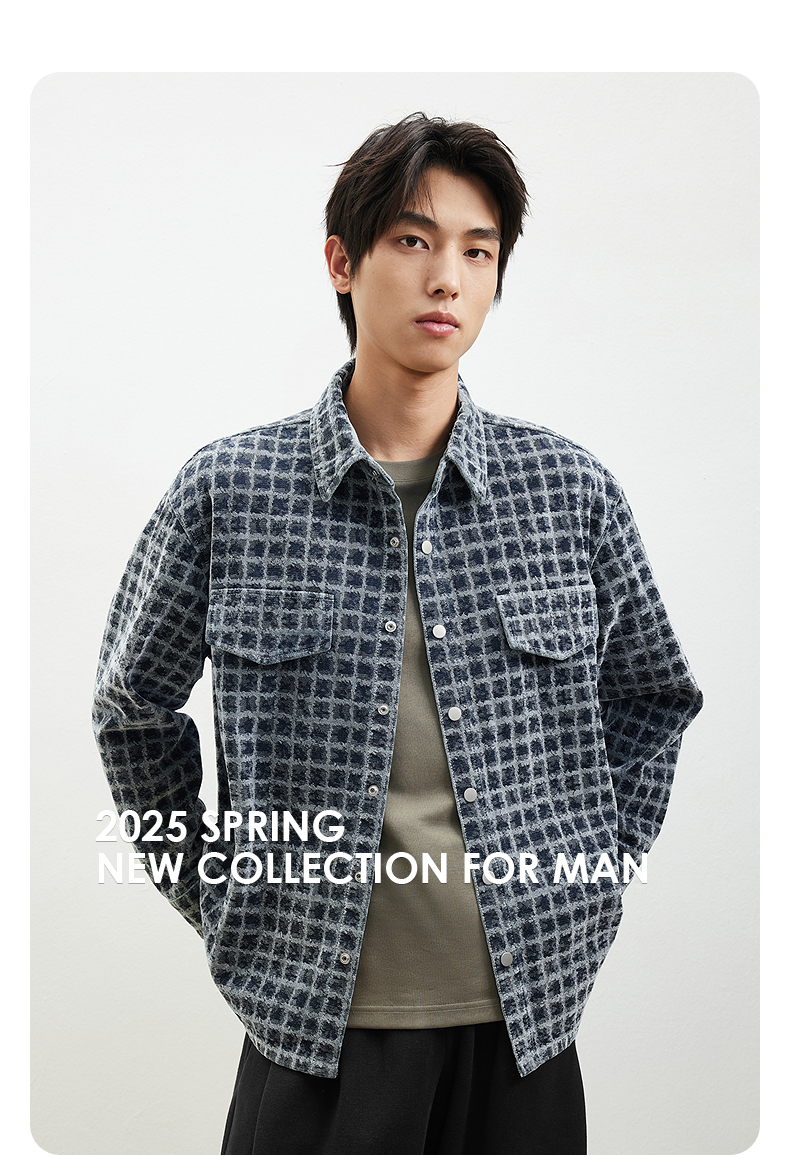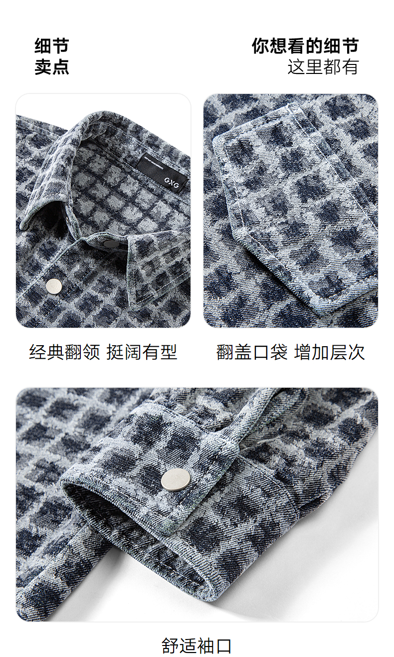 GXG男装格纹牛仔外套男25年春季热卖复古衬衫式夹克#G25DE91005