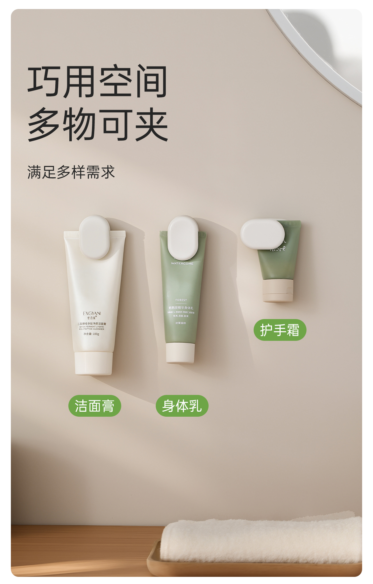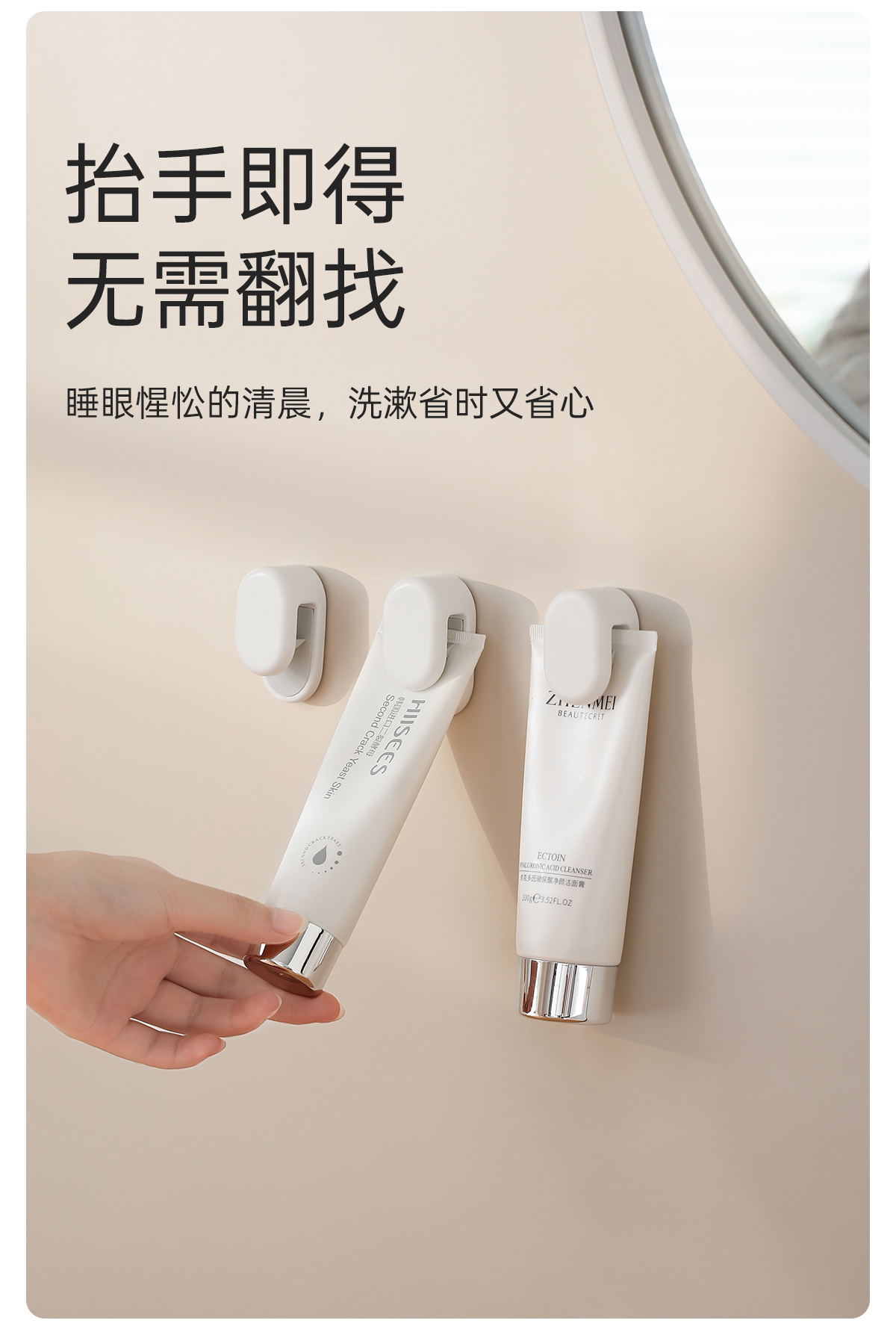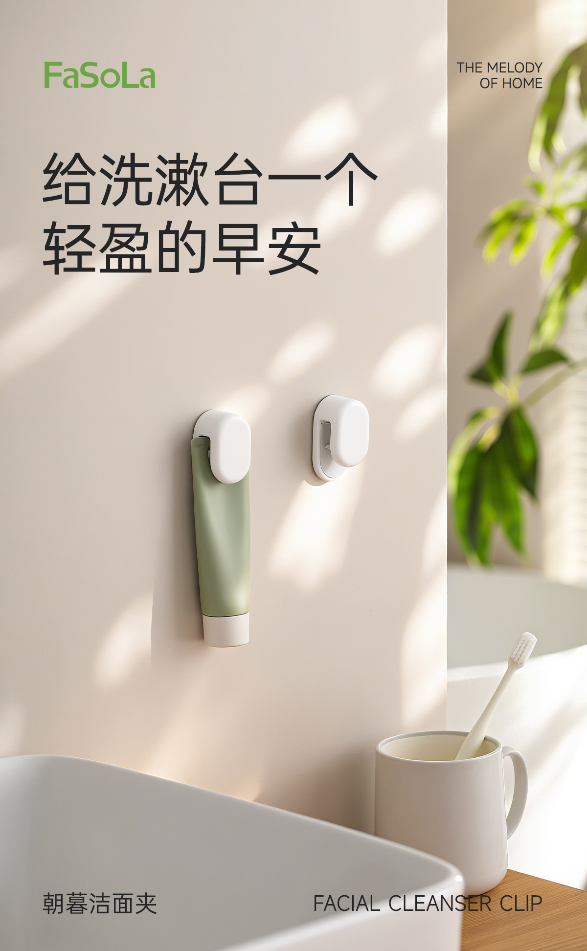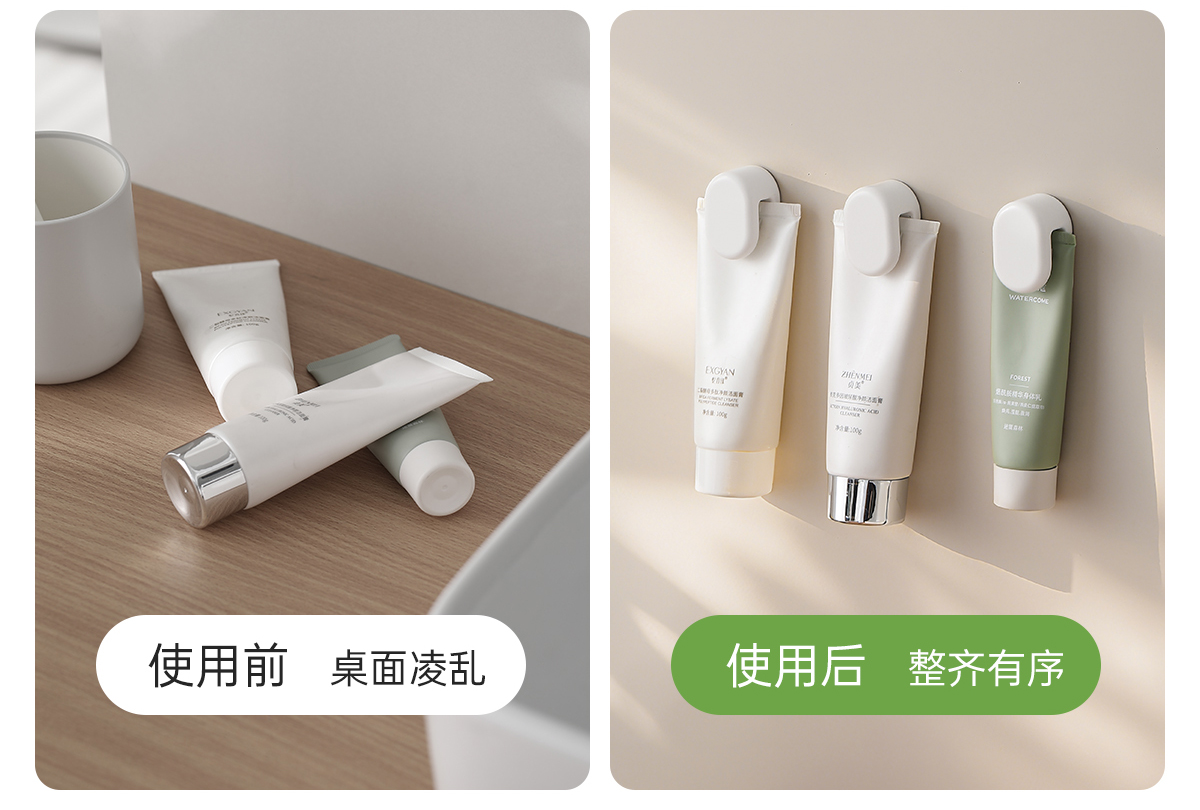 FaSoLa洗面奶夹子粘钩免打孔壁挂式挤牙膏神器浴室朝暮洁面夹
