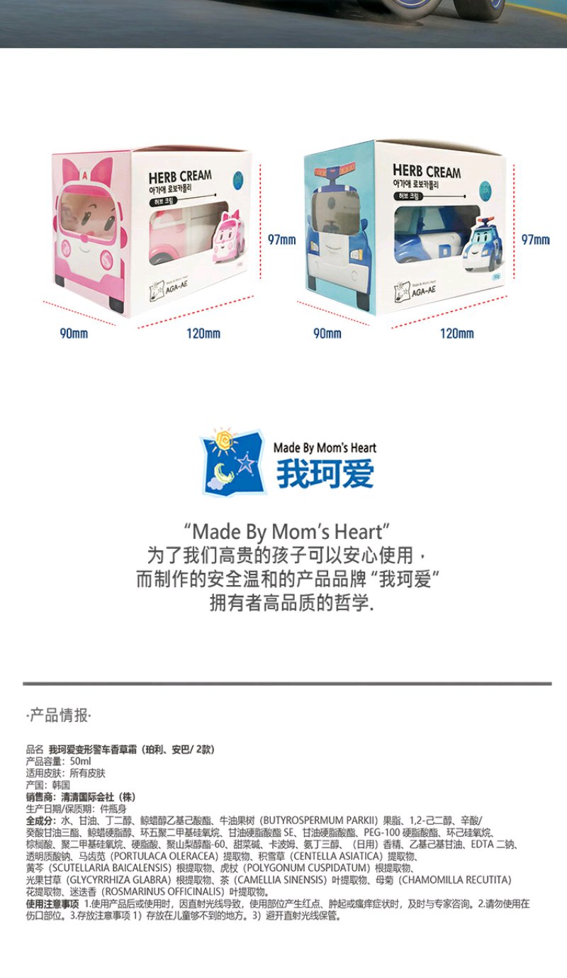 (超值)韩国POLI 我珂爱 小汽车儿童 宝宝 面霜 水蜜桃味 /香草味50g