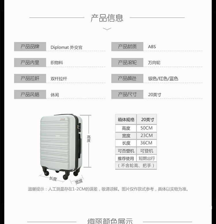 【下单前请备注颜色】外交官商务拉杆箱YH-6162