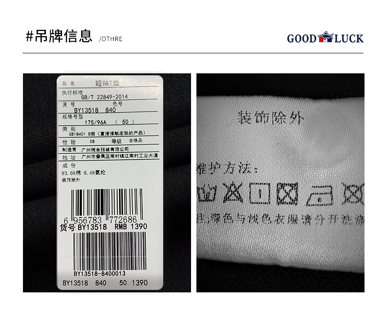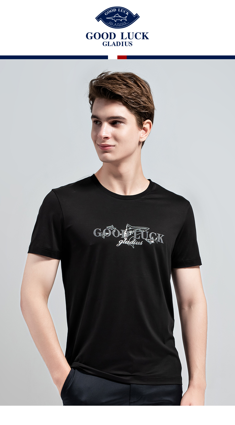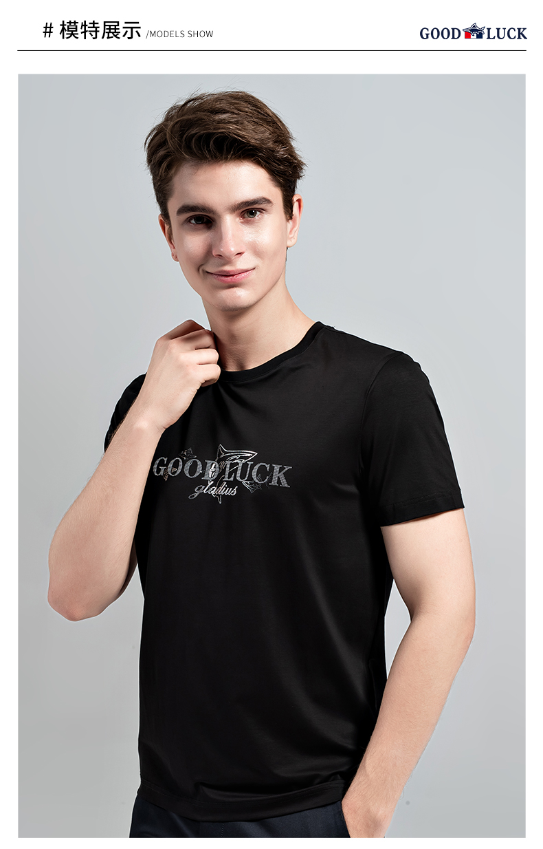 GOOD LUCK/德鲨棉质弹力舒适三色可选圆领短袖T恤BY13518