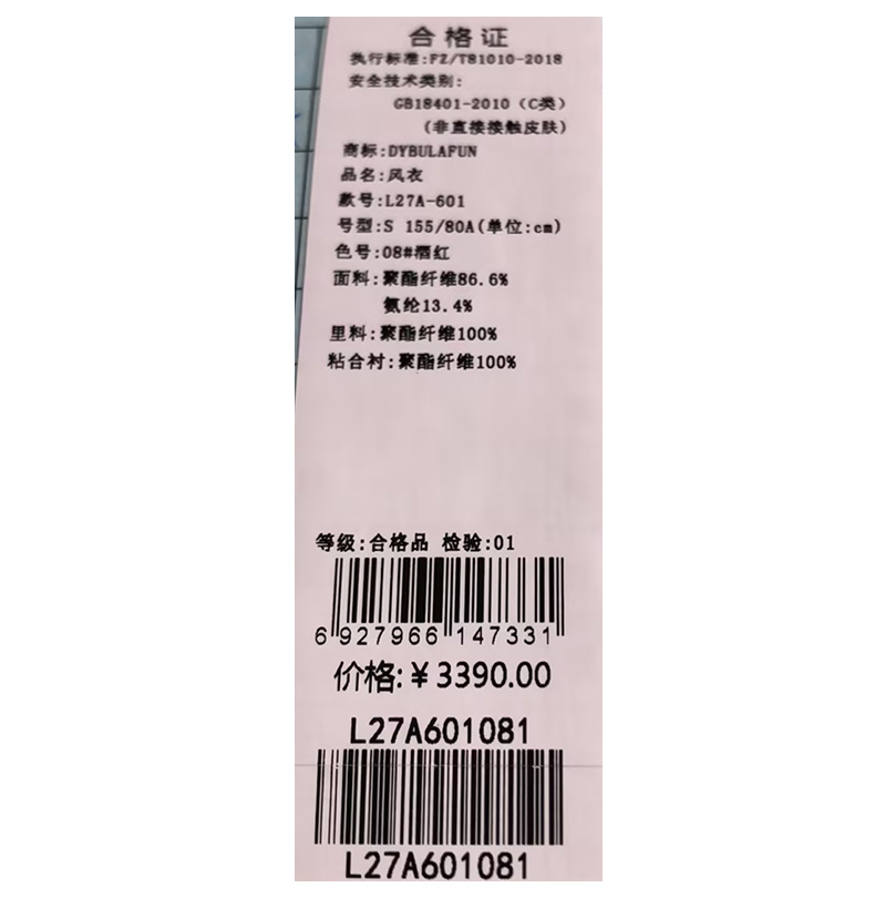 戴布拉芬风衣L27A601