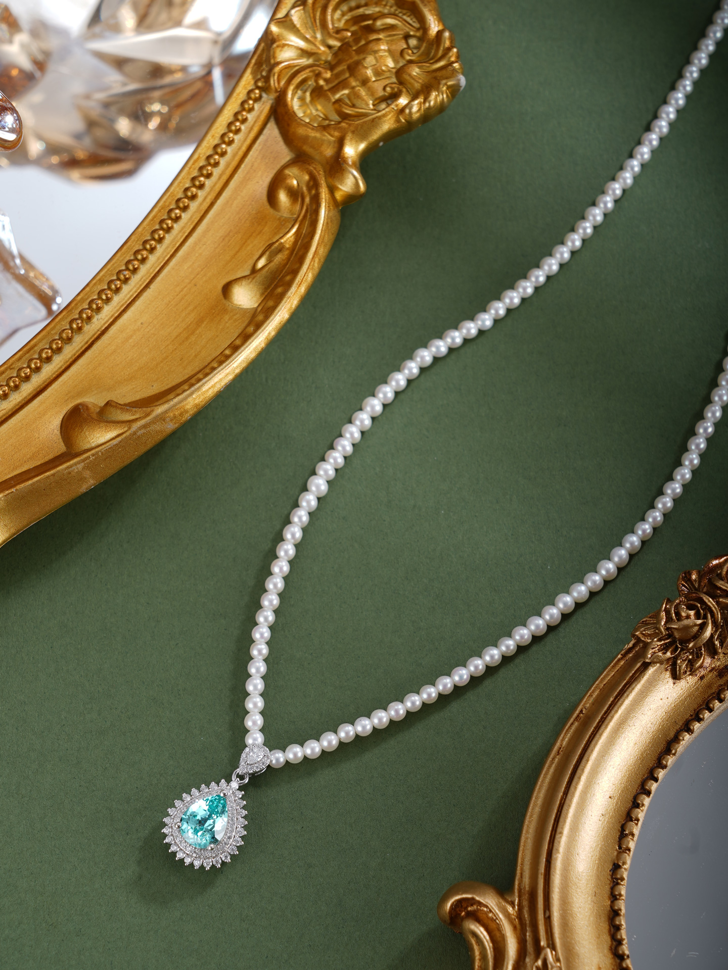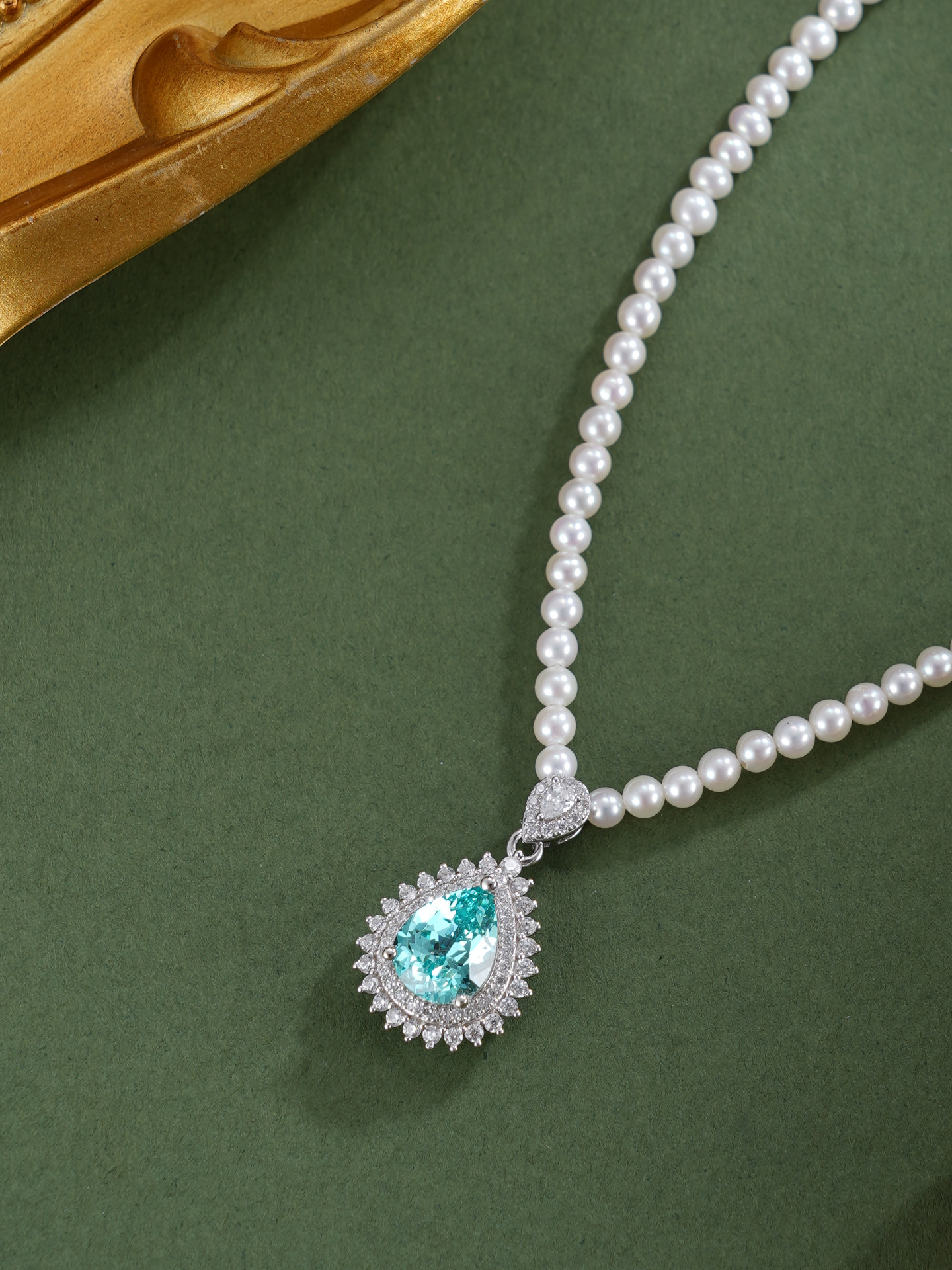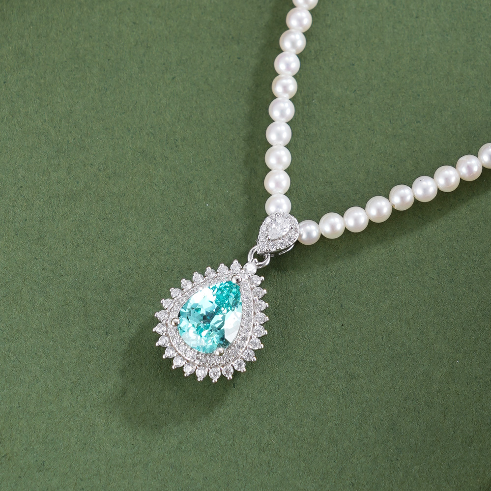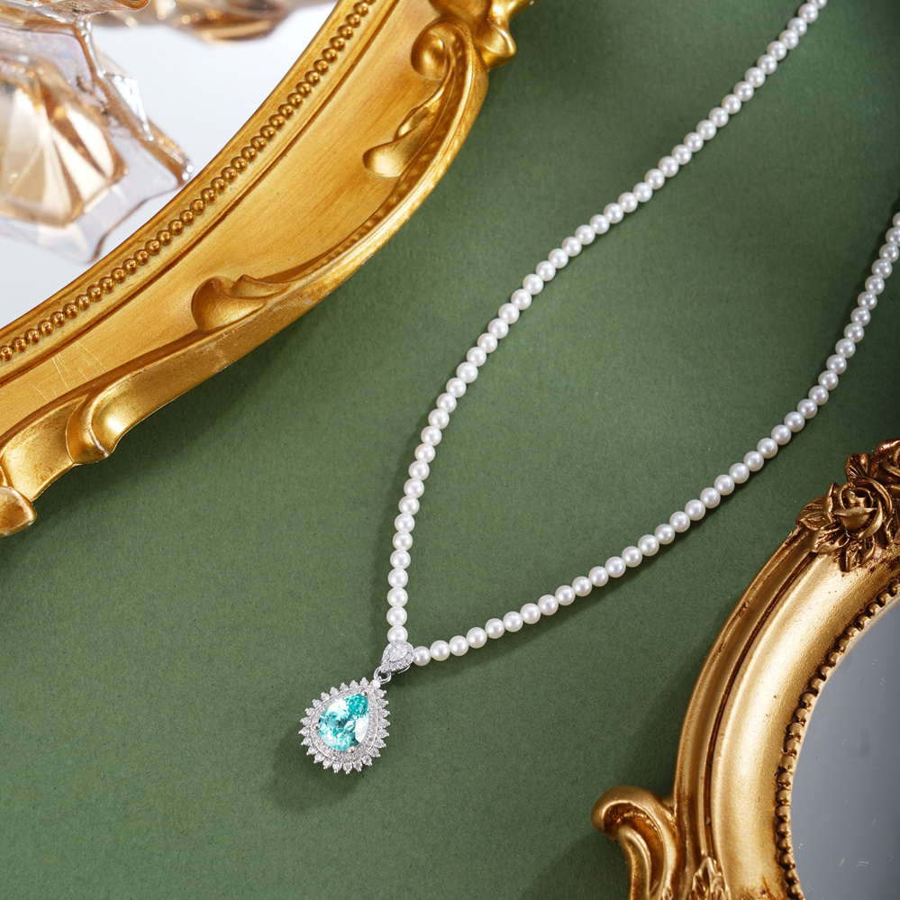 子佩集【璀璨蓝调】银S925珍珠惜王妃项链【ZZXL026】2.8mm珠蓝水滴2601