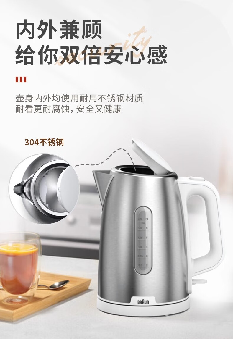 Braun博朗热水壶WK1500家用不锈钢电烧水壶小型便携式热水壶 1.7L