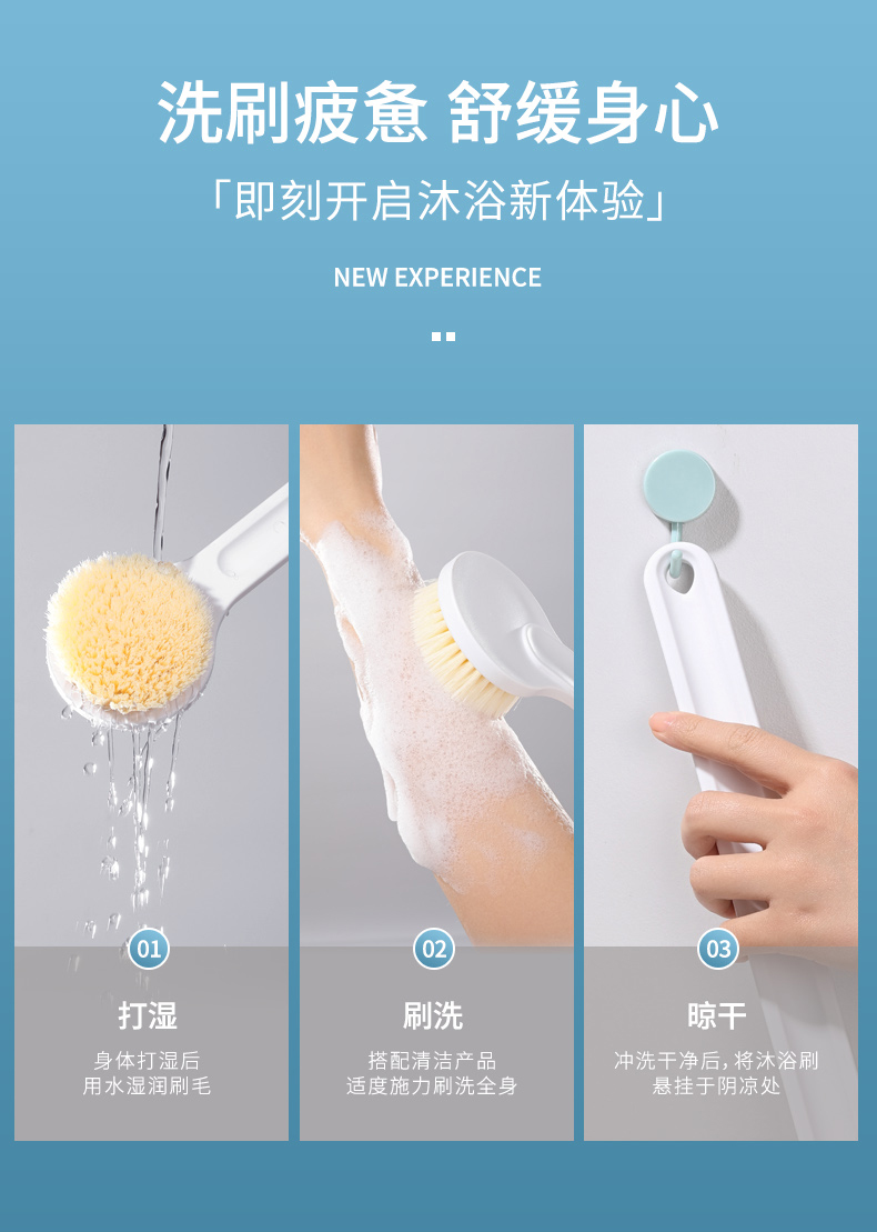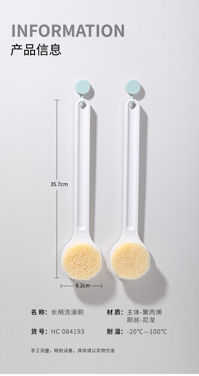 美丽雅搓背神器男女士轻松下泥 【36cm长柄】软毛洗澡刷