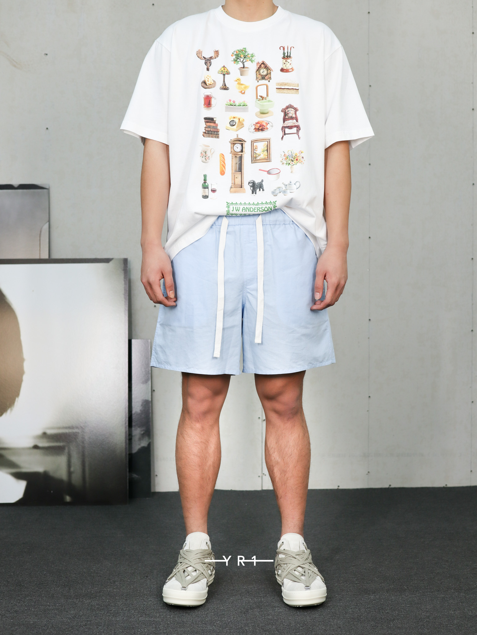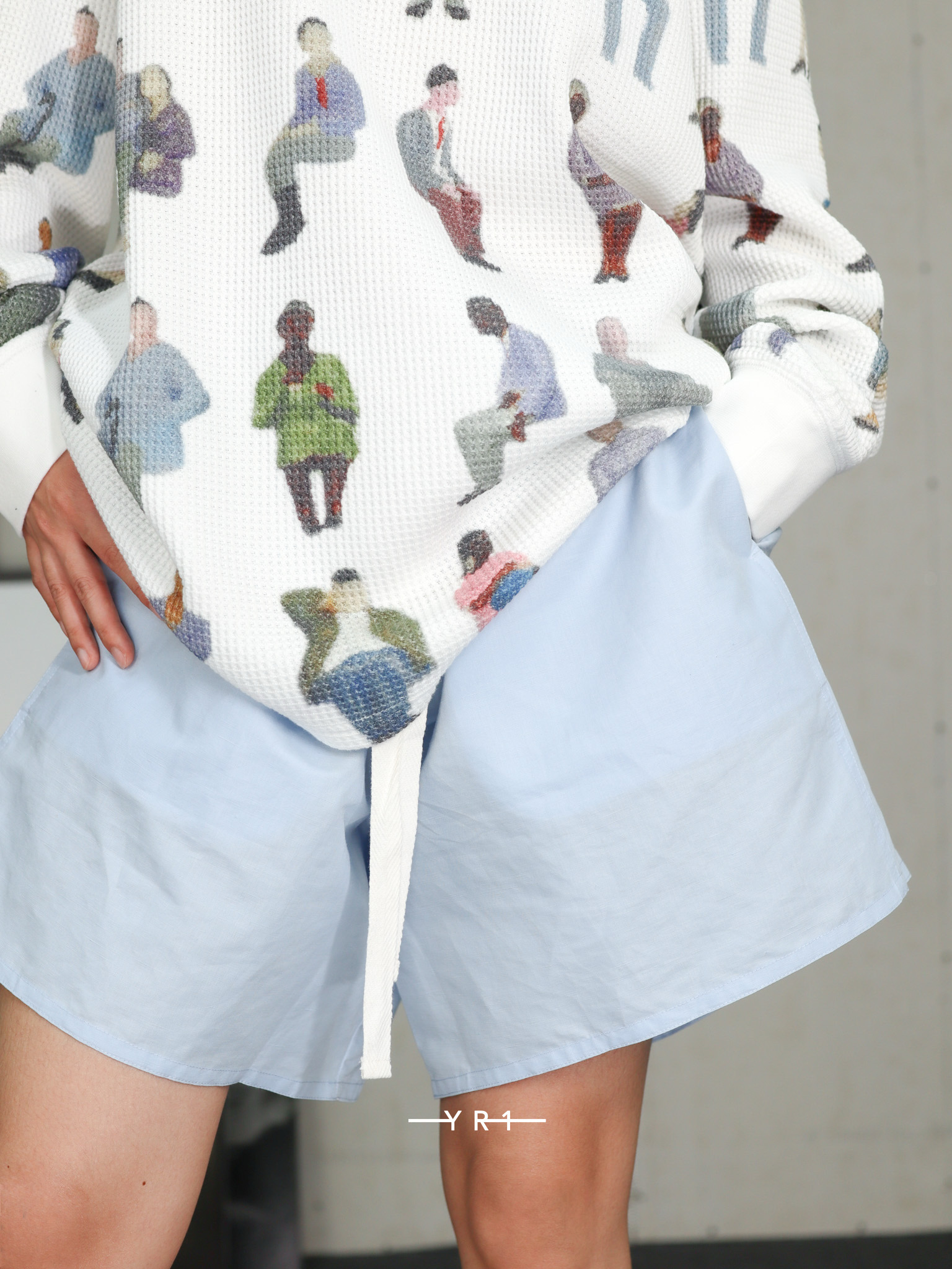 蓝色抽绳短裤