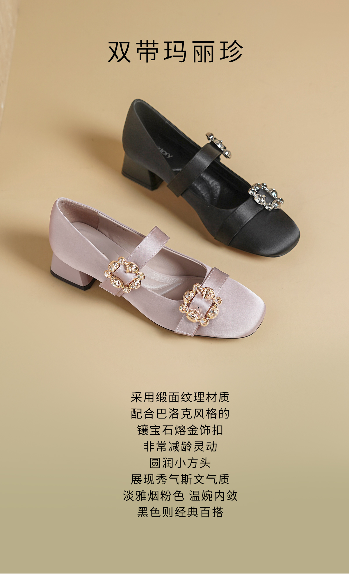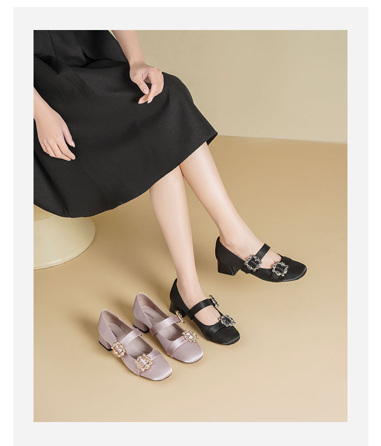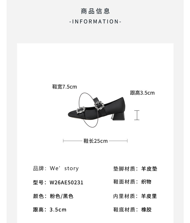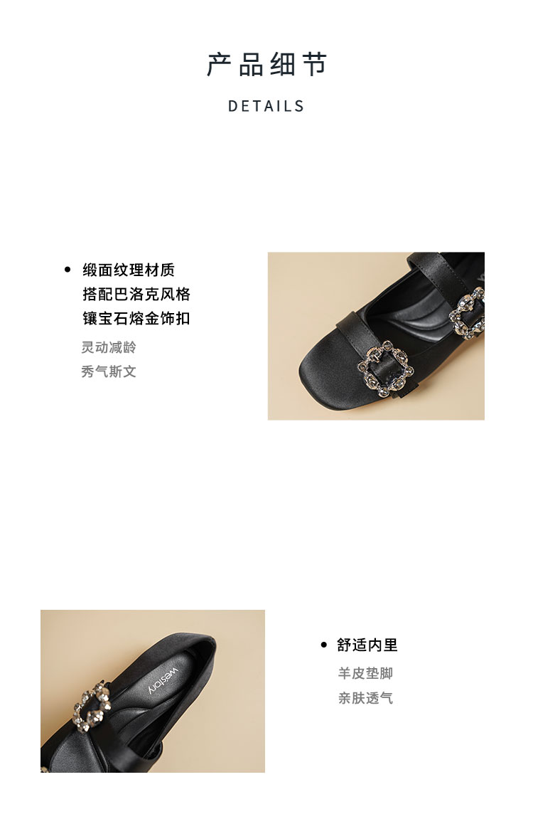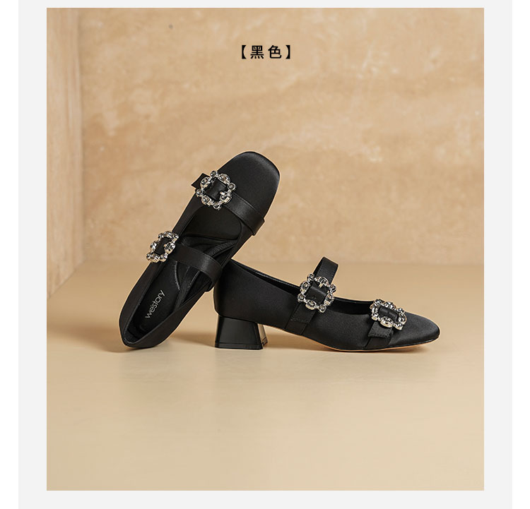 Westory2026年春季缎面低跟小方头双带玛丽珍鞋通勤百搭浅口单鞋W26AE50231