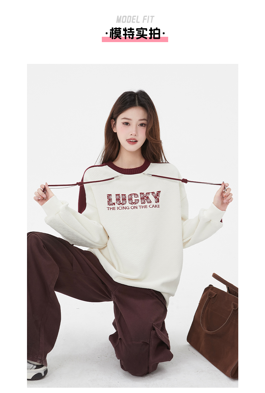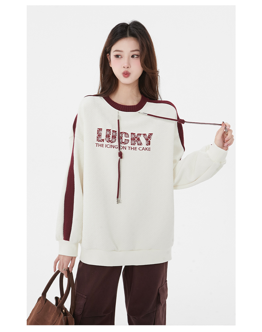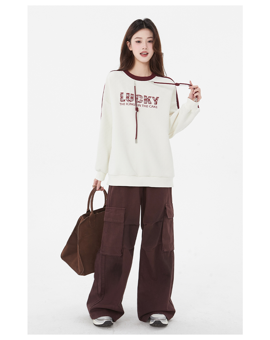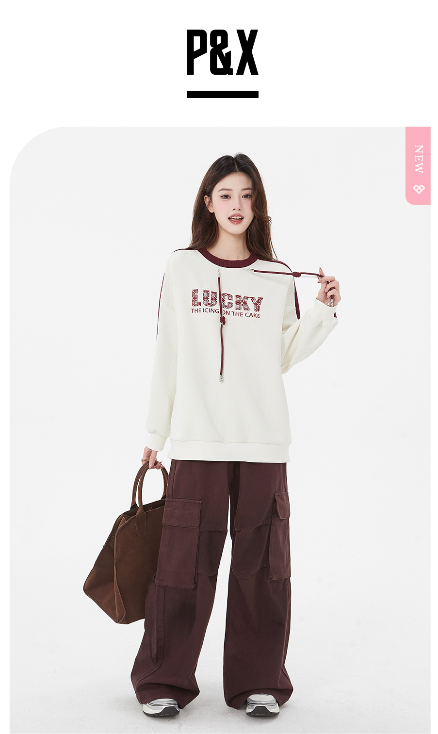 P&X设计师女装春季新款字母宽松百搭短款卫衣825117193 杏色