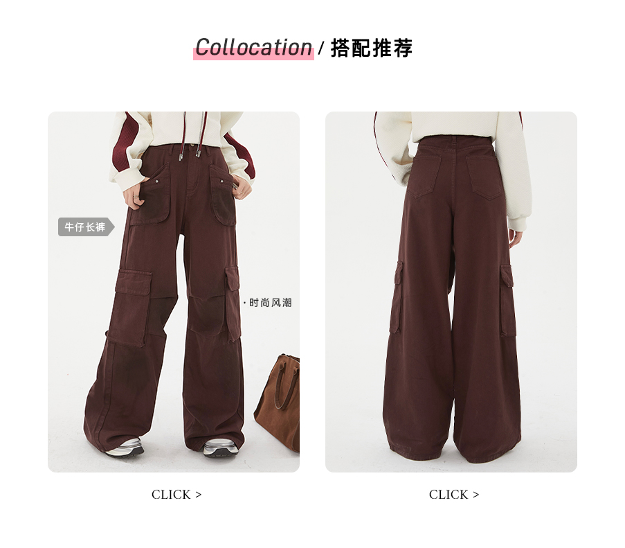P&X设计师女装2024冬季高腰阔腿牛仔裤女休闲百搭直筒长裤824410136 黑色