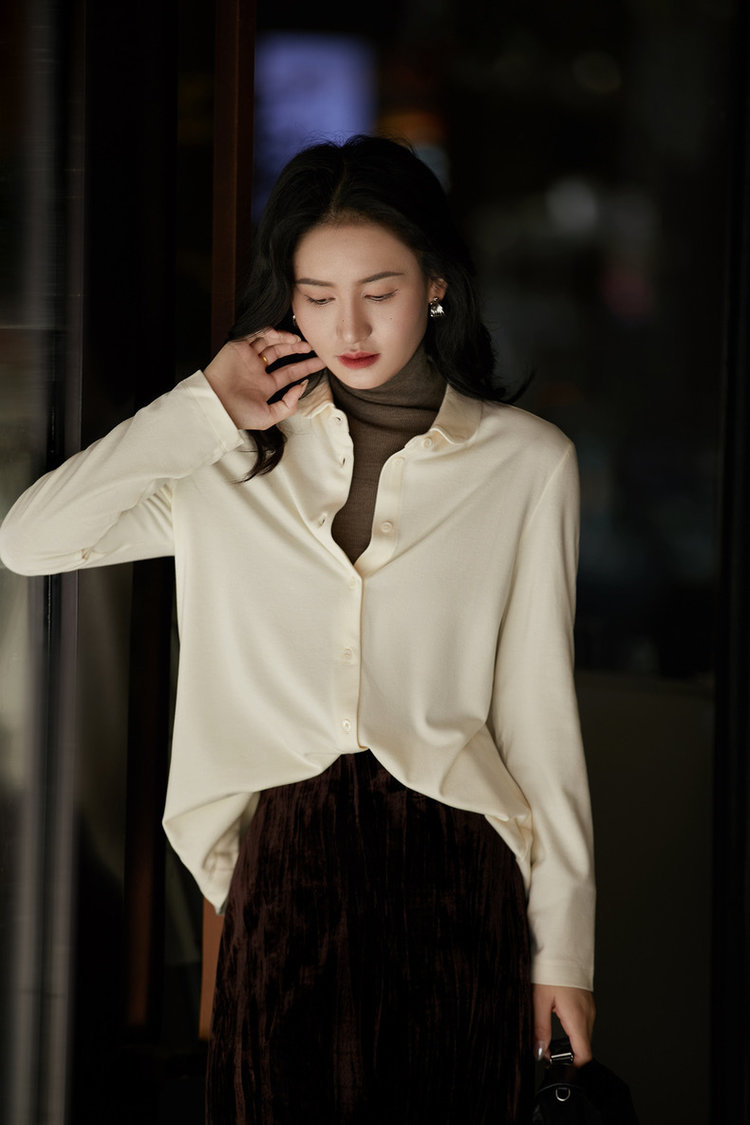 ORIGNAL&CO 元宝领磨毛衬衫 280g加厚双面德绒,黑科技暖绒面料,高弹保暖亲肤防静电;绒感均匀,细腻滑糯,可单穿内搭也可敞当外套