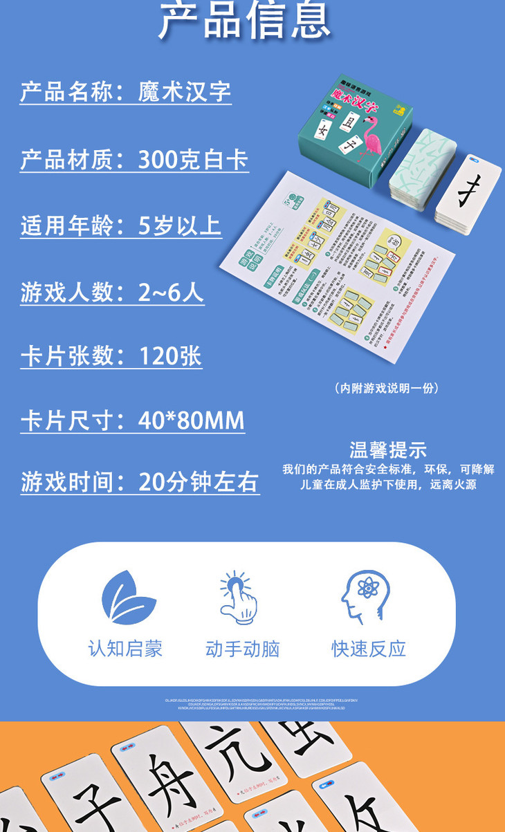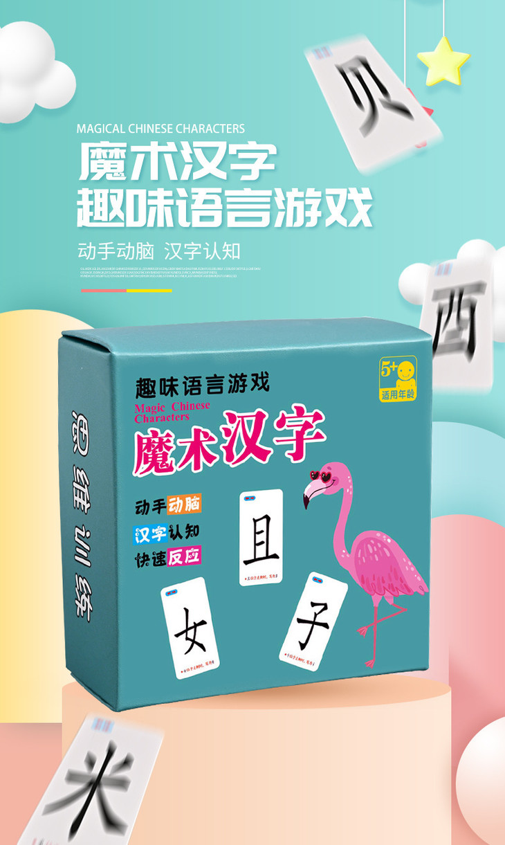 儿童魔法汉字偏旁部首组合卡片益智力配对拼图启蒙早教识字玩具