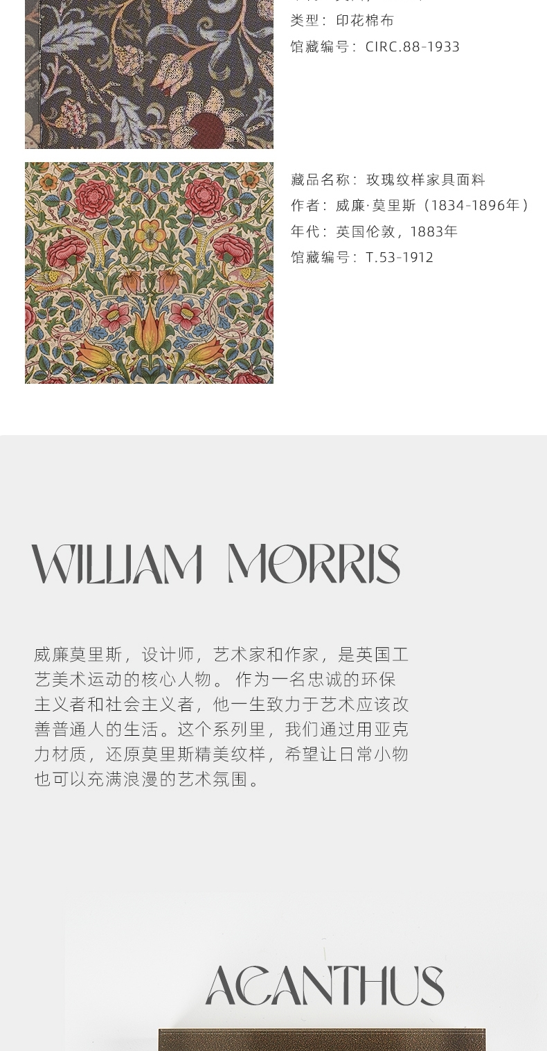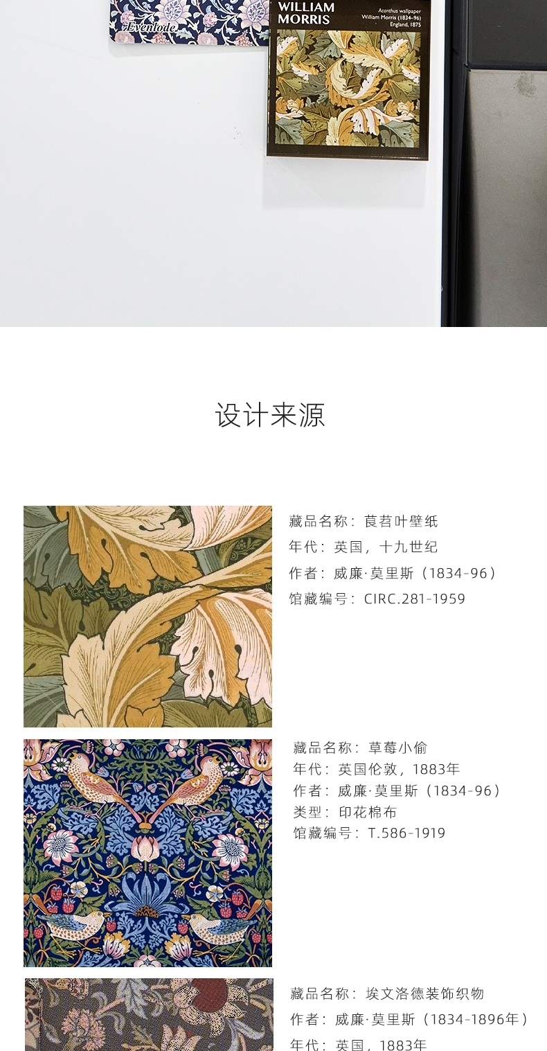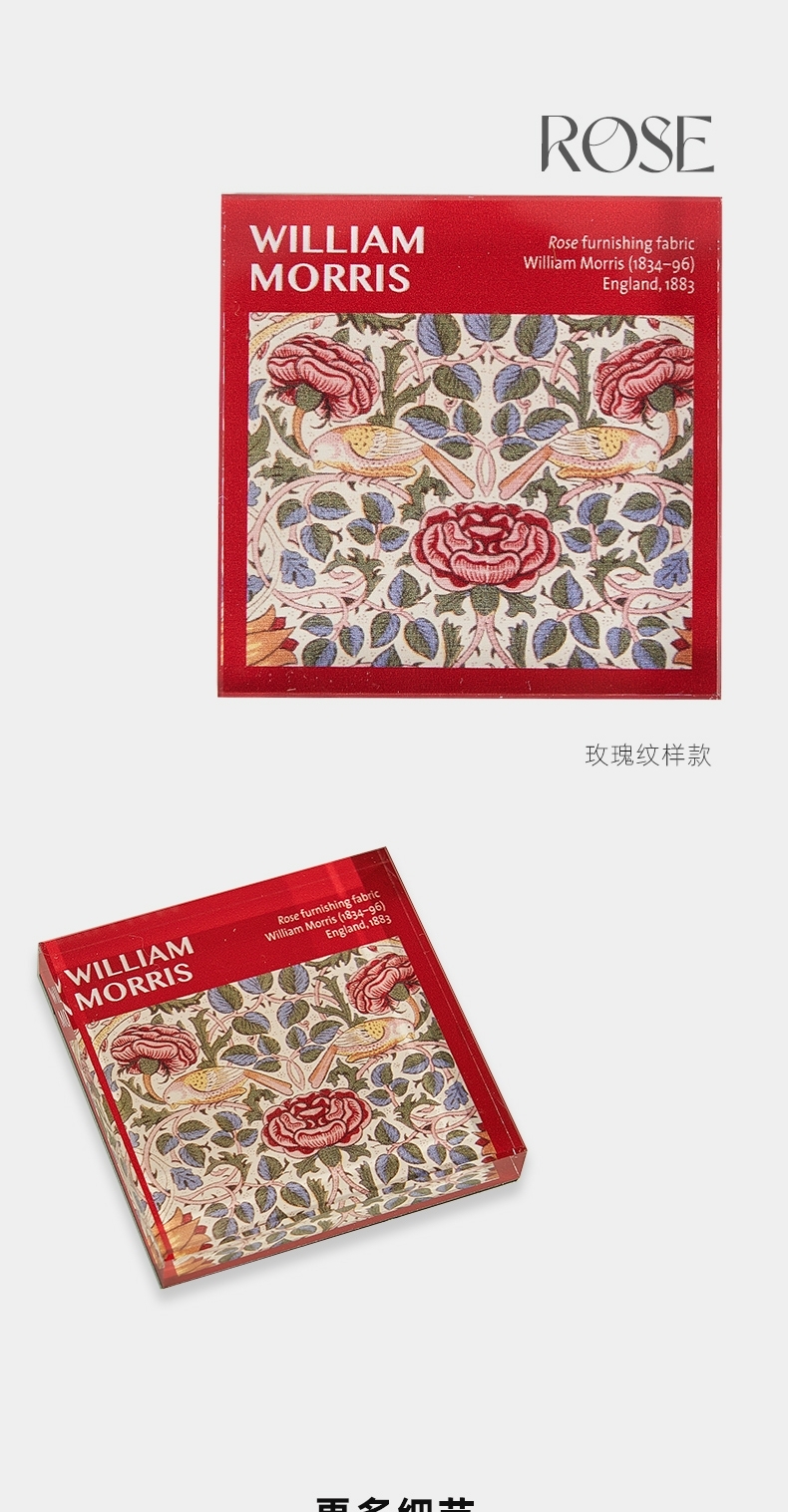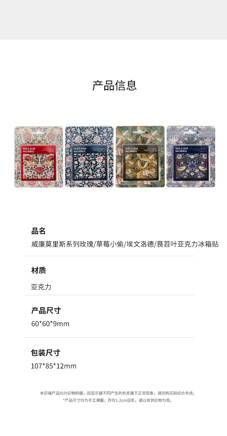 V&A博物馆威廉莫里斯系列 玫瑰 草莓小偷 苕茛叶 埃文洛德亚克力冰箱贴