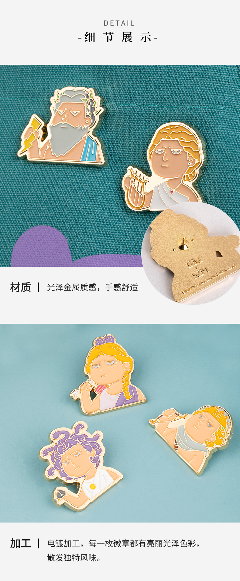 罗马卡通众神系列金属徽章