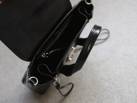 翻盖式包口 黑色布衬 内无隔断 有个拉链口袋 斜跨背带 可拆卸 长度可调节