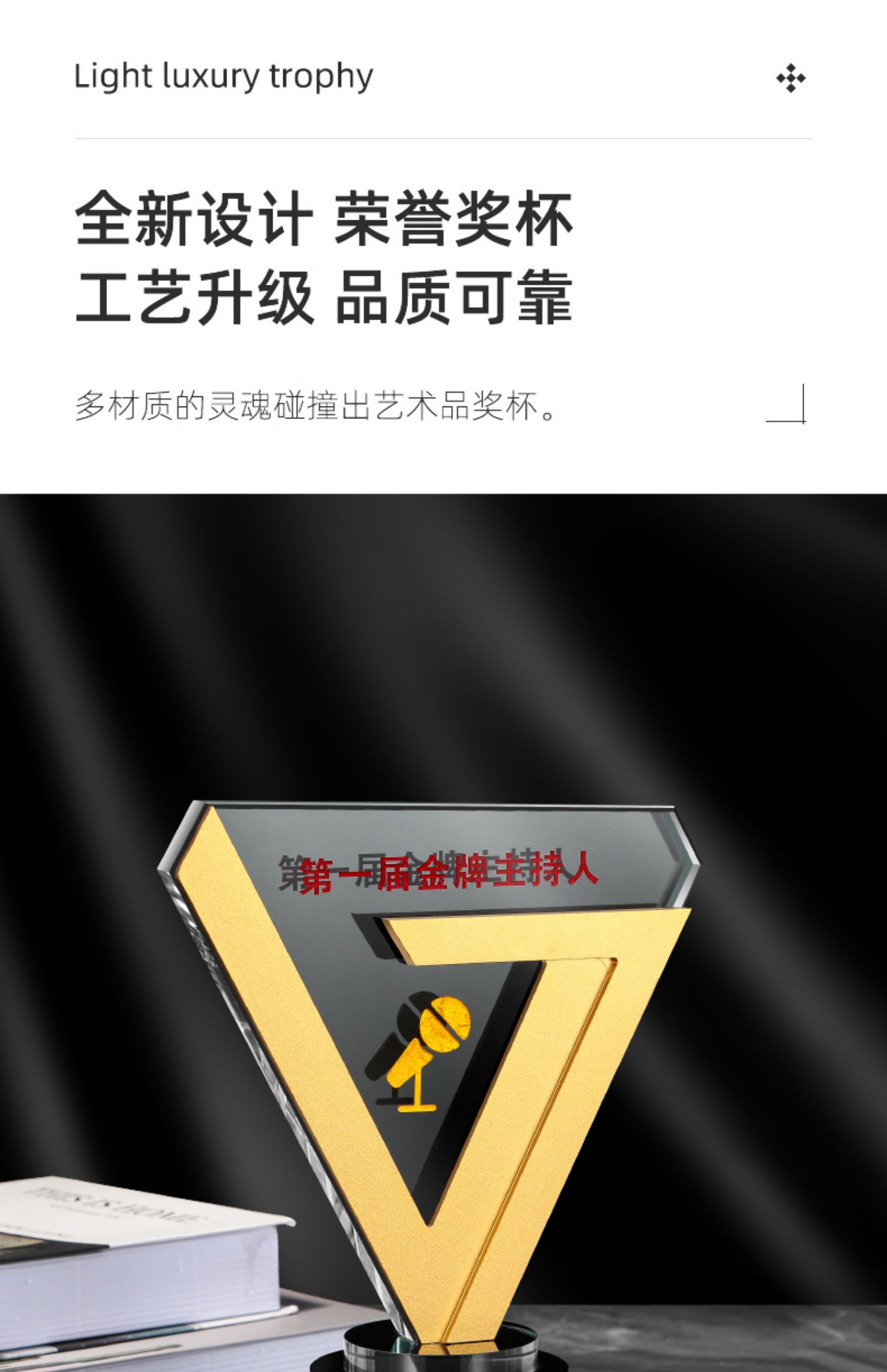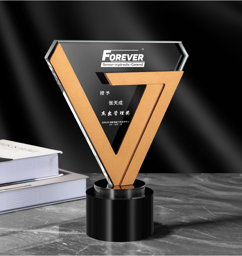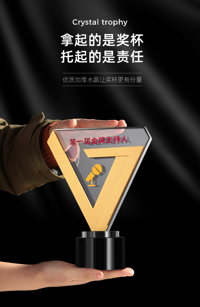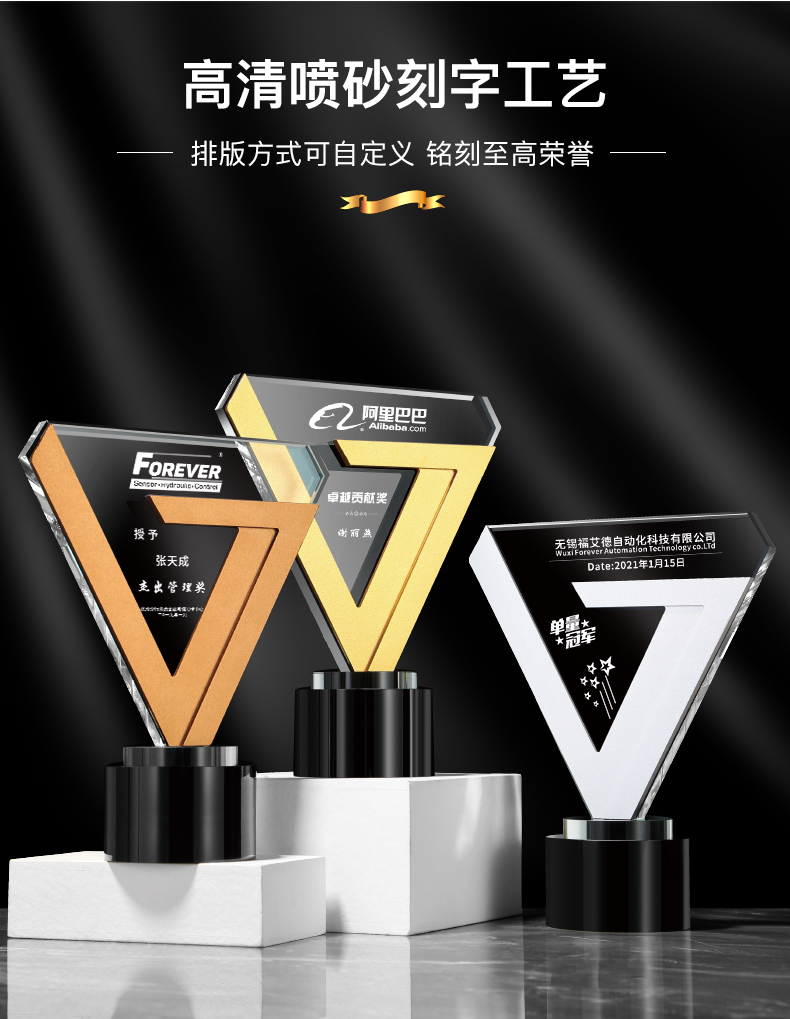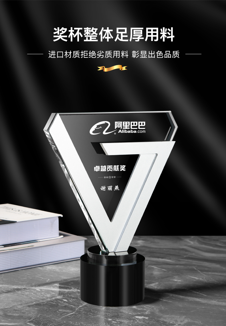 水晶奖杯定制创意金属三角高档大气授权牌年会优秀员工奖牌定做