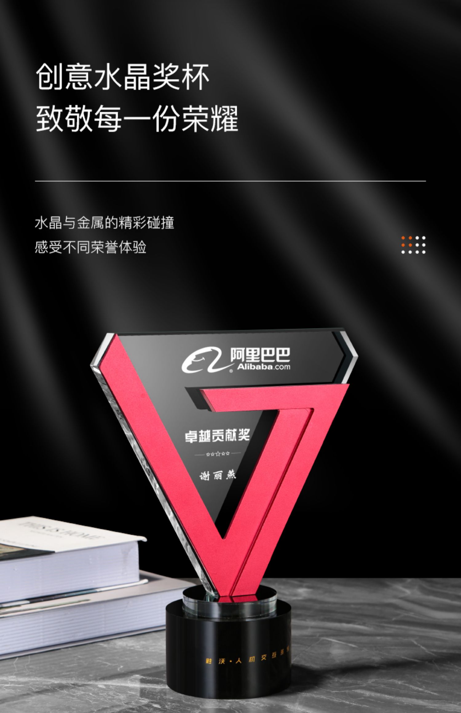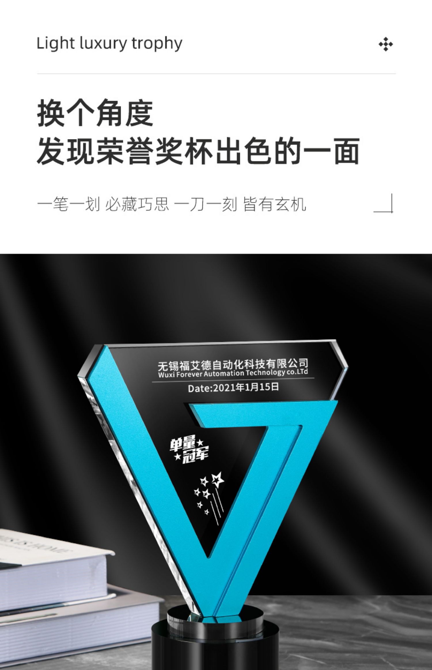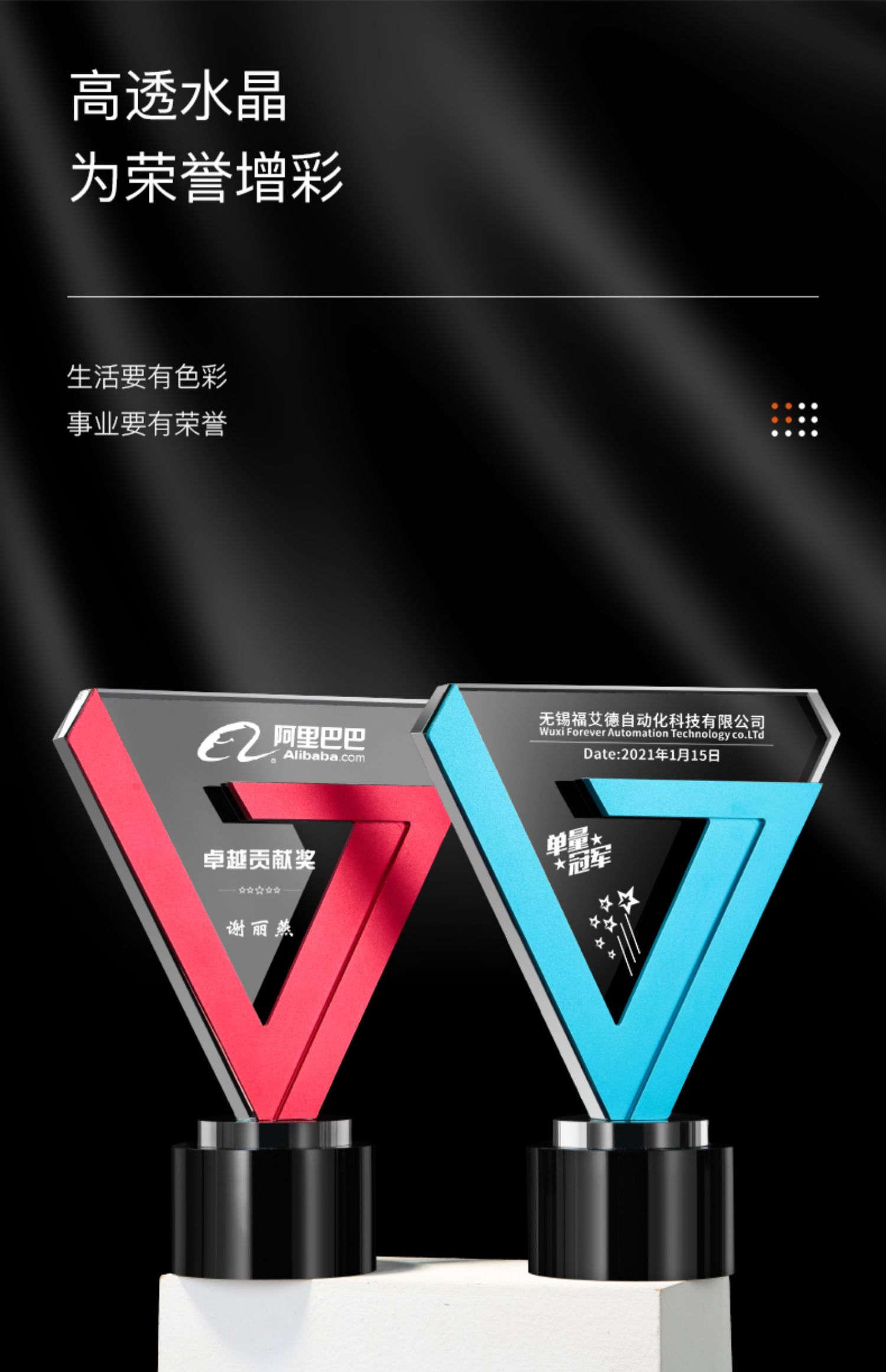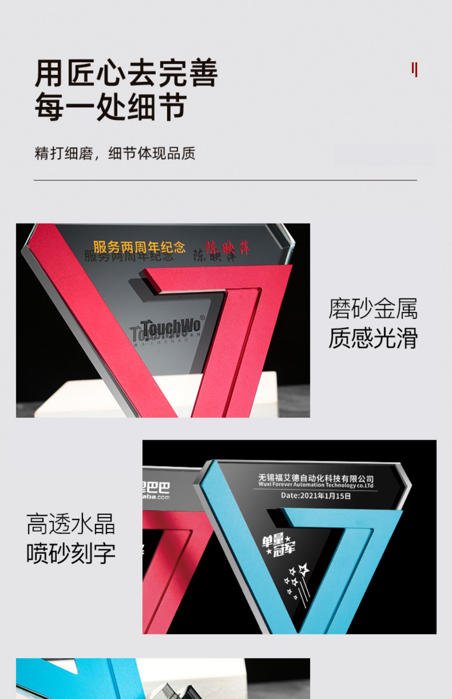 水晶奖杯定制创意金属三角高档大气授权牌年会优秀员工奖牌定做