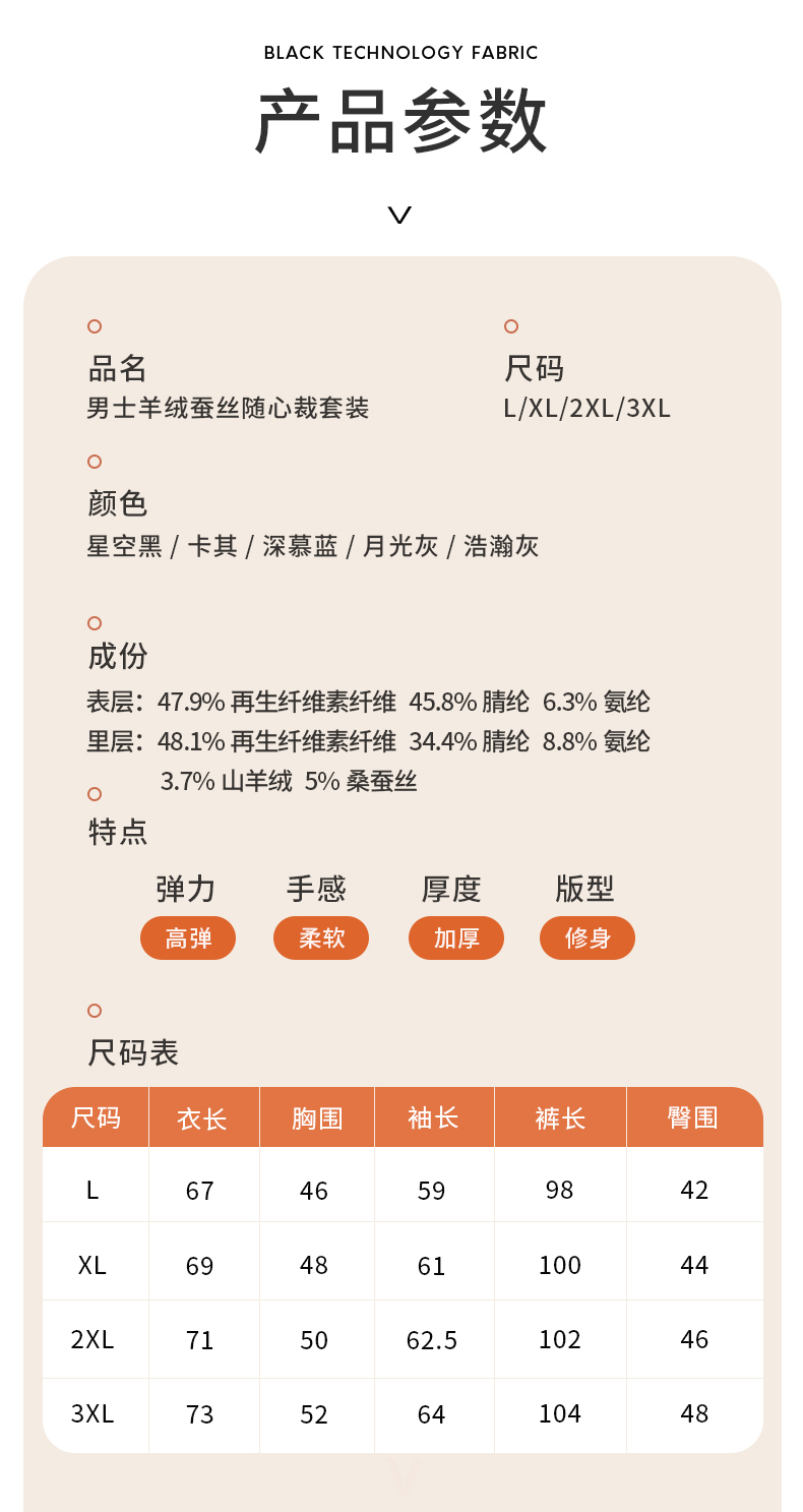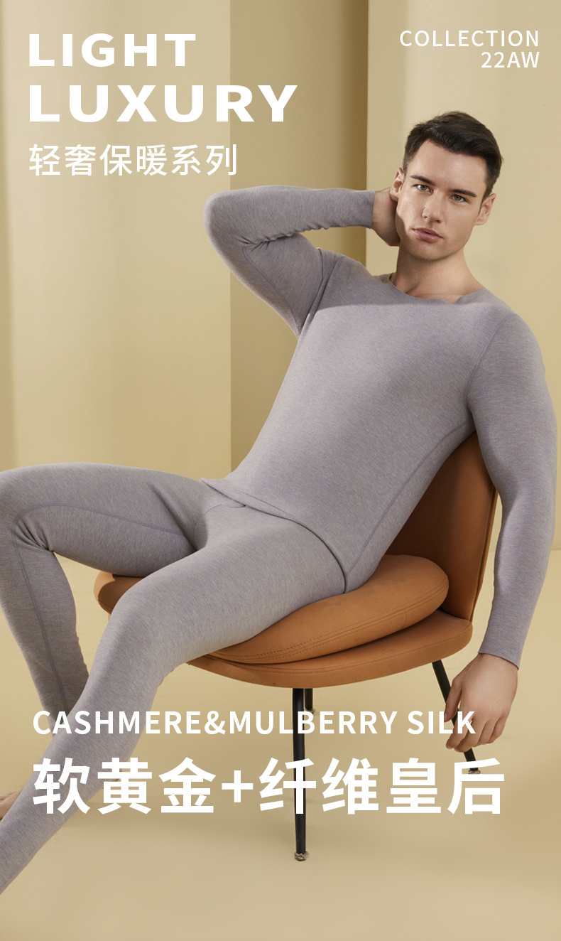 【代发】MUBENMI木本木米秋冬款男士羊绒蚕丝保暖内衣保暖衣