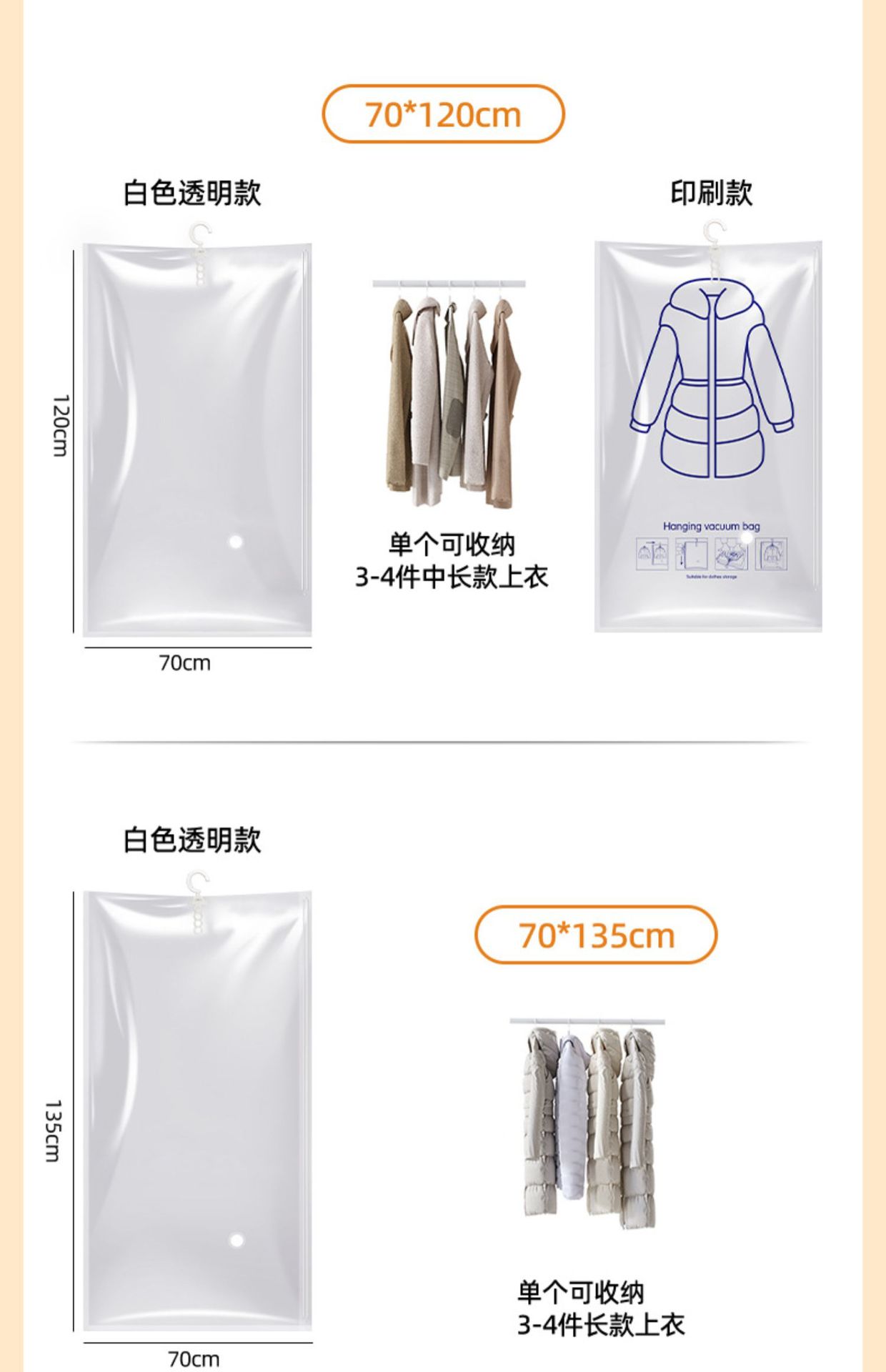 【真空挂式压缩袋】防灰罩加厚羽绒服衣服衣物行李箱抽空气袋子收纳袋。ry