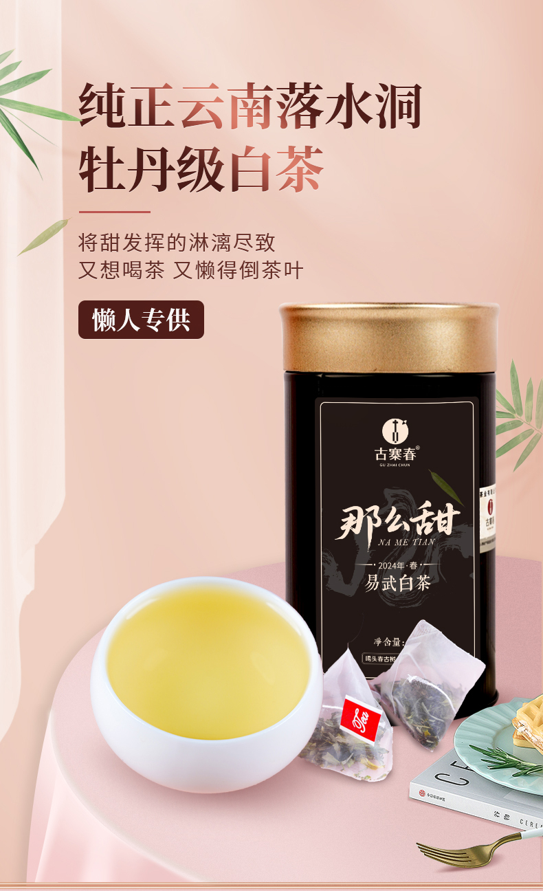 【那么甜】2024年易武落水洞,云南白茶,牡丹级,袋泡茶,一袋一泡简单高效方便,周年庆福利价回馈。60克/罐,约25袋左右/罐