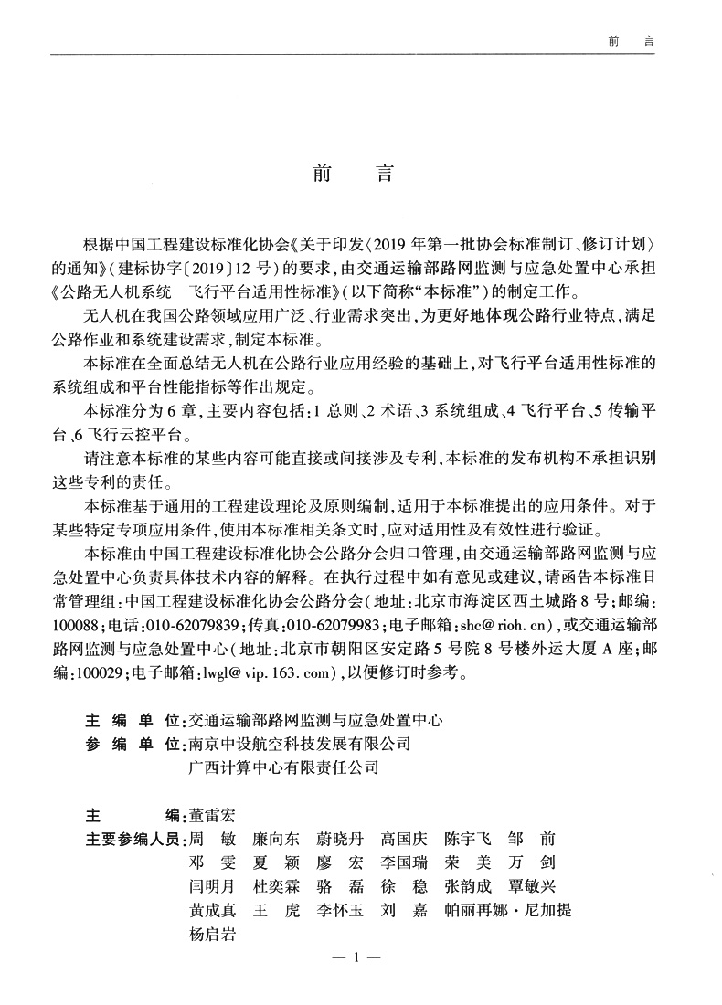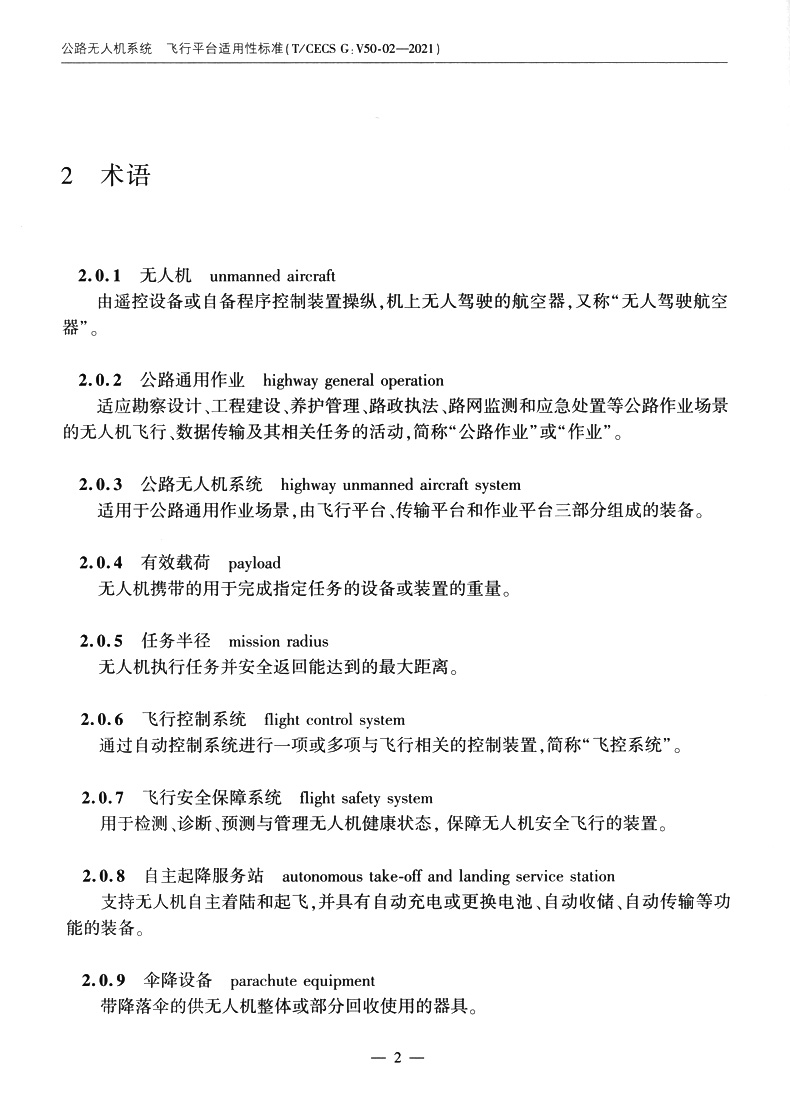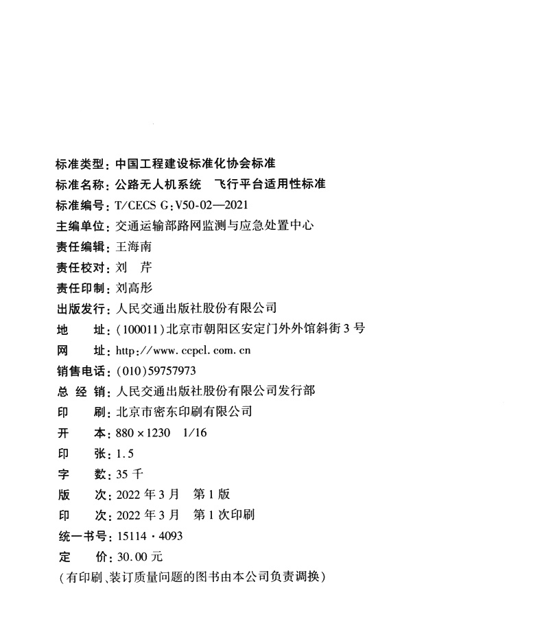 书名:公路无人机系统 飞行平台适用性标准(T/CECS G:V50-02—2021)