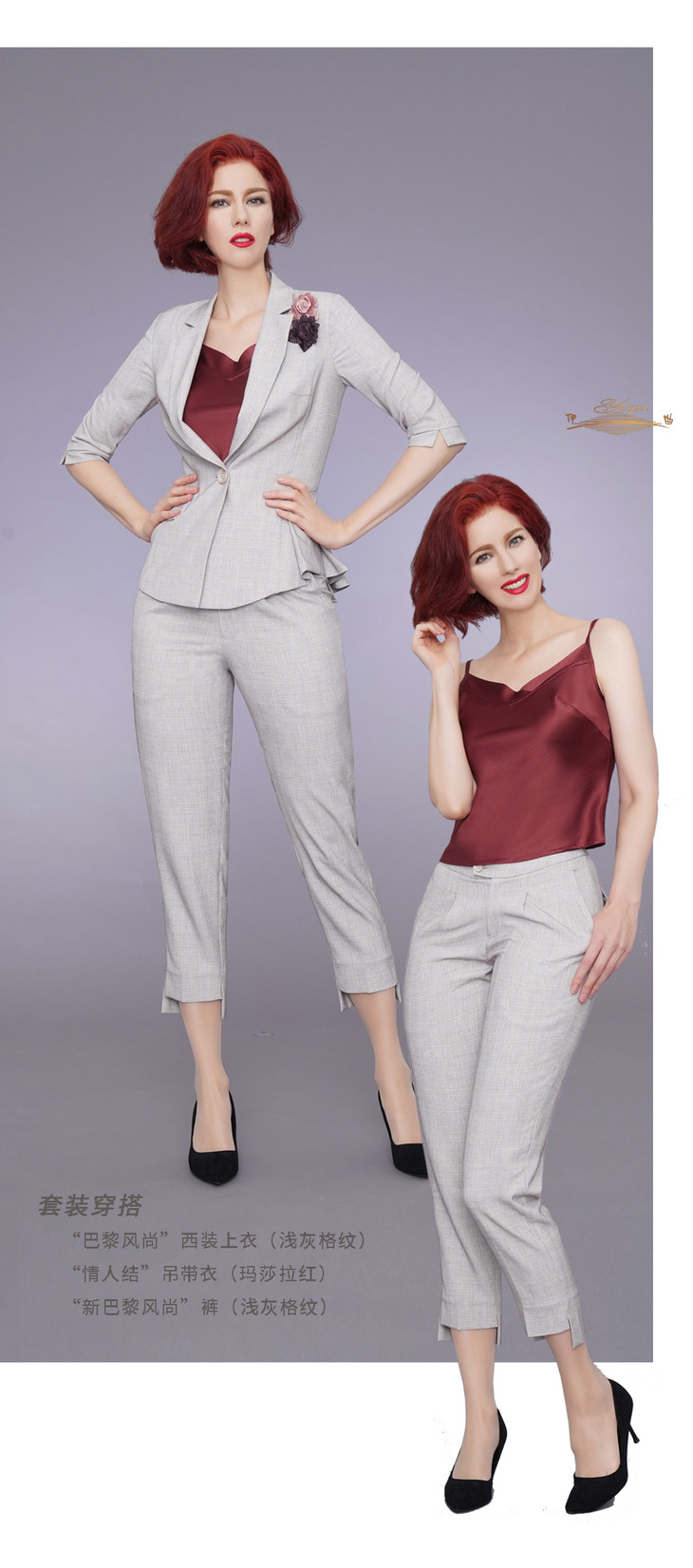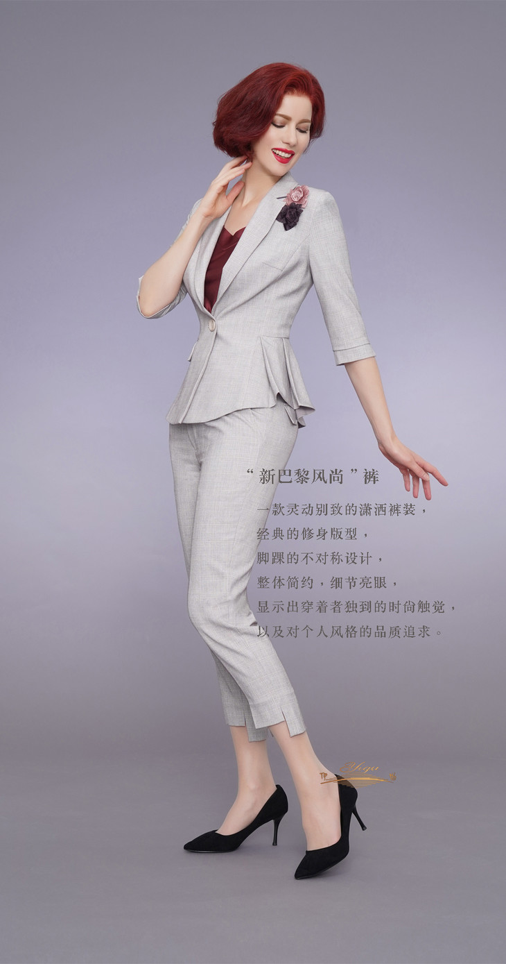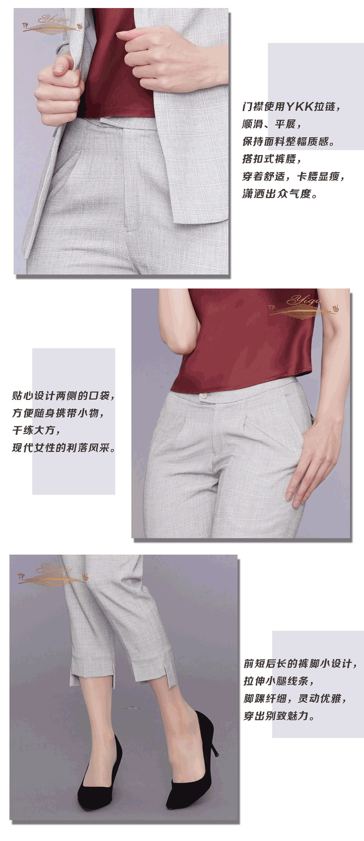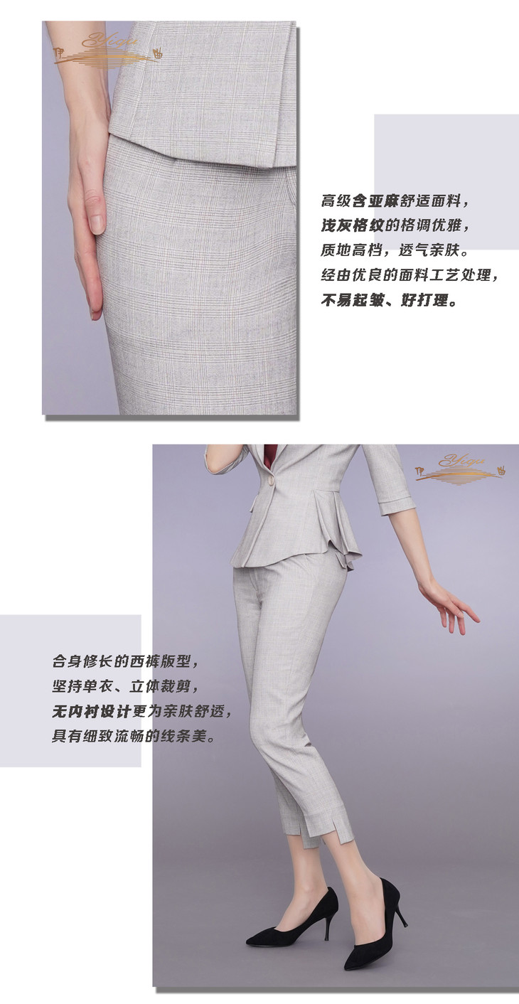 YIQU|“新巴黎风尚”长裤(浅灰格纹)P