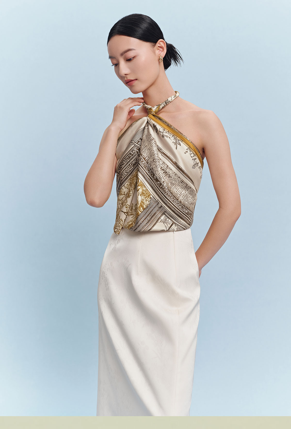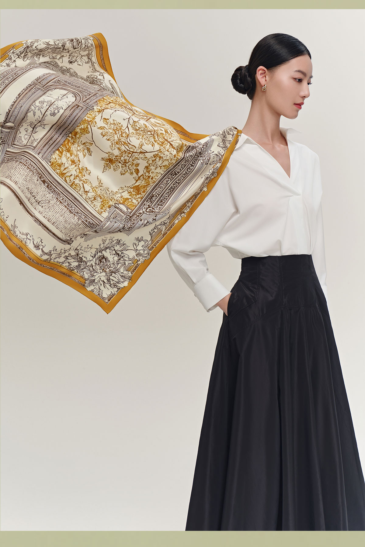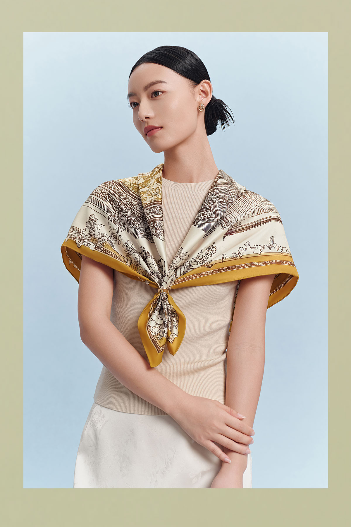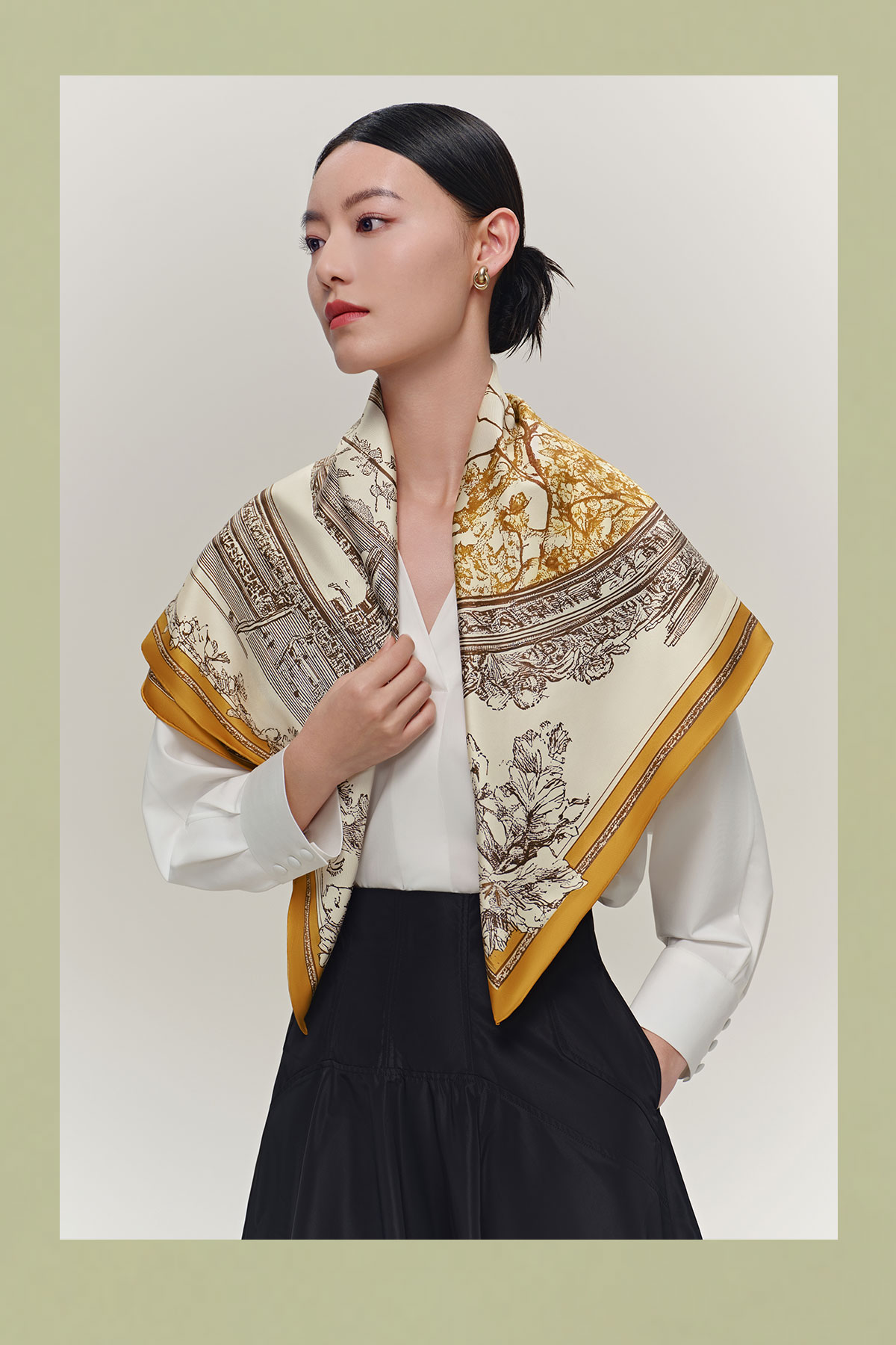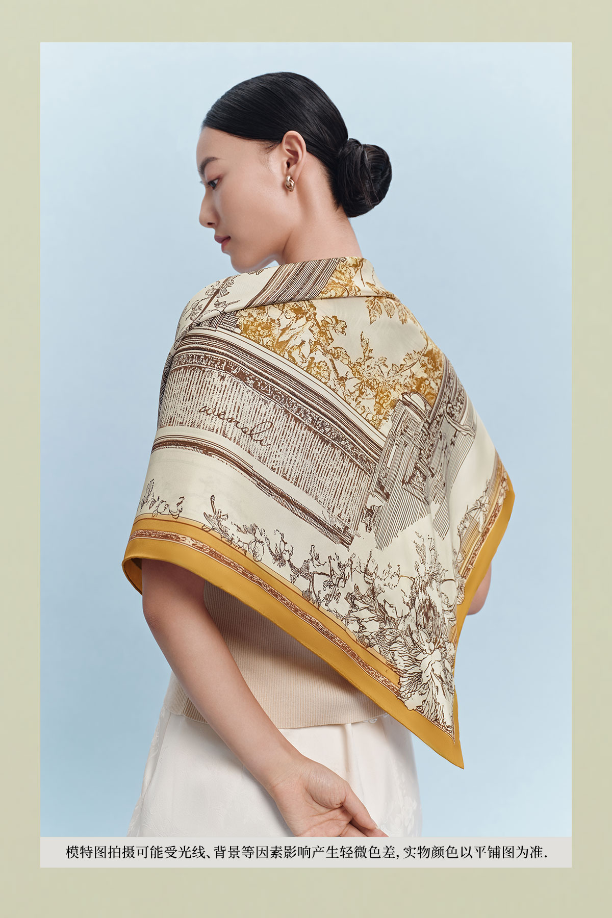 万事利丝绸 X总台文创联名方巾-玉兰赋·颂福