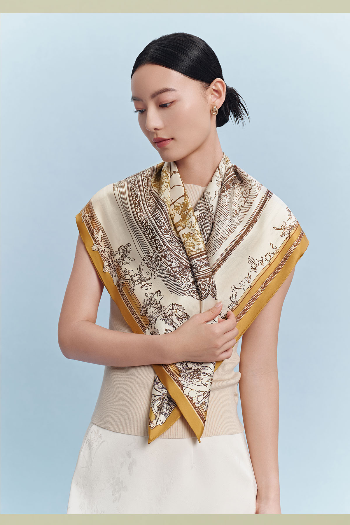 万事利“欢乐颂”51厘米双面印花真丝小方巾