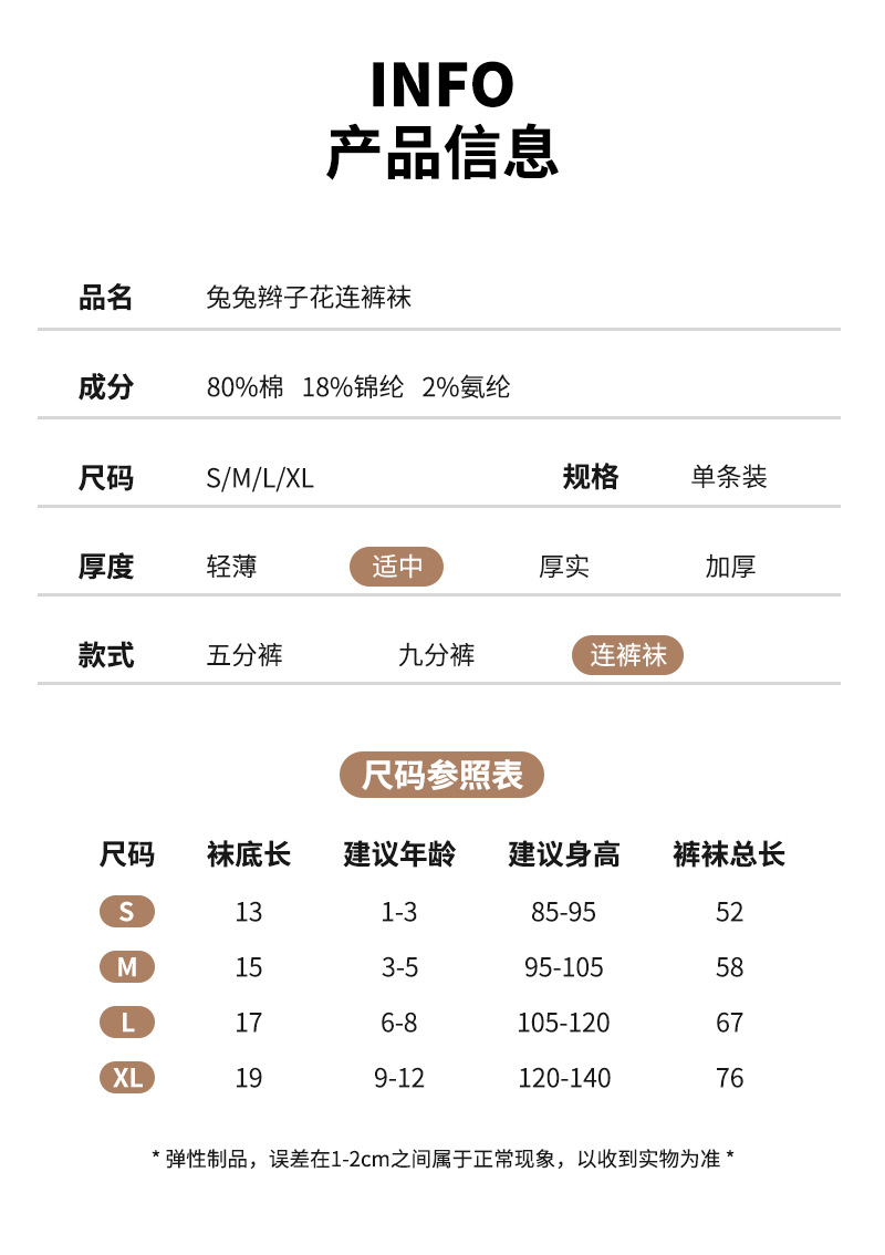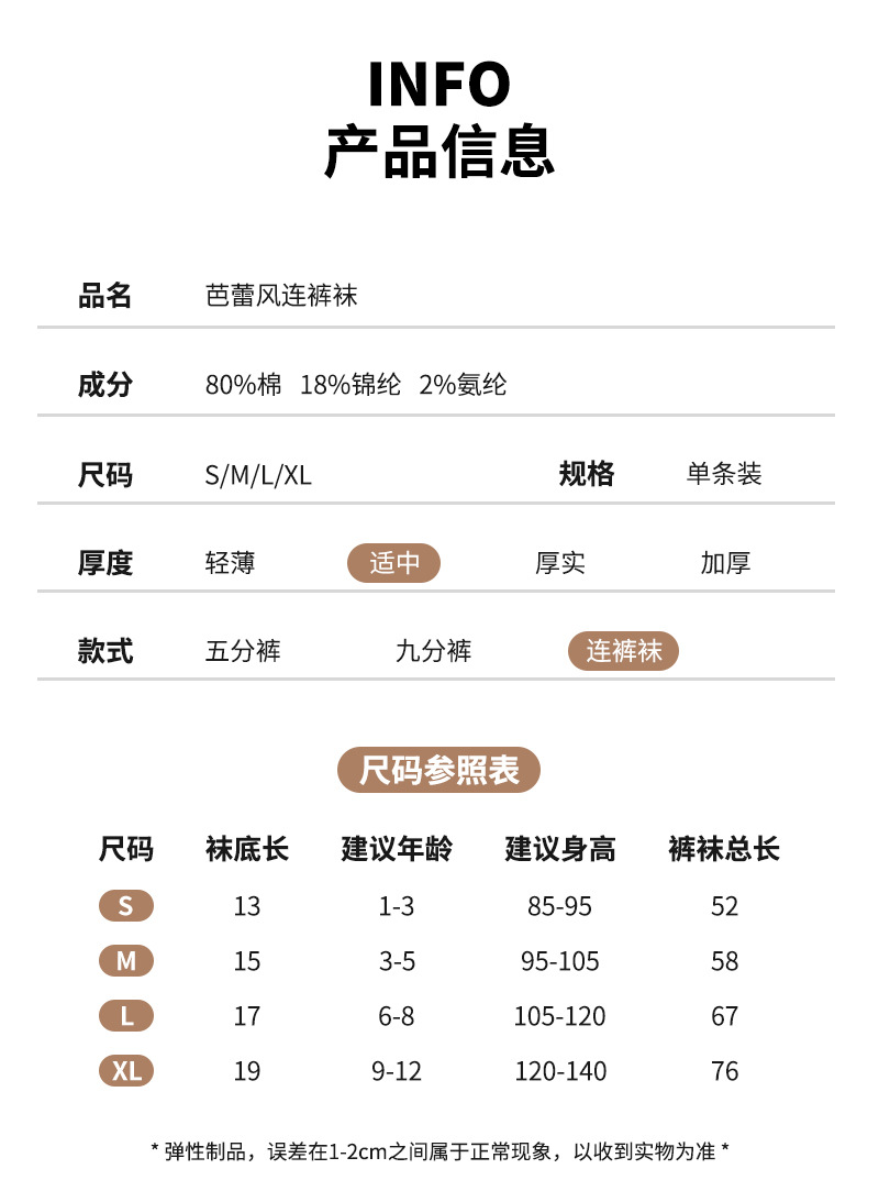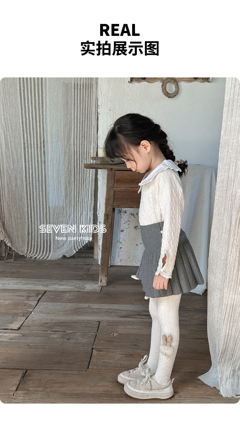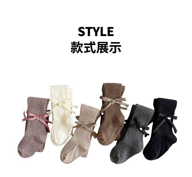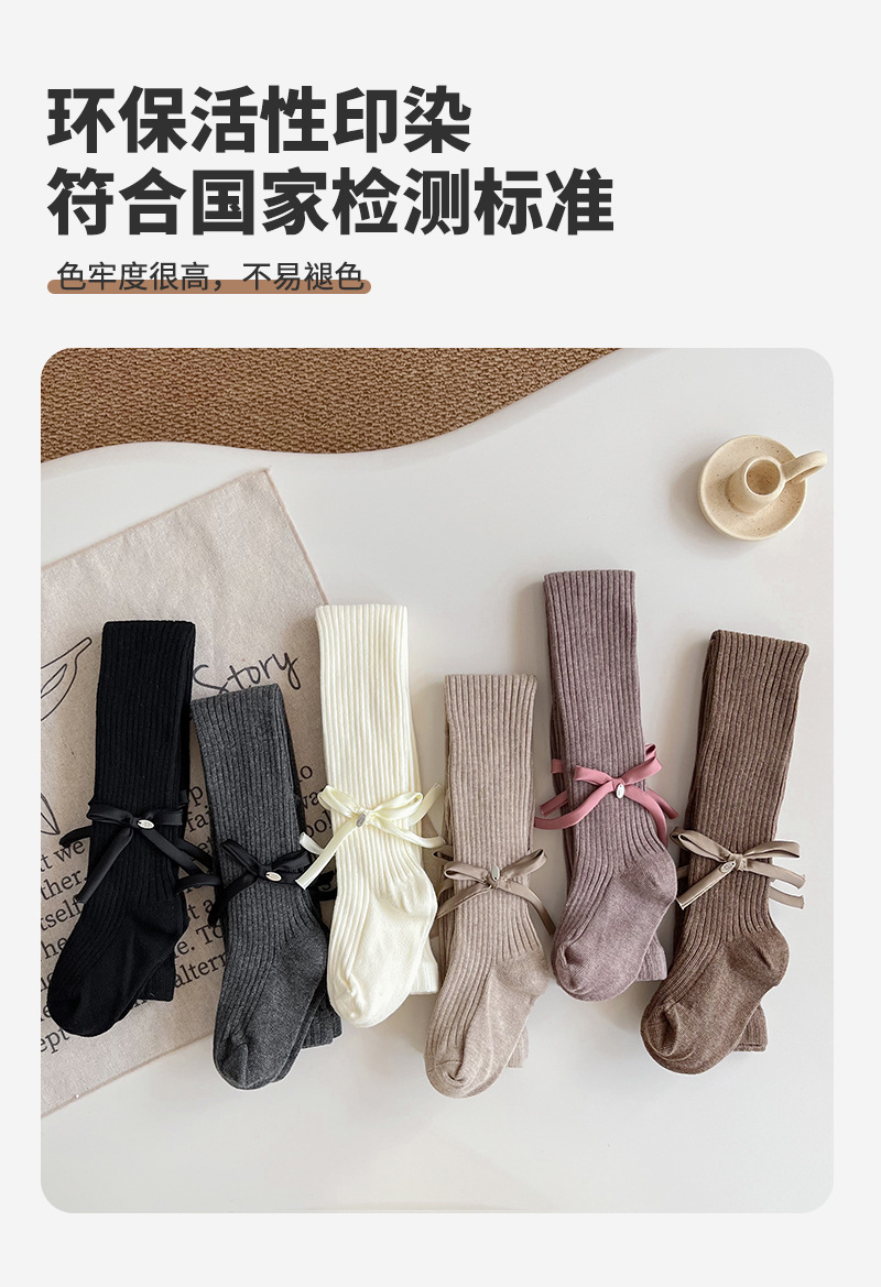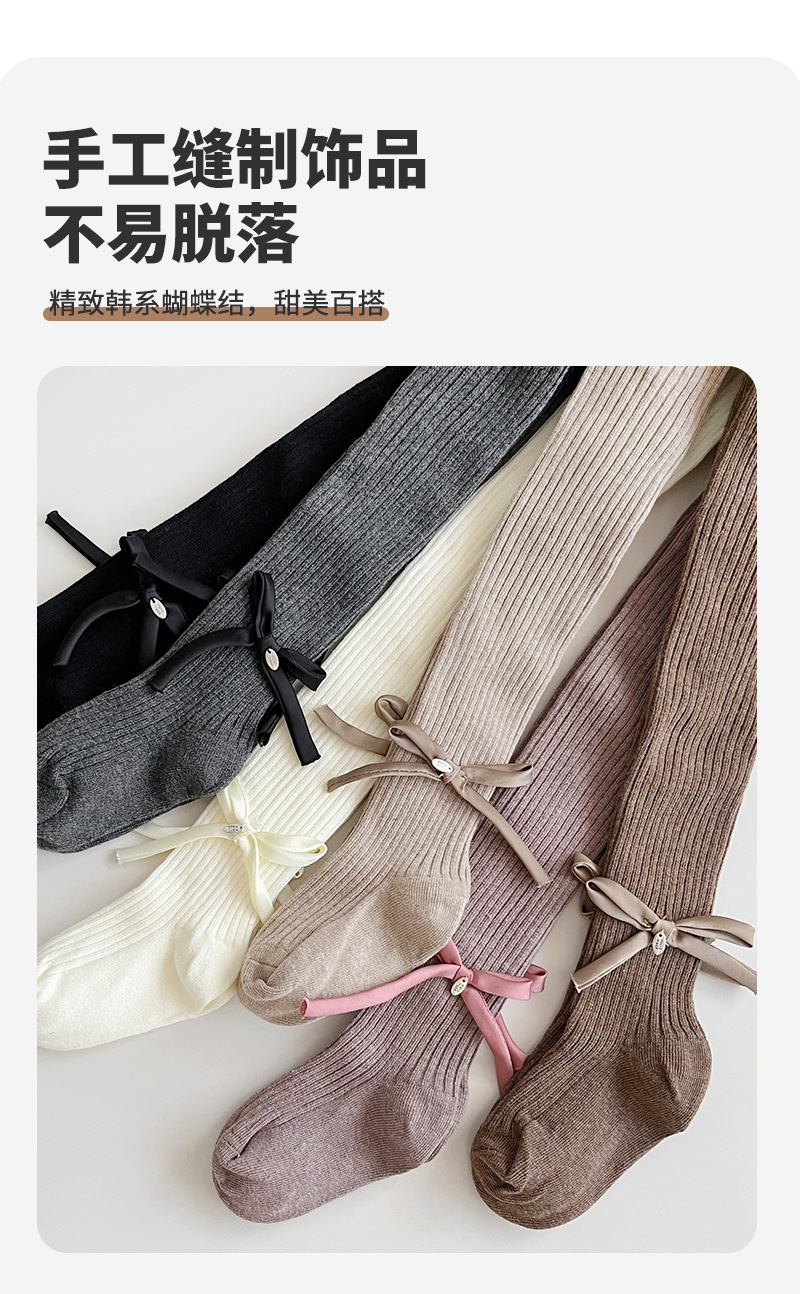 【49.9元2条】春秋季新品女童蝴蝶连脚打底袜 纯色百搭棉质裤袜