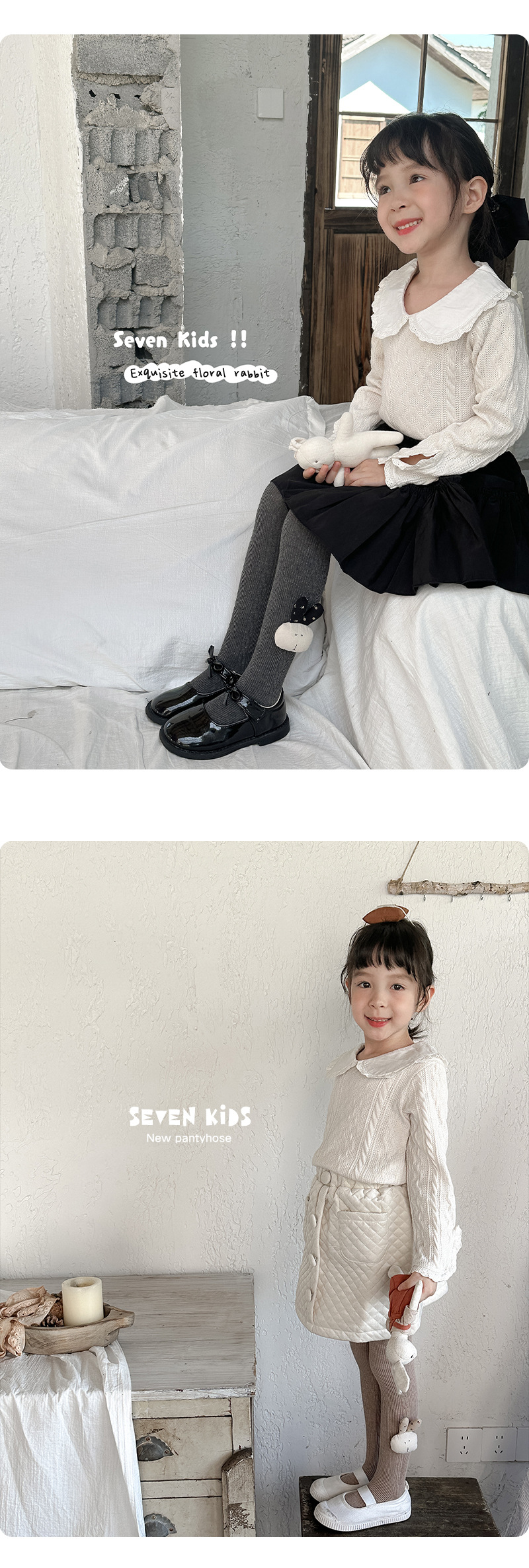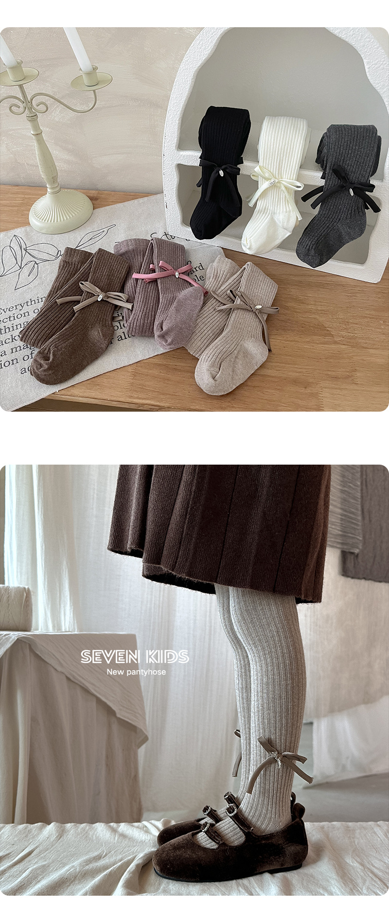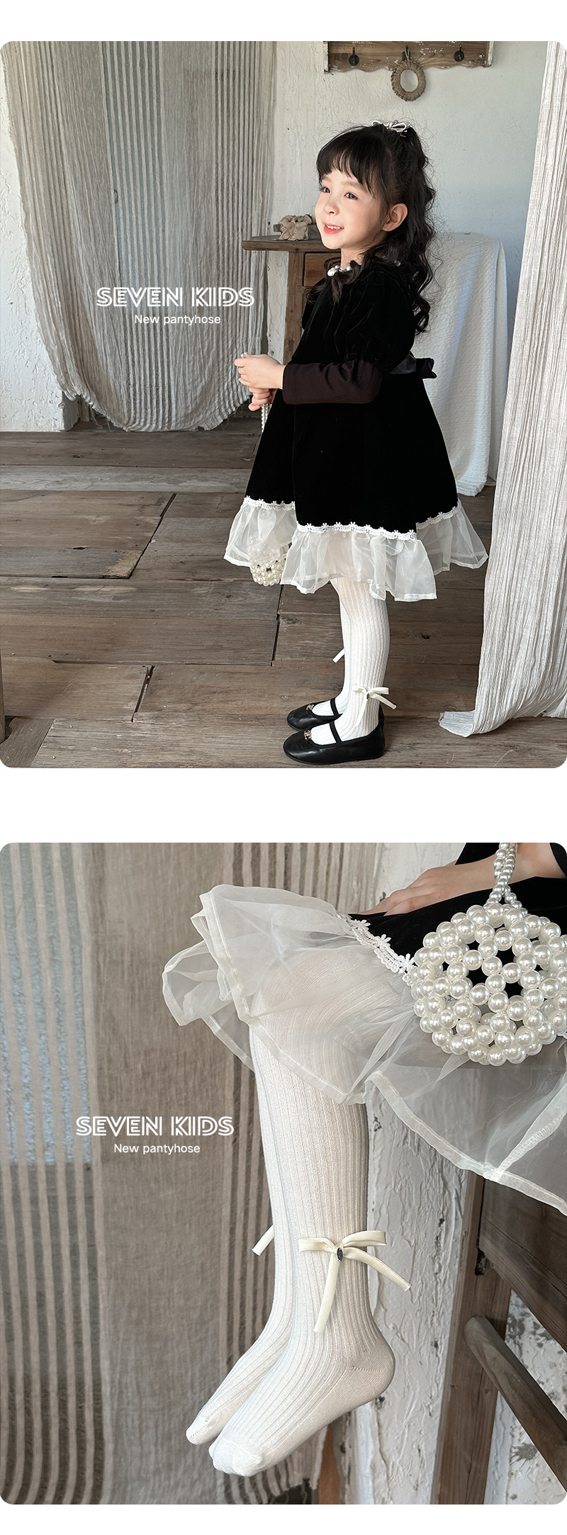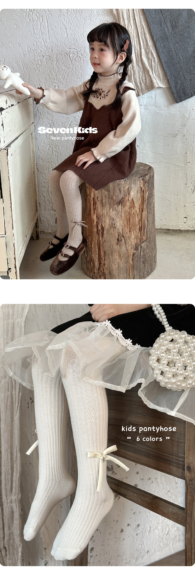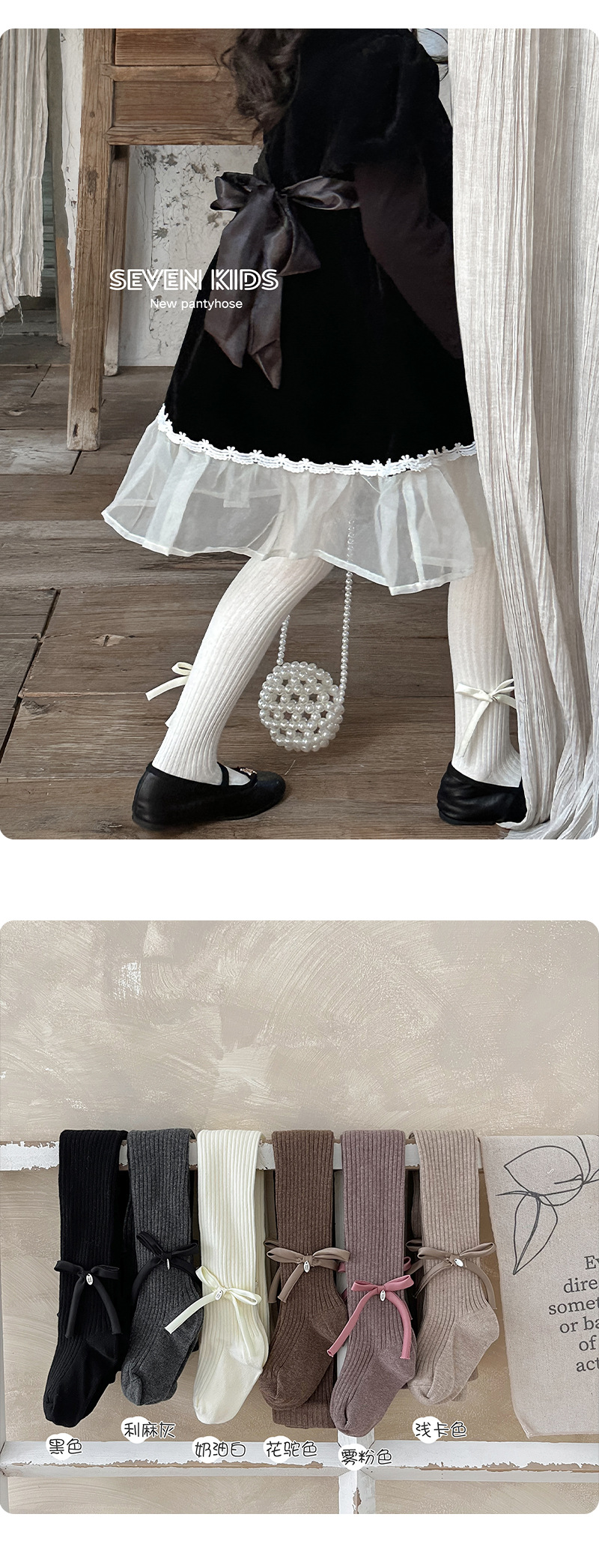 【49.9元2条】春秋季新品女童蝴蝶连脚打底袜 纯色百搭棉质裤袜