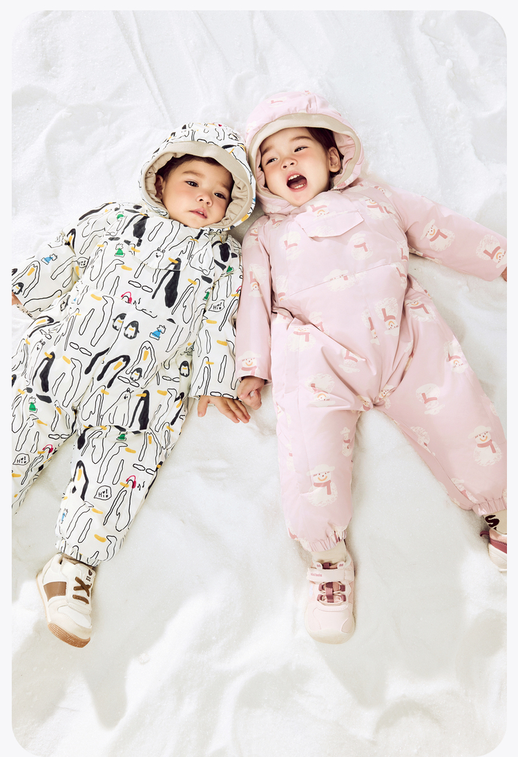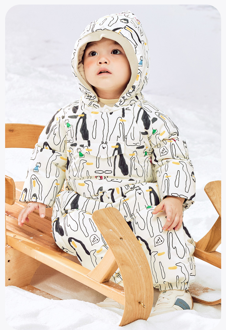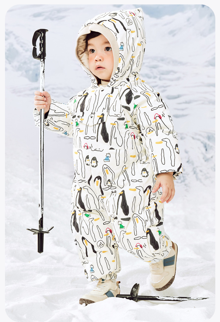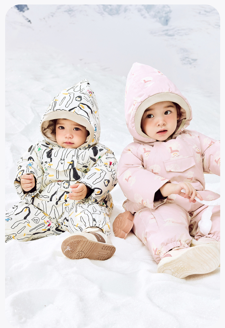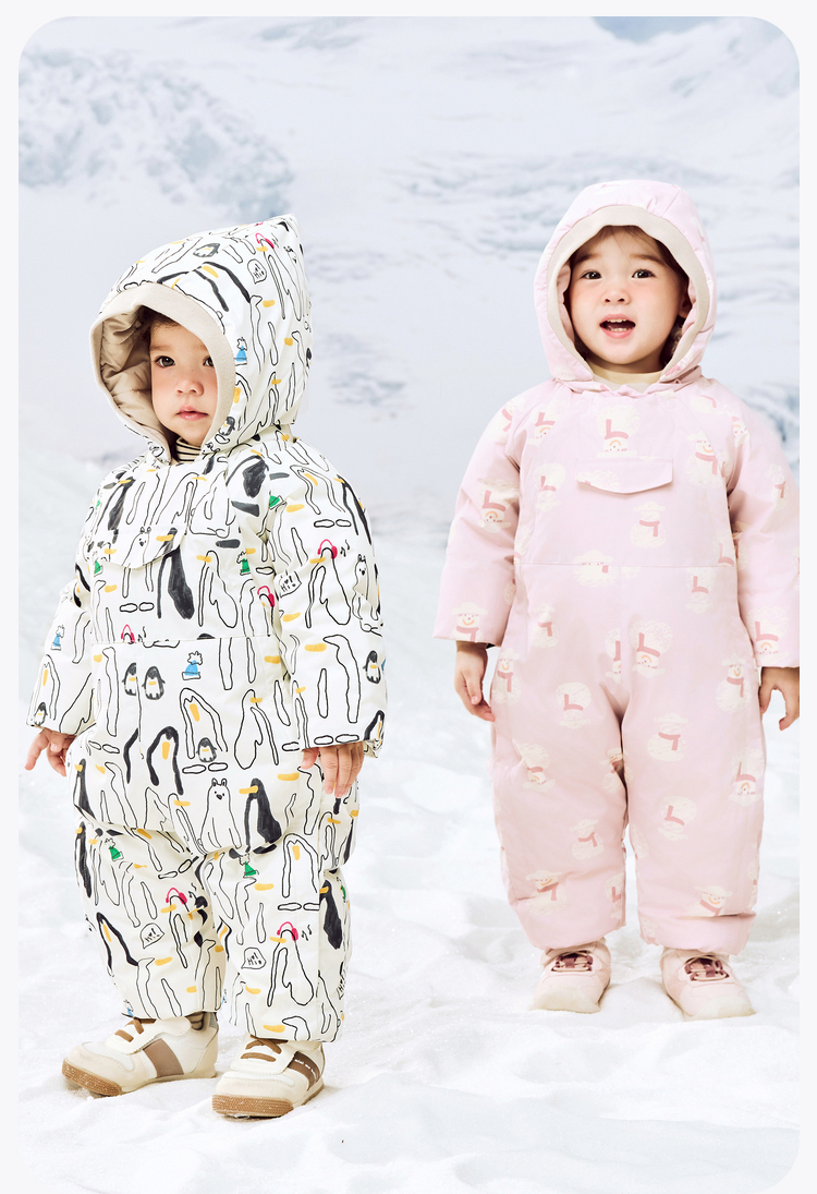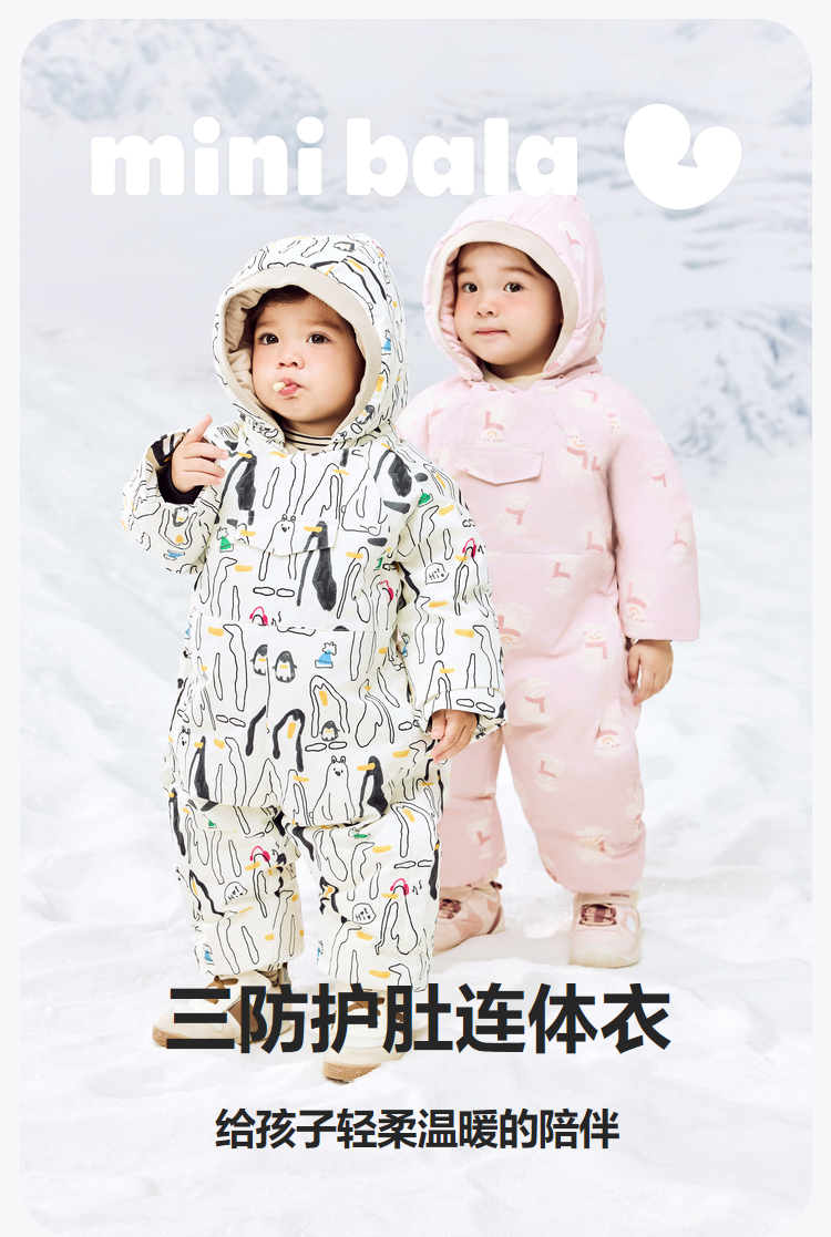 迷你巴拉羽绒服连体衣男女童防水防油污双开拉链护肚背心